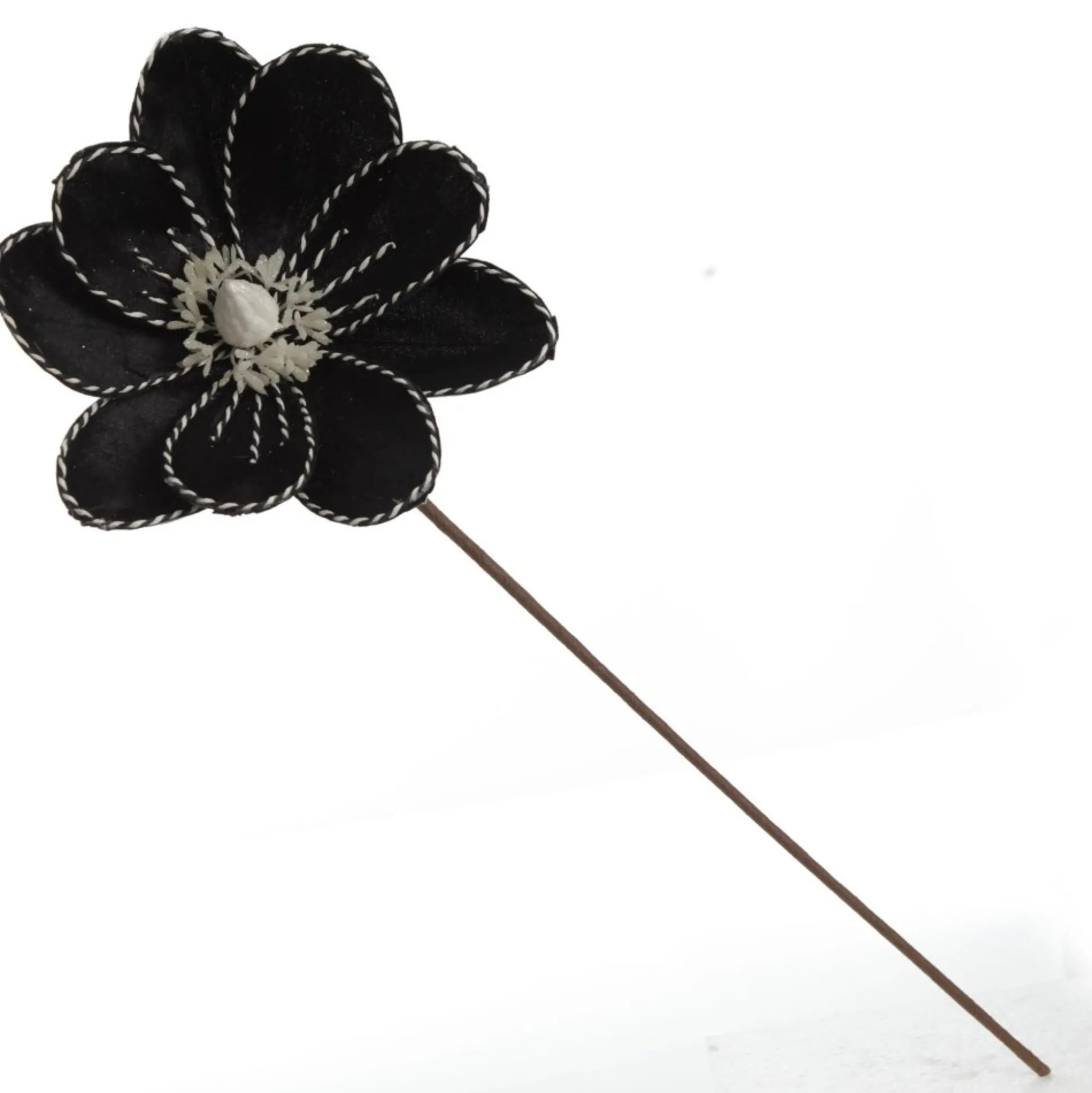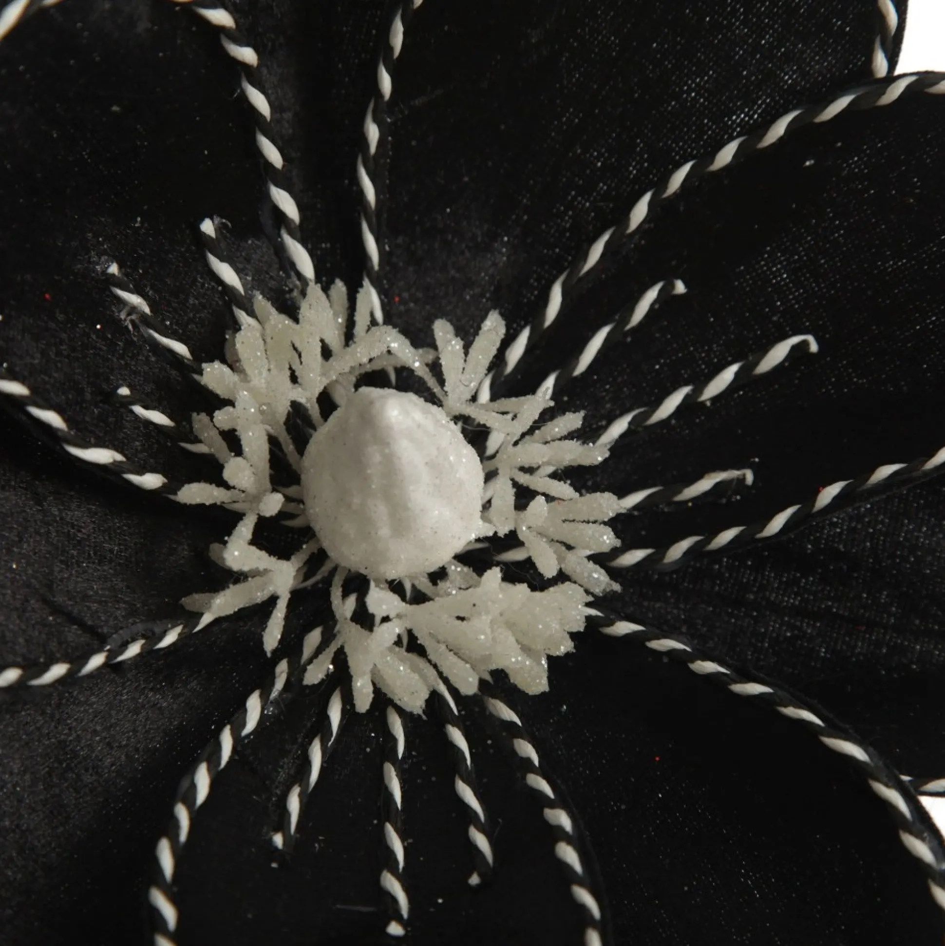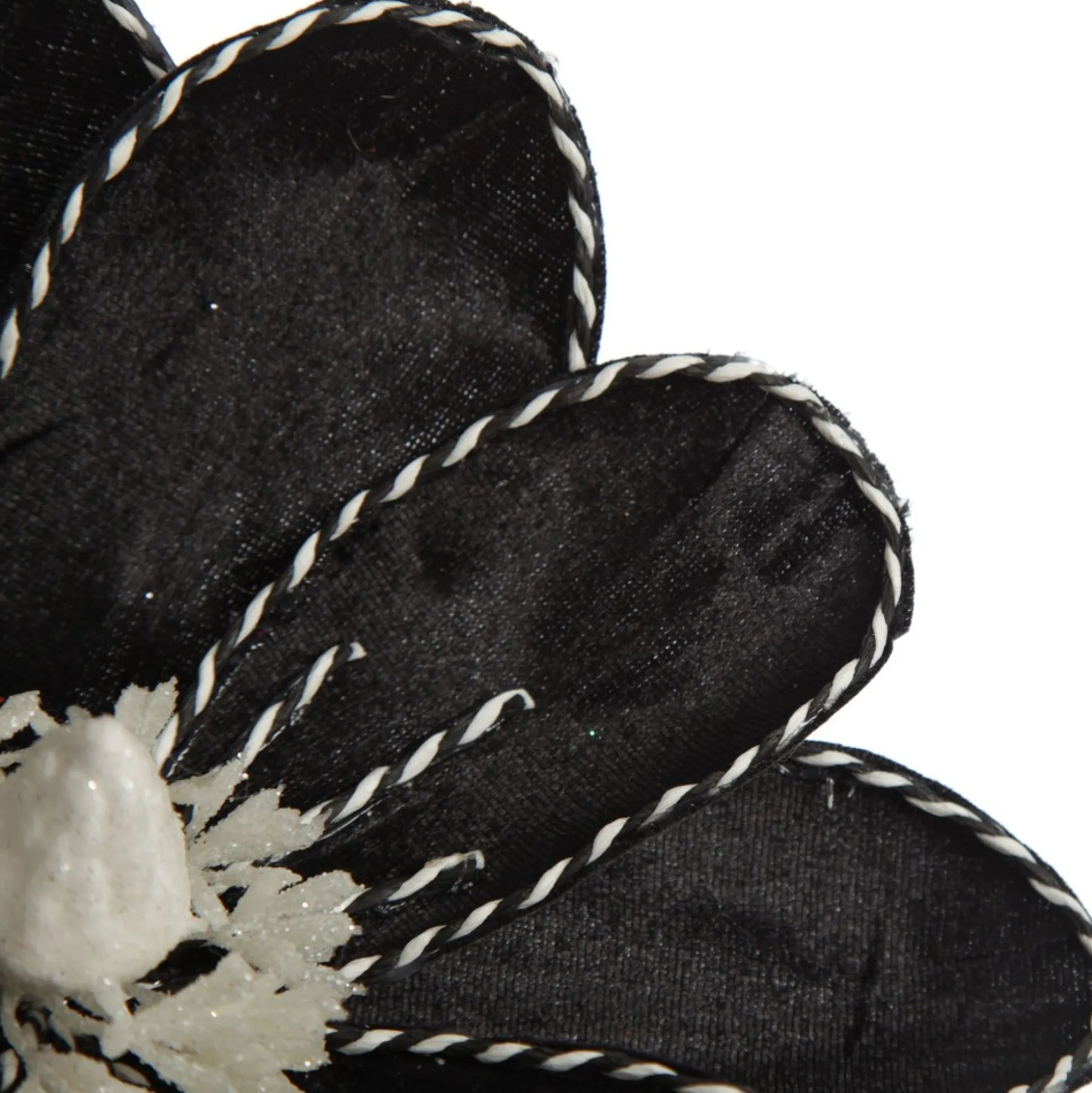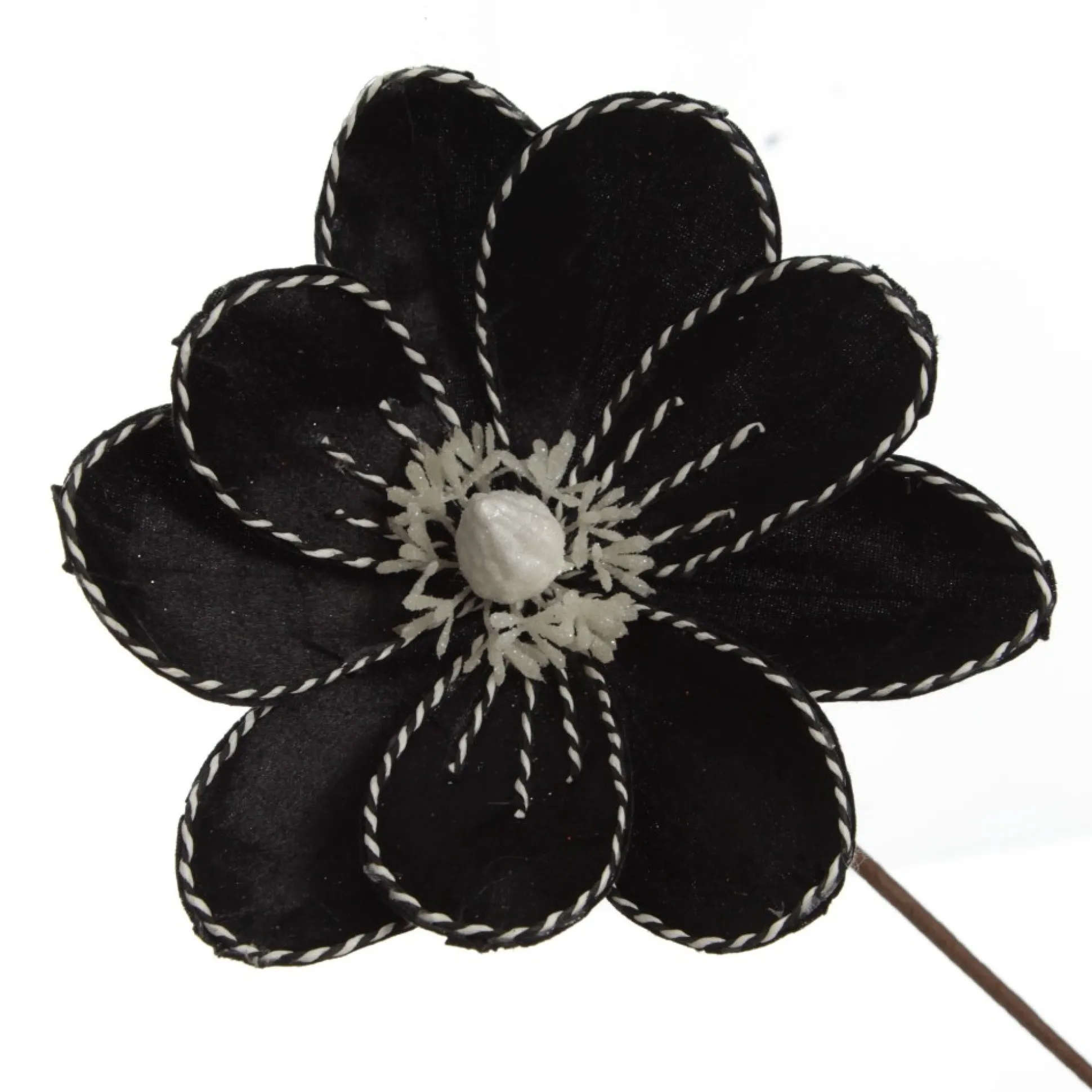 Add This Unique Black Magnolia Flower Stem With Twine Trim To Your Christmas Floral Arrangements. Made From High-Quality Materials, This Flower Features Sleek Black, Velvet-Like Petals With Intricate Black And White Twine Details And A White Glitter Pollen Arrangement In The Centre.