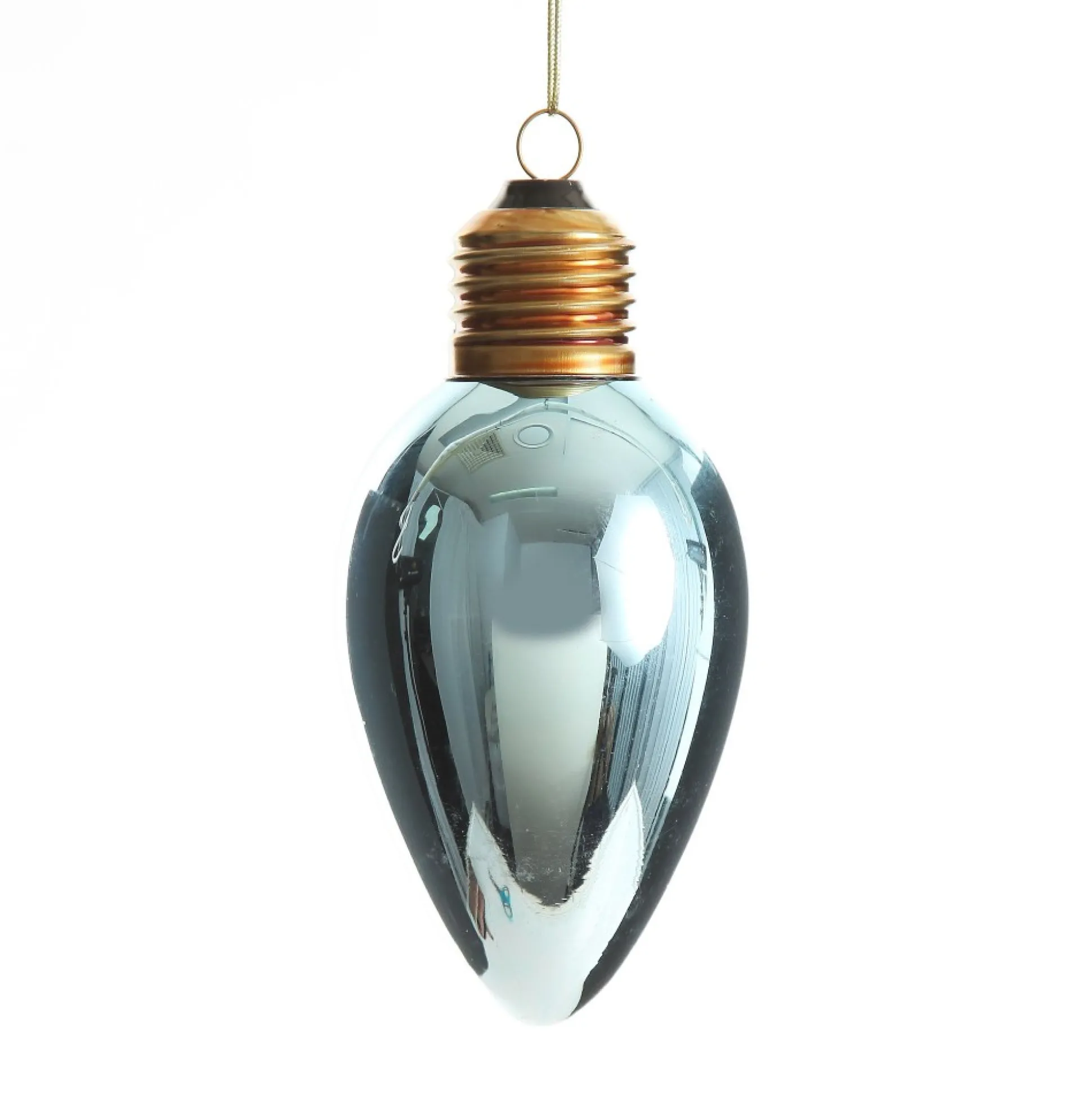 This Blue Light Bulb Hanging Christmas Decoration Is The Perfect Addition For Anyone Who Loves Decorating Their Home And Wants To Add A Touch Of Mid-Century Nostalgia To Their Christmas Tree This Holiday Season. This Delicately Made Bauble Is Crafted From High-Quality Glass With A Glossy Finish That Will Be Sure To Make Your Tree Stylish. Its Soft Blue Shade Will Mix Seamlessly In With Your Christmas Decor.