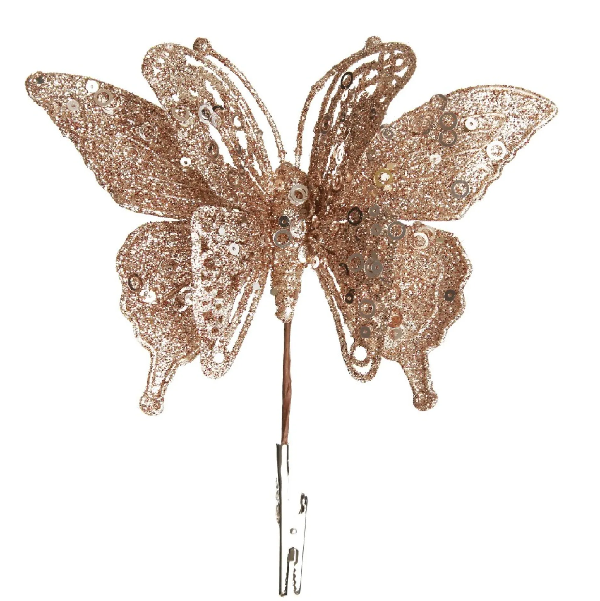 Our Champagne Glitter And Sequin Butterfly Clip Is The Perfect Addition To Your Festive Decorating. This Butterfly Clip Is Crafted From Lightweight And Durable Acrylic, Making It Long-Lasting. The Champagne Colour And Glitter Finish Making It An Elegant And Luxe Decoration, Creating A Glamorous Feel In Your Home. This Tree Decoration Is The Perfect Choice For Those Who Love Decorating. It Is On-Trend And The Perfect Product To Help You With Your Christmas Styling. You Can Use It As A Gift Topper Or Embellishment For Table Place Settings At Your Christmas Feasts. It Is Also Versatile And Reusable, Making It A Great Addition To Any Festive Craft And Decor Project. Clip It Onto Your Christmas Tree, Garlands, Wreaths And More For A Naturally Elegant, Rich And Striking Look.