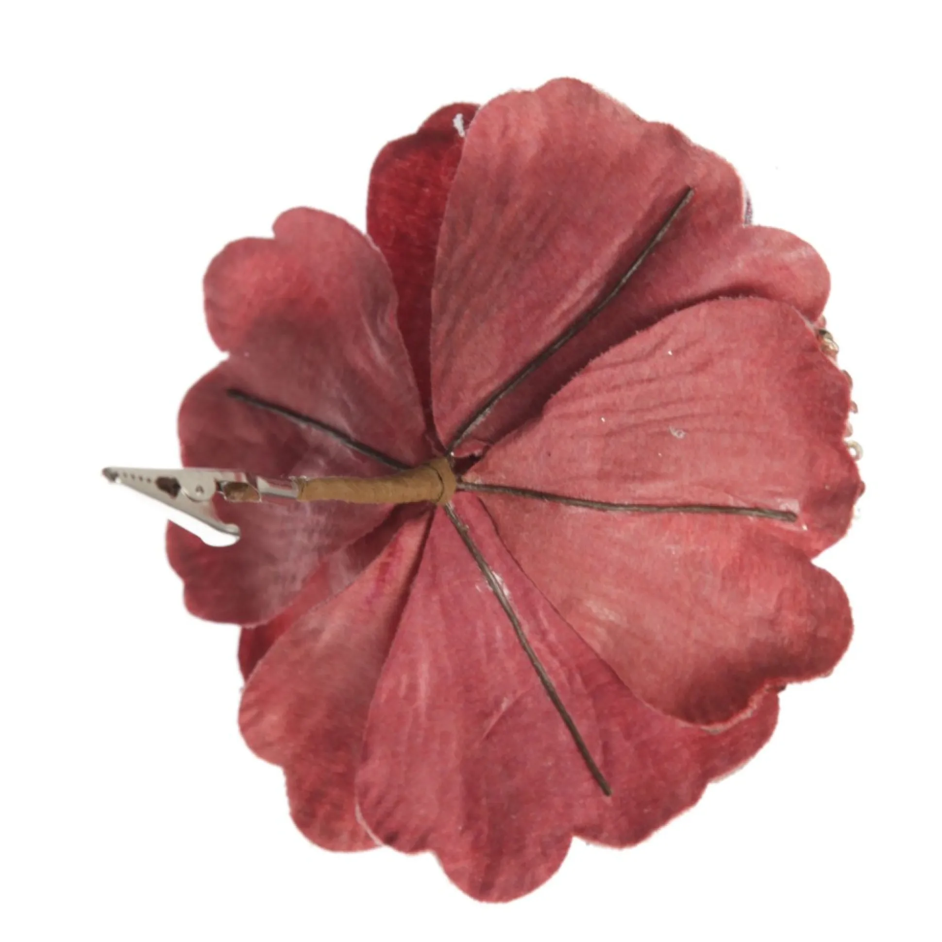 Dark Pink Velvet Magnolia Flower Clip with Jewel Centre and Sequin Tips Christmas Flowers|