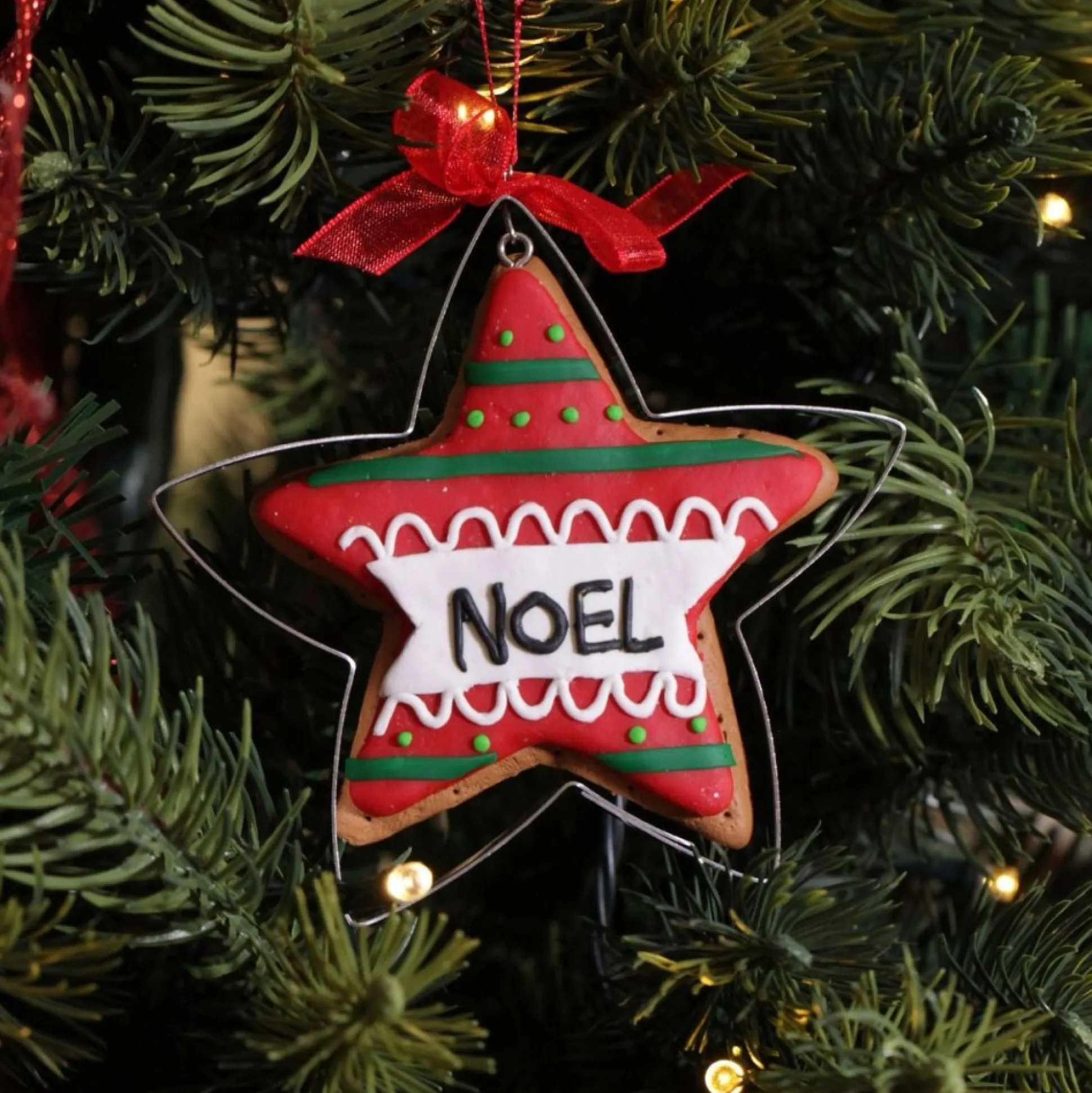 This Fun Gingerbread Star Cookie Cutter Decoration Almost Looks Good Enough To Eat. Featuring A Star Shaped Polymer Clay Cookie, Embellished In Red And Green Icing Inside A Cookie Cutter. Includes Festive Red Ribbon To Hang From Your Tree. Measures 8X10Cm.