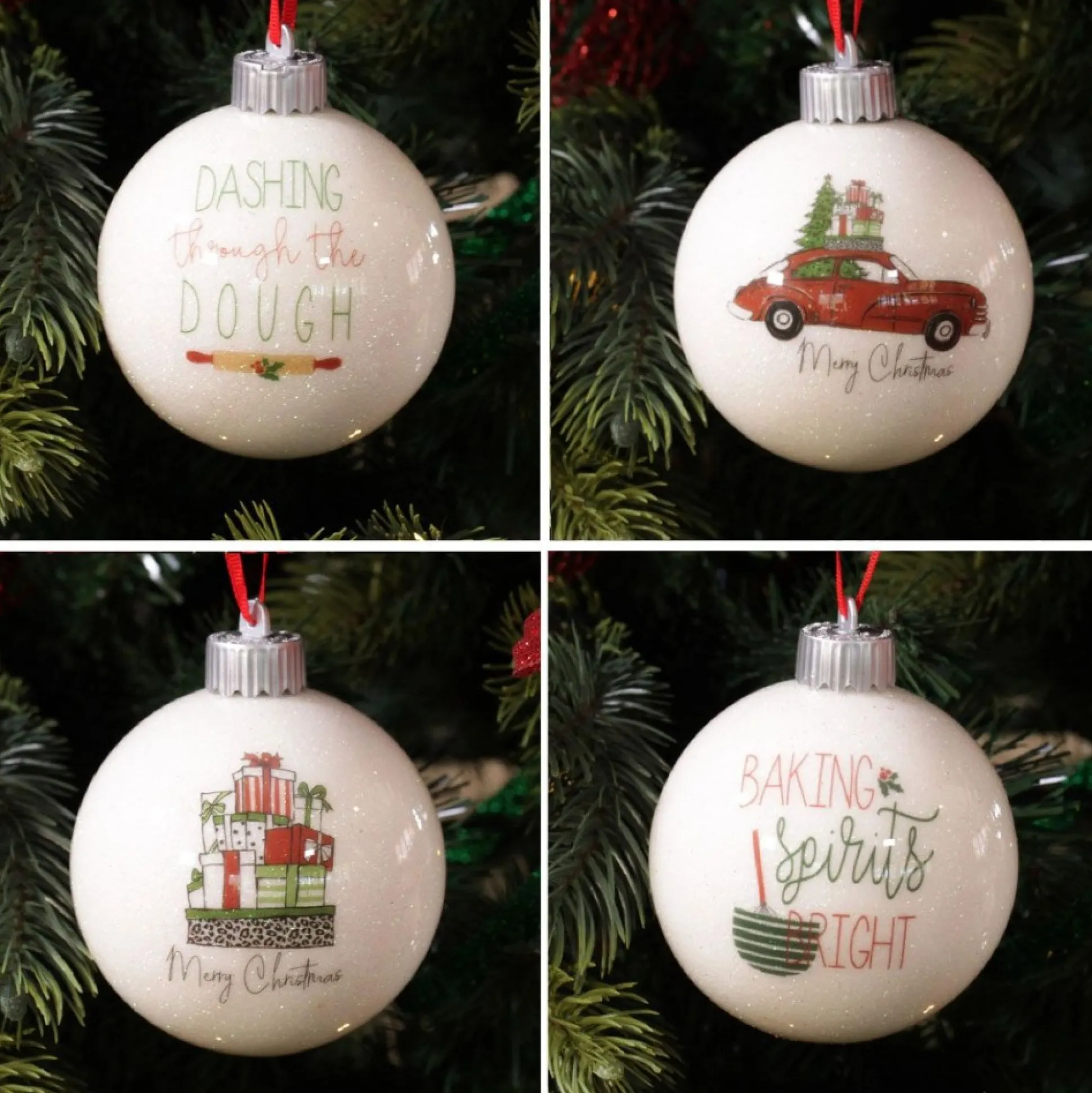 Our Happy Holiday Lightup Baubles Will Have You ‘Baking Spirits Bright’ This Christmas. Crafted From Durable Acrylic Plastic With A Delightful Iridescent Glitter Finish, This Set Includes Four Lightup 9Cm Baubles Each Featuring A Festive Christmas Design And Message. Each Bauble Lights Up With A Delightful Glow To Illuminate Your Christmas Tree. Batteries Are Included. These Baubles Would Make A Delightful Addition To Your Christmas Tree.