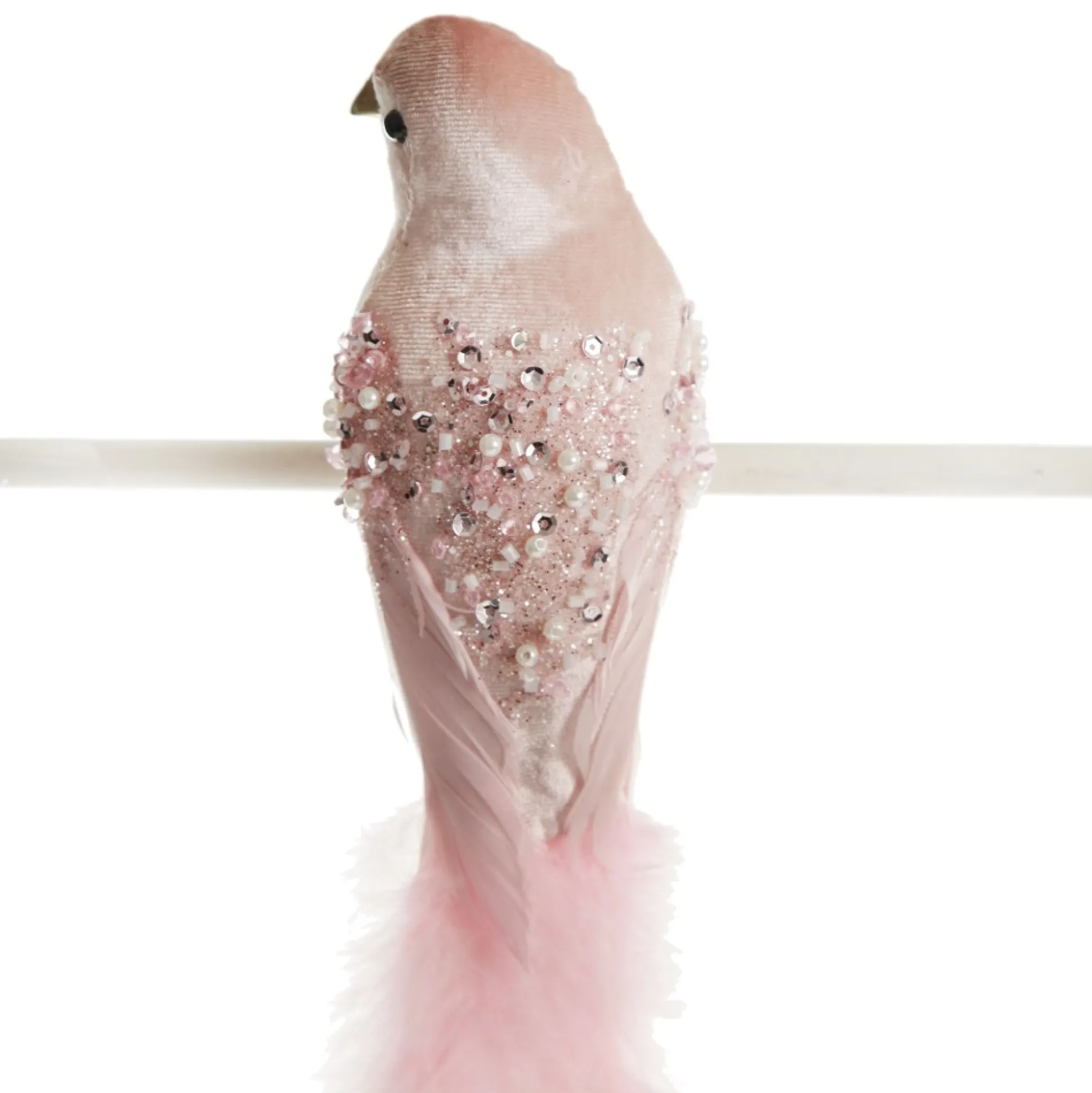 If You To Craft Unique And Whimsical Christmas Decor In Your Home, Look No Further Than This Large Elegant Pink Velvet Bird With Sequins And Feather Tail. Featuring A Pink Velvet-Like Exterior Embellished With Sequin, Glitter, And Beaded Elements And A Lush Pink Feather Tail. A Clip Affixed To The Base Of The Bird Makes It Easy To Secure When Crafting And Decorating. Decorative Clips Can Be Used For Such A Wide Range Of Craft And Decor Purposes. Use Them To Add Exciting Embellishments To Your Christmas Tree, Garlands, Wreaths And More. The Bird Clip Is Perfect For A Unique Pink Christmas Dreams Decor Theme Combining An Assortment Of Pink And Sage Green Tones To Create A Seamless And Sophisticated Display. Stray From The Traditional To Create A Stunning And Unique Display In Your Home.