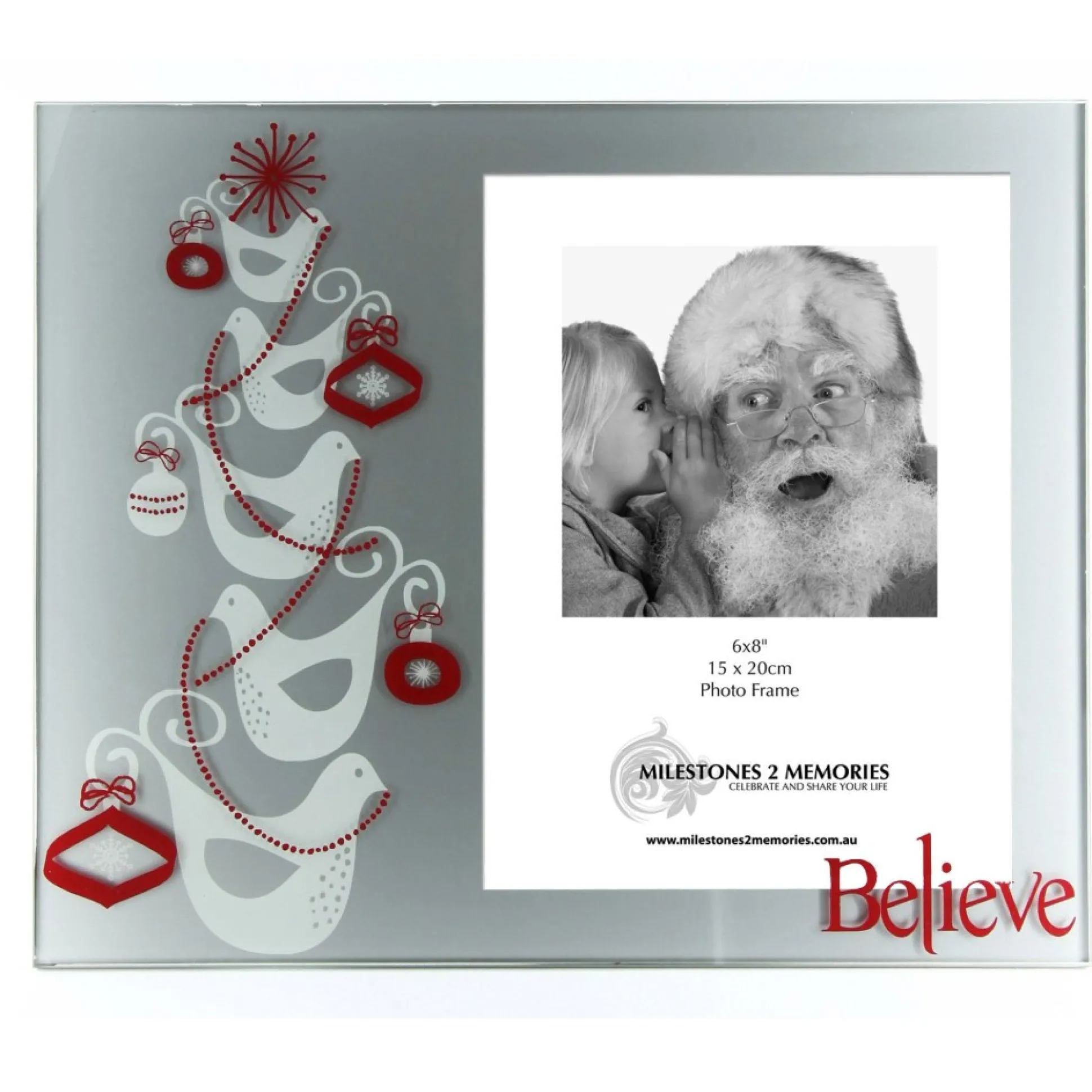 A Beautiful Modern Glass Frame With Printed Christmas Doves Design. Holds 6X8 Inch (20X15Cm) Photo. Add Your Santa Photo And It Makes The Perfect Gift For Family And Friends.