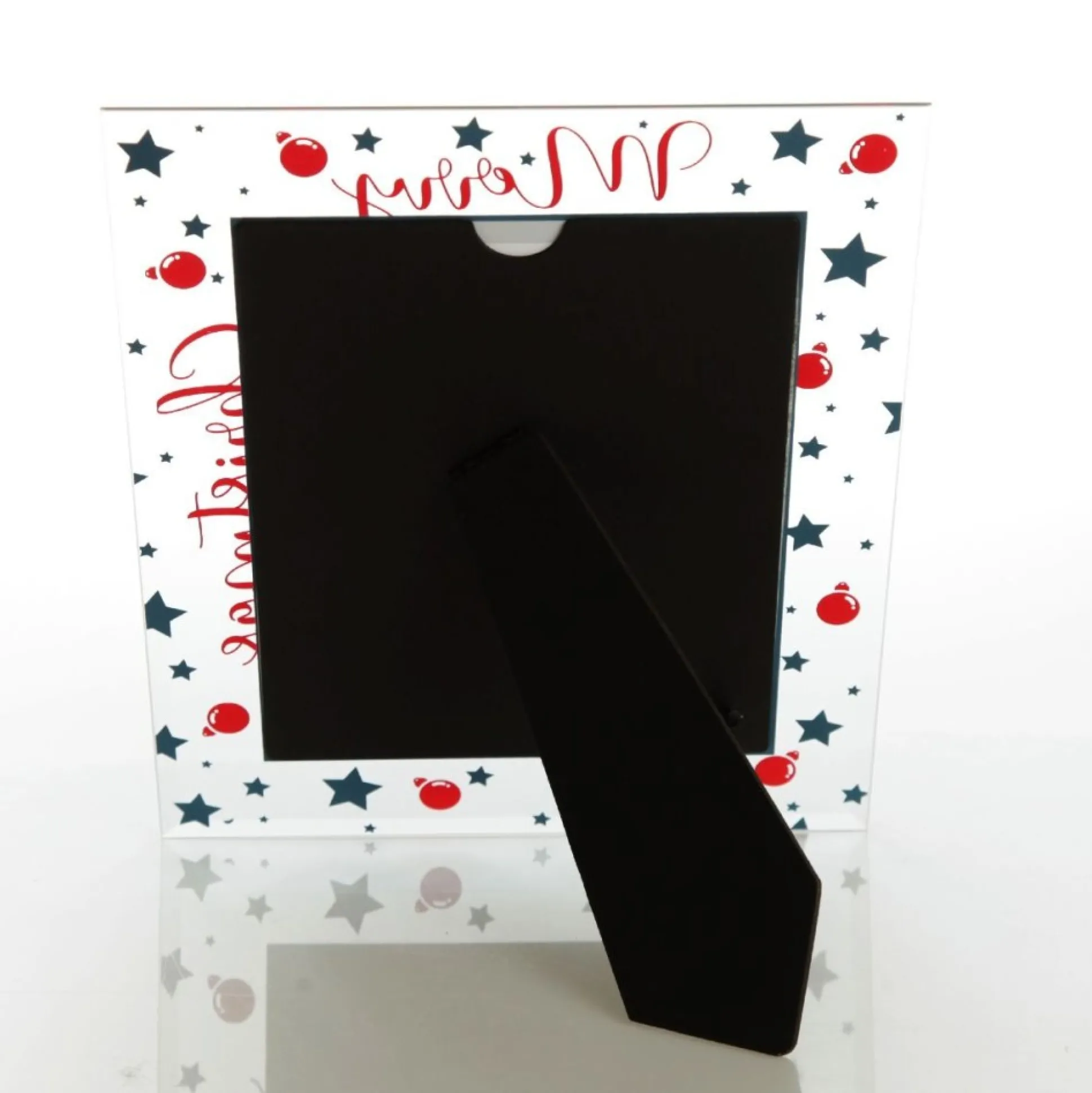 A Beautiful Bevelled Glass Frame With Printed Design Of Stars And Baubles. Displays A Portrait Or Landscape Photo In A 6X8 Inch (15X20Cm) Size. Add Your Santa Photo And It Makes The Perfect Gift For Family And Friends.