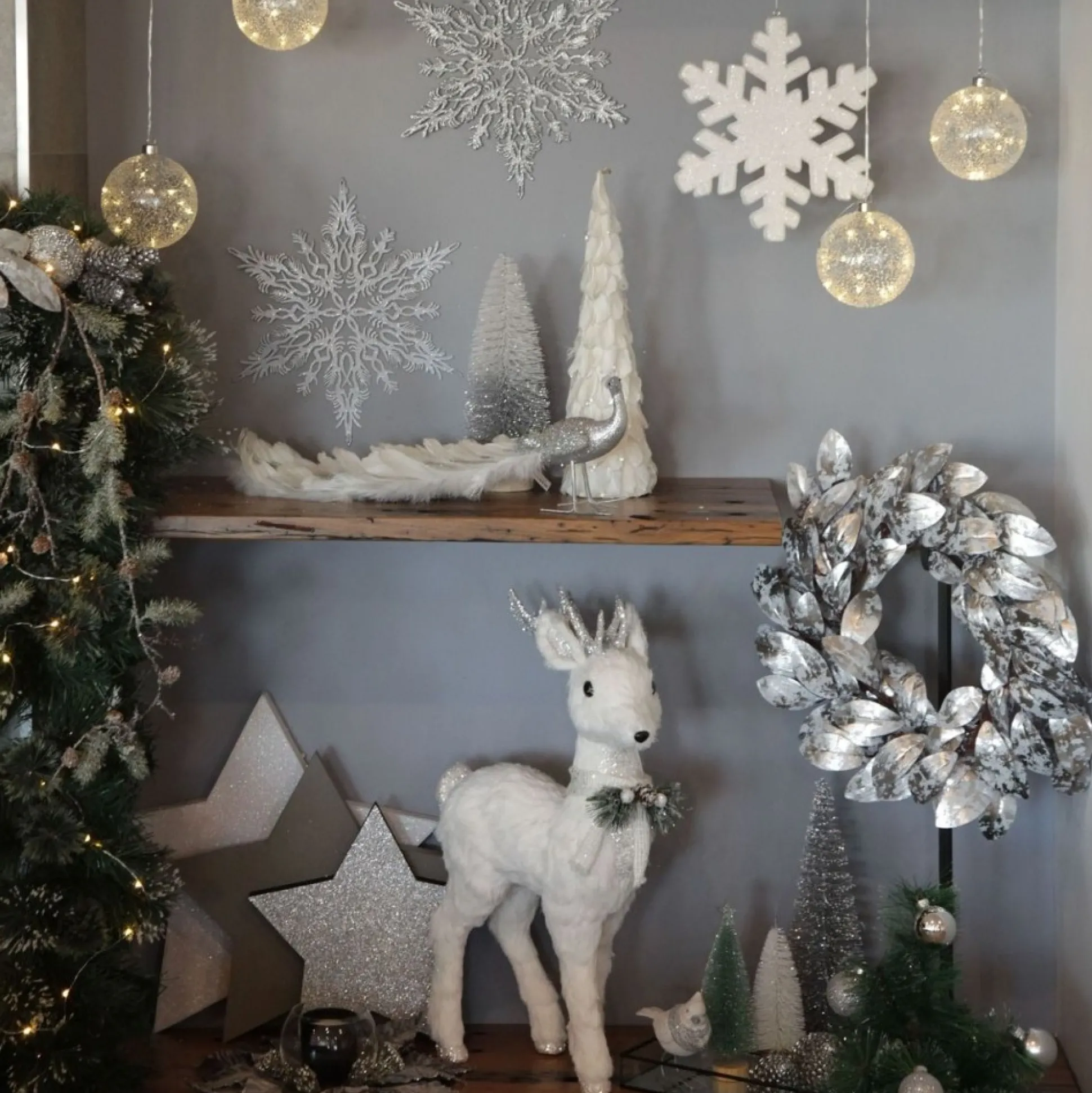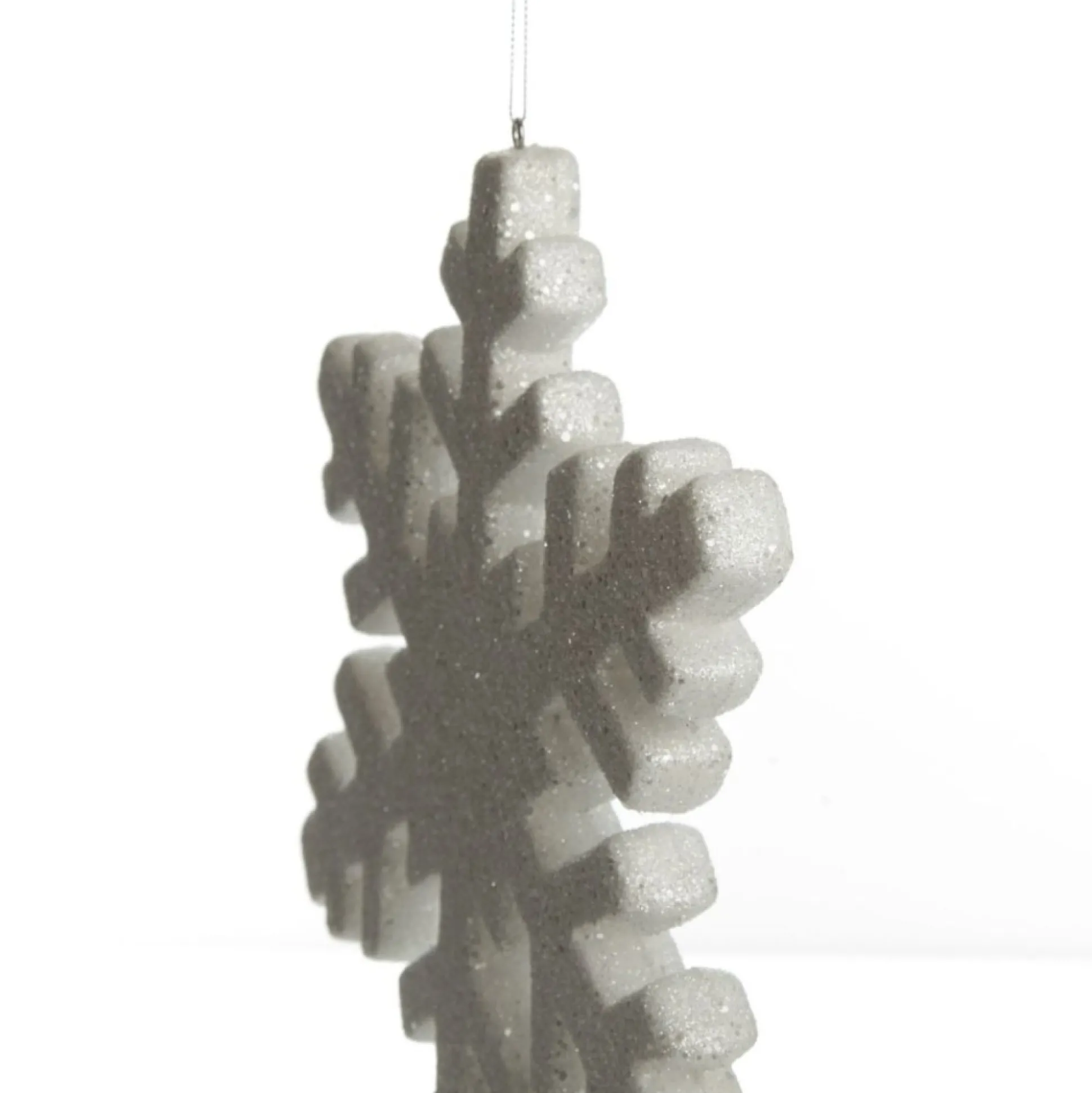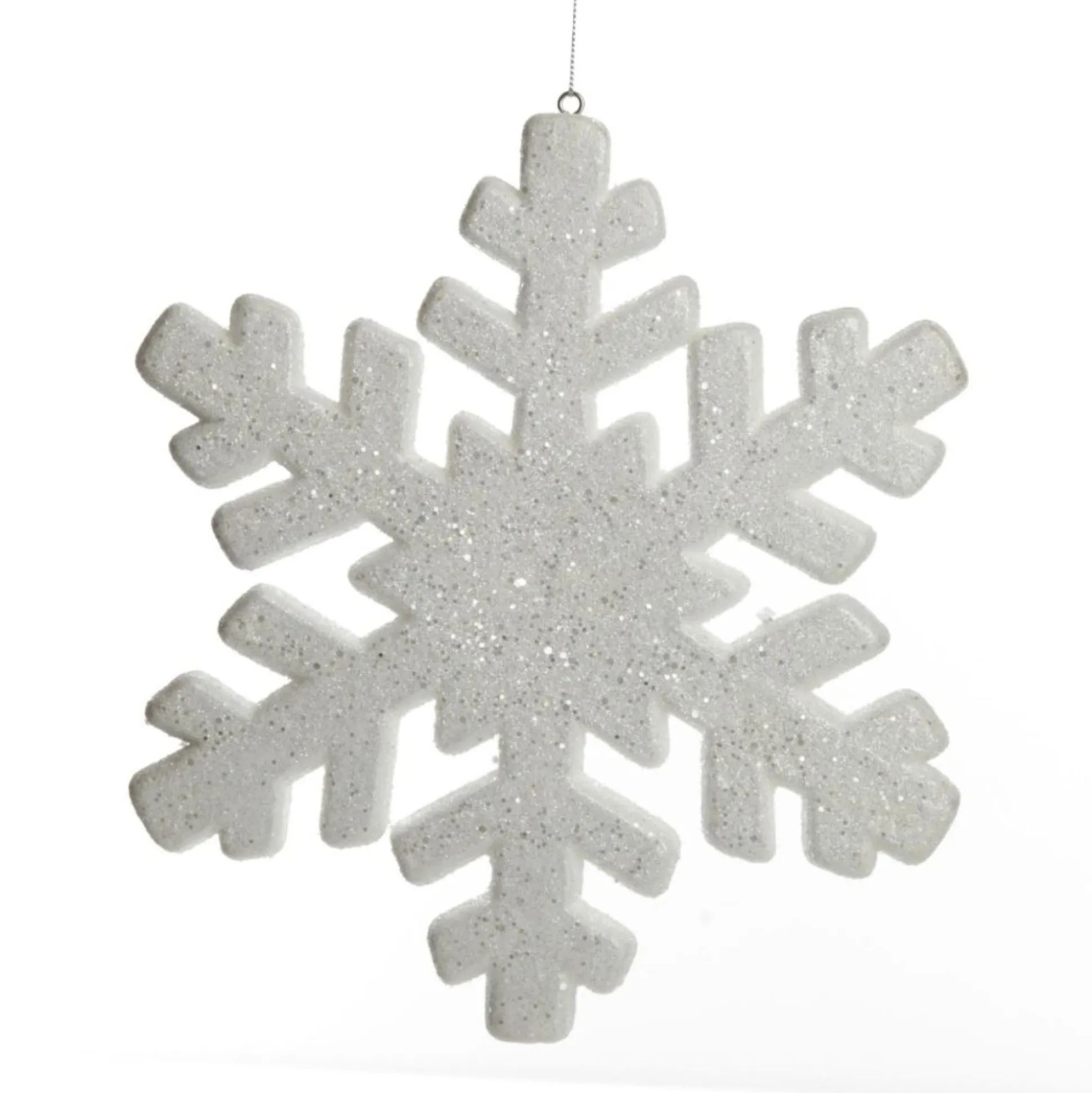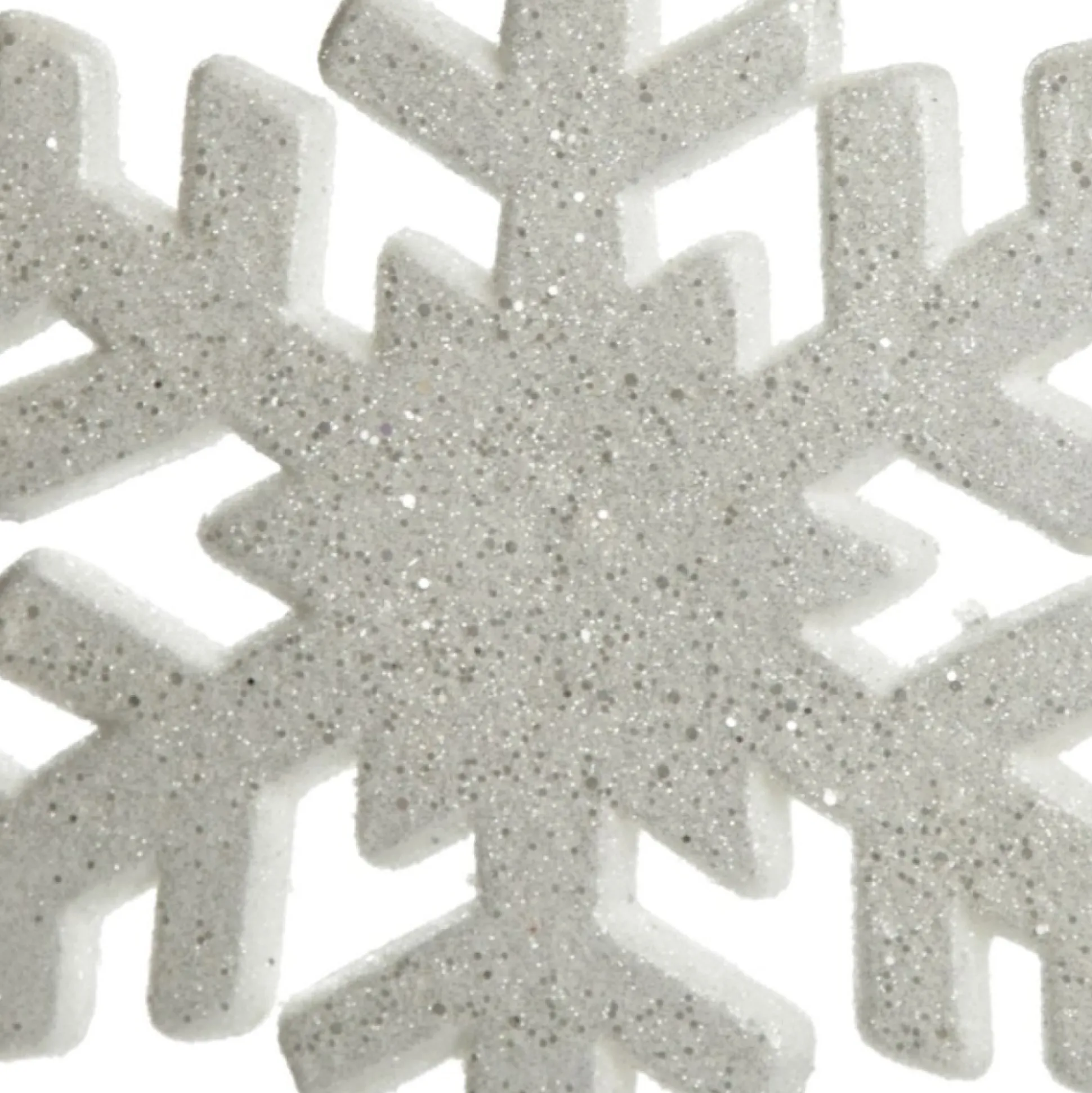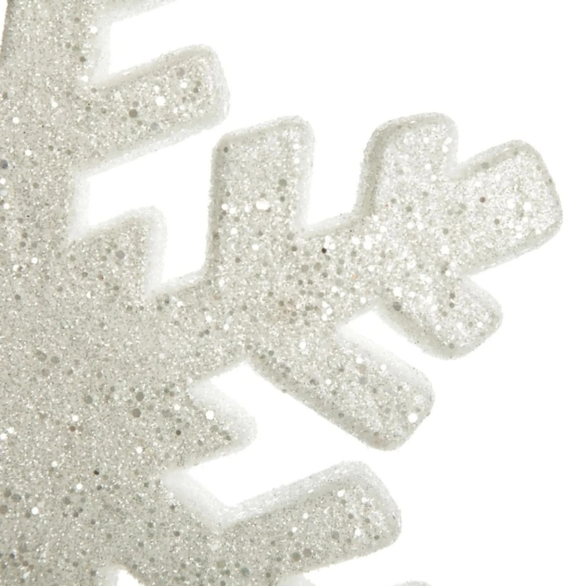 Bring The Beauty Of Winter Indoors This Christmas With This White Glitter Hanging Snowflake. Made From A Light Weight Material And Covered In A White Iridescent Glitter, It Measures At 30Cm In Diameter. It Is Sure To Add Sparkle And Glam To Any Style Of Christmas Decor.
