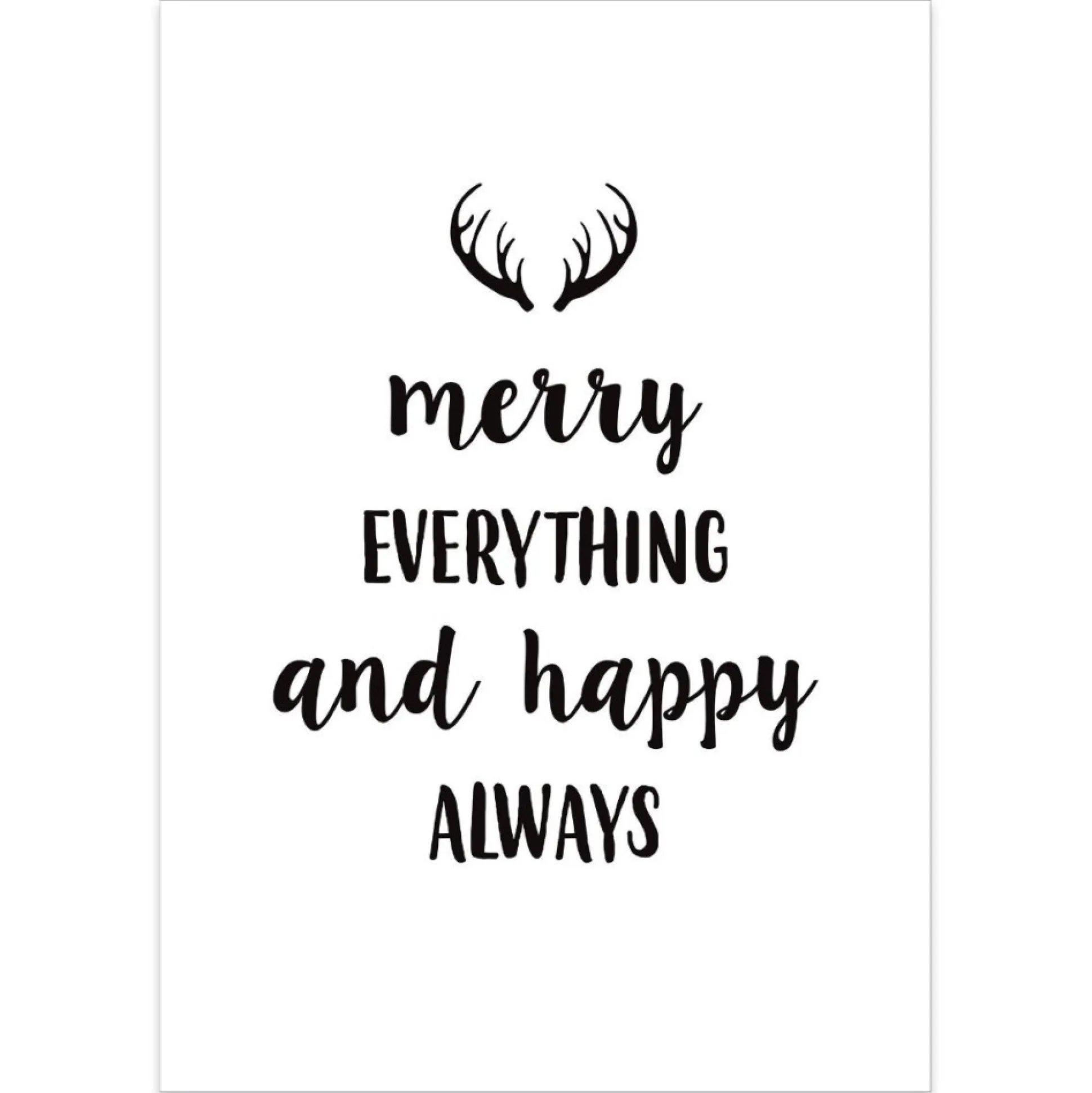 This Merry Everything And Happy Always Christmas Poster Print Will Make The Perfect Addition To Your Christmas Decor. With A Crisp White Background And A Mix Of Black Cursive And Block Letters, This Poster Features The Phrase ‘Merry Everything And Happy Always’ With Delightful Reindeer Antlers. Simplistic, Stylish, And Full Of Festive Charm. This Poster Will Look Fantastic Displayed In A Frame On A Buffet Or Side Table As Well As Mounted On A Wall. Posters Are A High-Impact Decor Element And Yet Take Very Little Time To Install. At The End Of The Christmas Season Simply Remove And Store In The Frame Or Remove From The Frame And Roll Up Or Easy Storage.