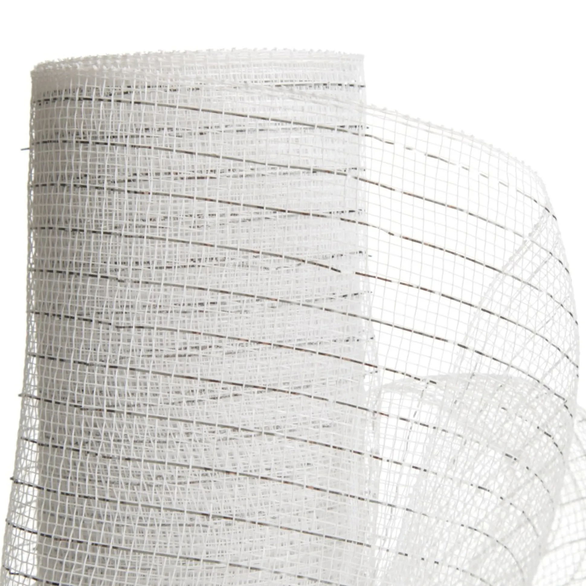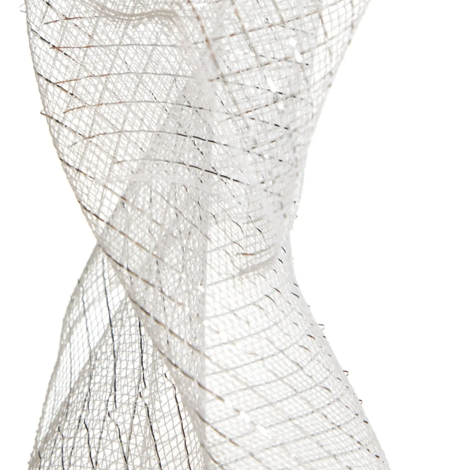 Measuring At 25Cmx9Cm, This Deco Mesh Roll Features A Crisp White Colour With Metallic Thread Details Throughout. The Smaller Size Of Our Deco Mesh Collection, This Roll Is Perfect For A Range Of Intricate Crafts.