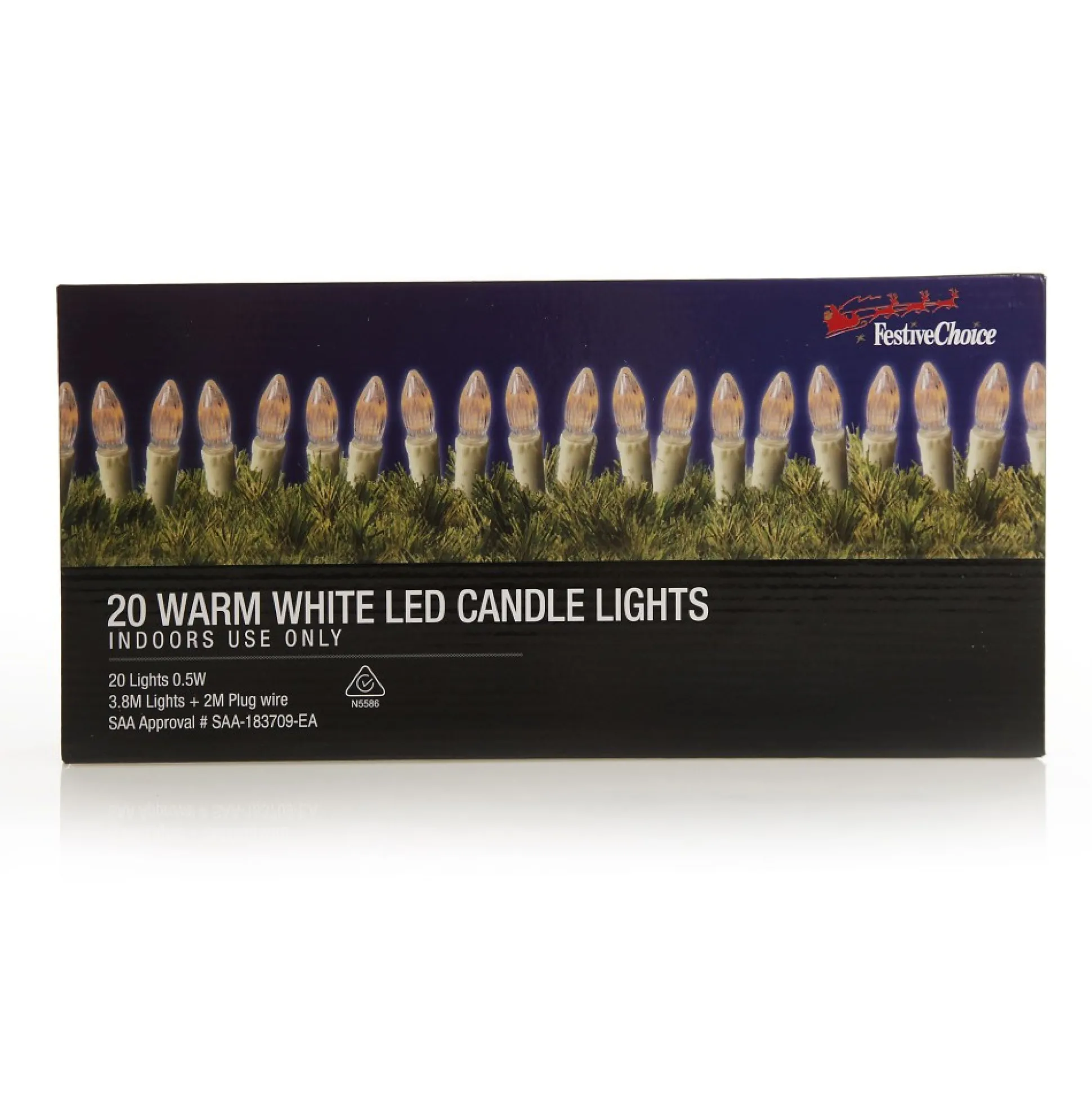 Featuring A Collection Of 20 Stunning Warm White Led Lights With Ivory Coloured Casing With Candle Wax ‘Drips’. Each Candle Light Has A Clip On The Base Making It Easy To Affix The Light To The Branches Of Your Tree. The Perfect Way To Finish Off Your Tree Display And Illuminate Your Beautiful Decorations.