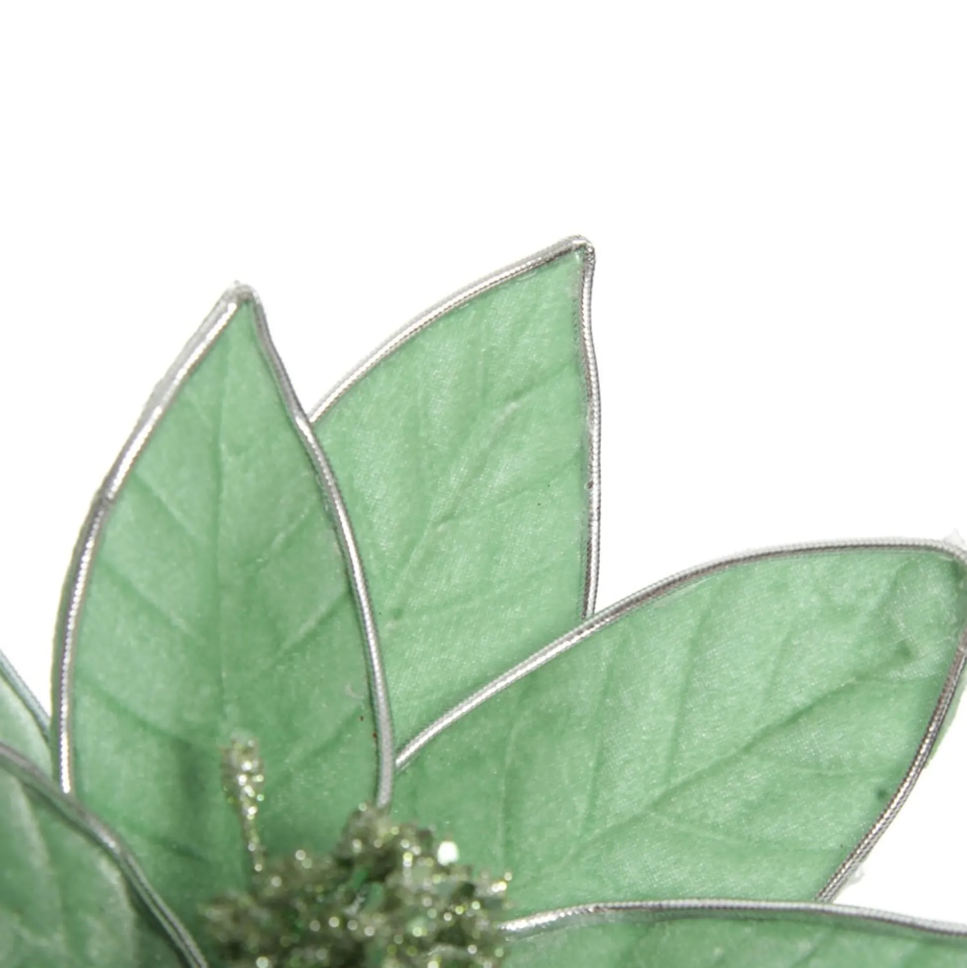 This Unique Mint Velvet Flower Stem With Silver Trim Will Add Something Special To Your Christmas Floral Arrangements. Featuring Mint Green Velvet Petals With Textured Lines, Sleek Metallic Silver Trim And Glitter Pollen Details In The Centre.