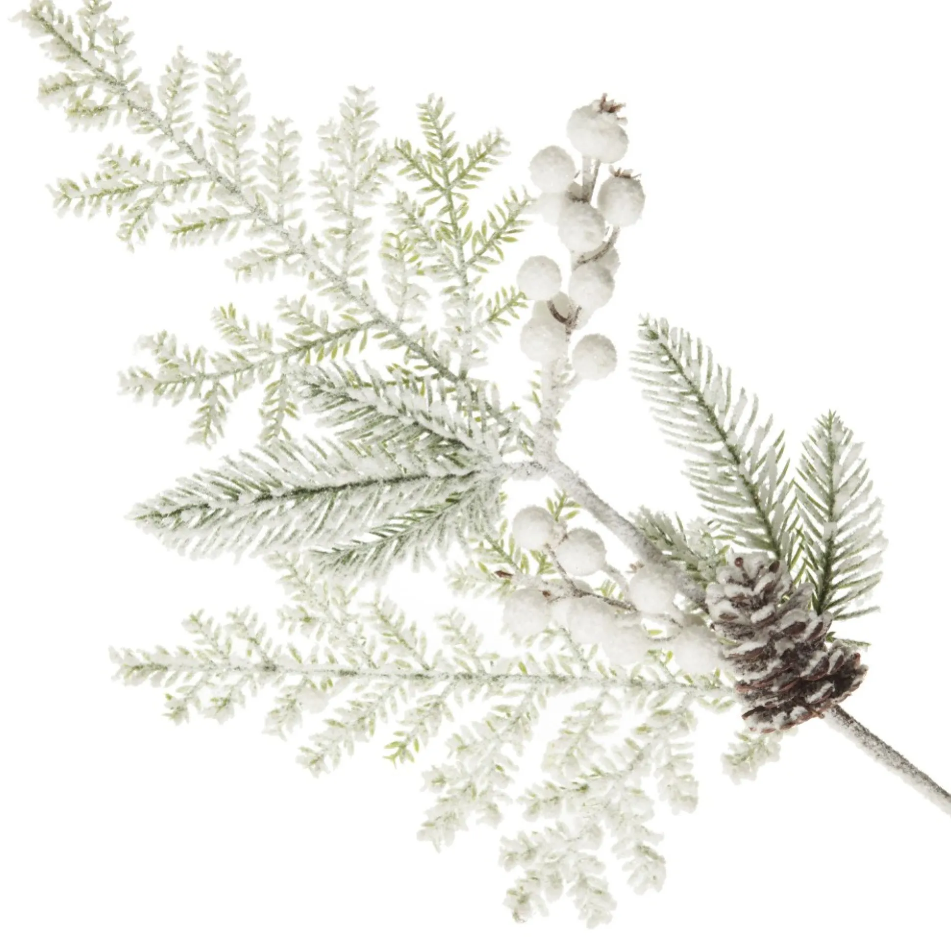 Featuring A Collection Of Assorted Green Pine Branches, White Berries, And Pinecones. The Spray Is Covered In A Dusting Of White Faux Snow To Create A Wintery Display. The Flexible Stem Allows You To Easily Place And Arrange The Spray Where Needed. Place In A Large Vase With Other Florals And Foliage, Affix To Garlands, Bannisters, Wreaths And More.