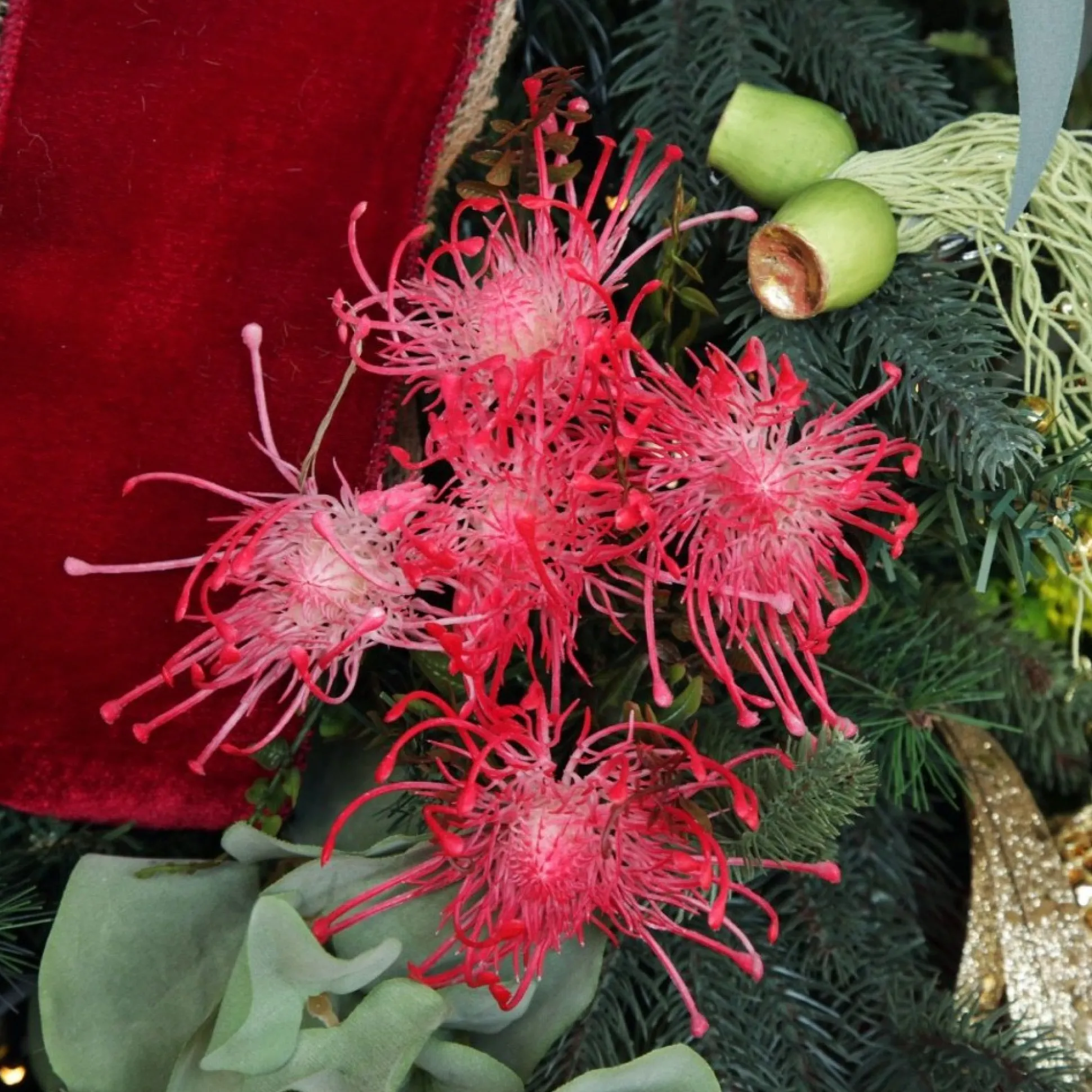 Use To Add Pops Of Colour To Your Floral Arrangements Or Add To Your Christmas Wreath To Create A Unique Design. Can Also Be Used To Create A Custom Table Centepiece Or For Any Crafting Project. Perfect For Australiana Themed Christmas Decor When Paired With Our Other Native Australiana Florals In An Array Of Colours. Create Authentic, Native Floral Arrangements With This Native Pink Pinecushion Protea Flower Spray.