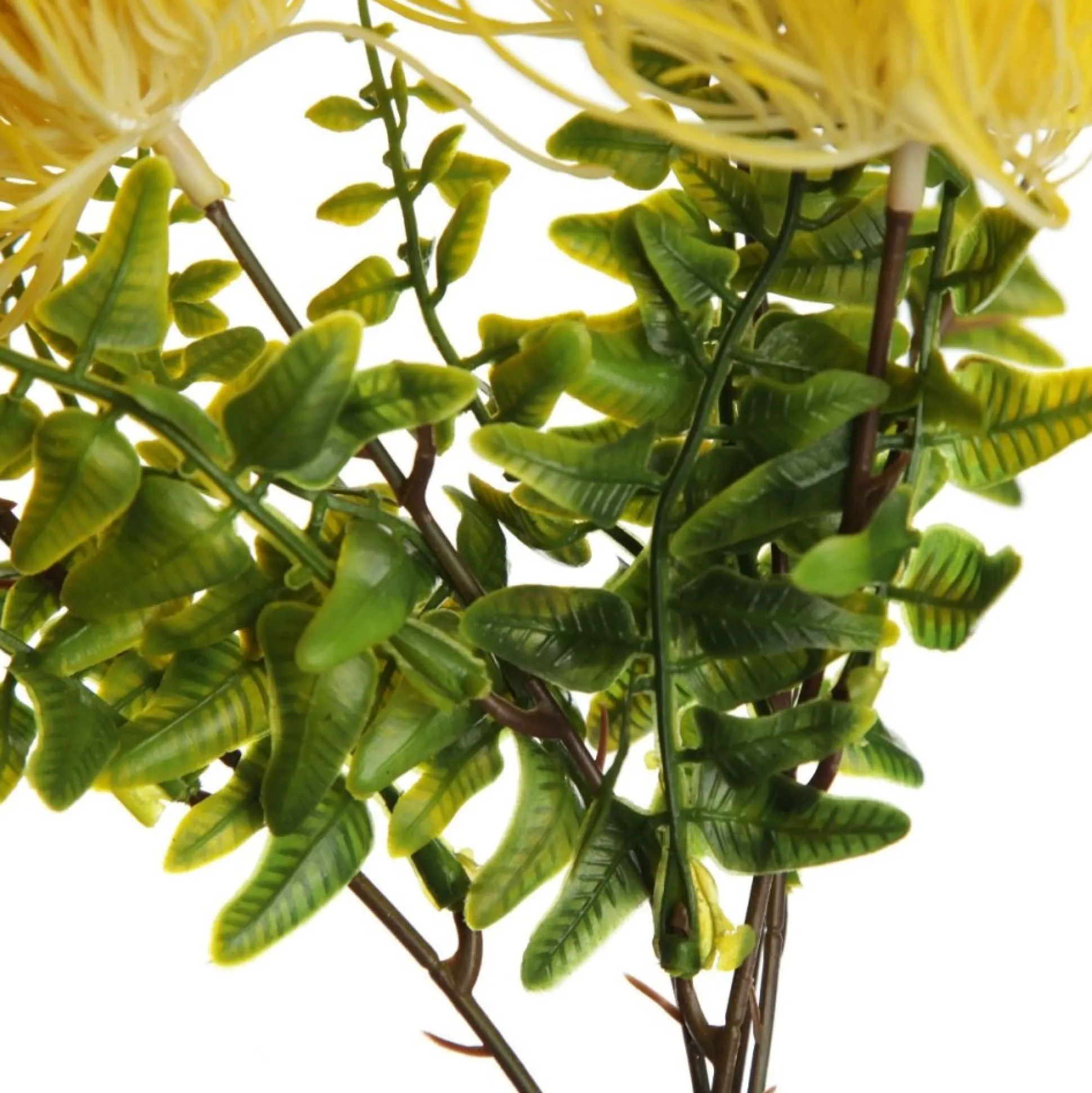 Bring Delightful Australian Flora Into Your Home With This Native Yellow Pincushion Protea Flower Spray. Made From A Flexible, Lightweight Material, This Spray Features 4 Bright Flower Buds With Detailed Foliage In Shades Of Green And Brown. Use To Add Pops Of Colour To Your Floral Arrangements Or Add To Your Christmas Wreath To Create A Unique Design. Can Also Be Used To Create A Custom Table Centepiece Or For Any Crafting Project. Perfect For Australiana Themed Christmas Decor When Paired With Our Other Native Australiana Florals In An Array Of Colours. Create Authentic, Native Floral Arrangements With This Native Yellow Pinecushion Protea Flower Spray.