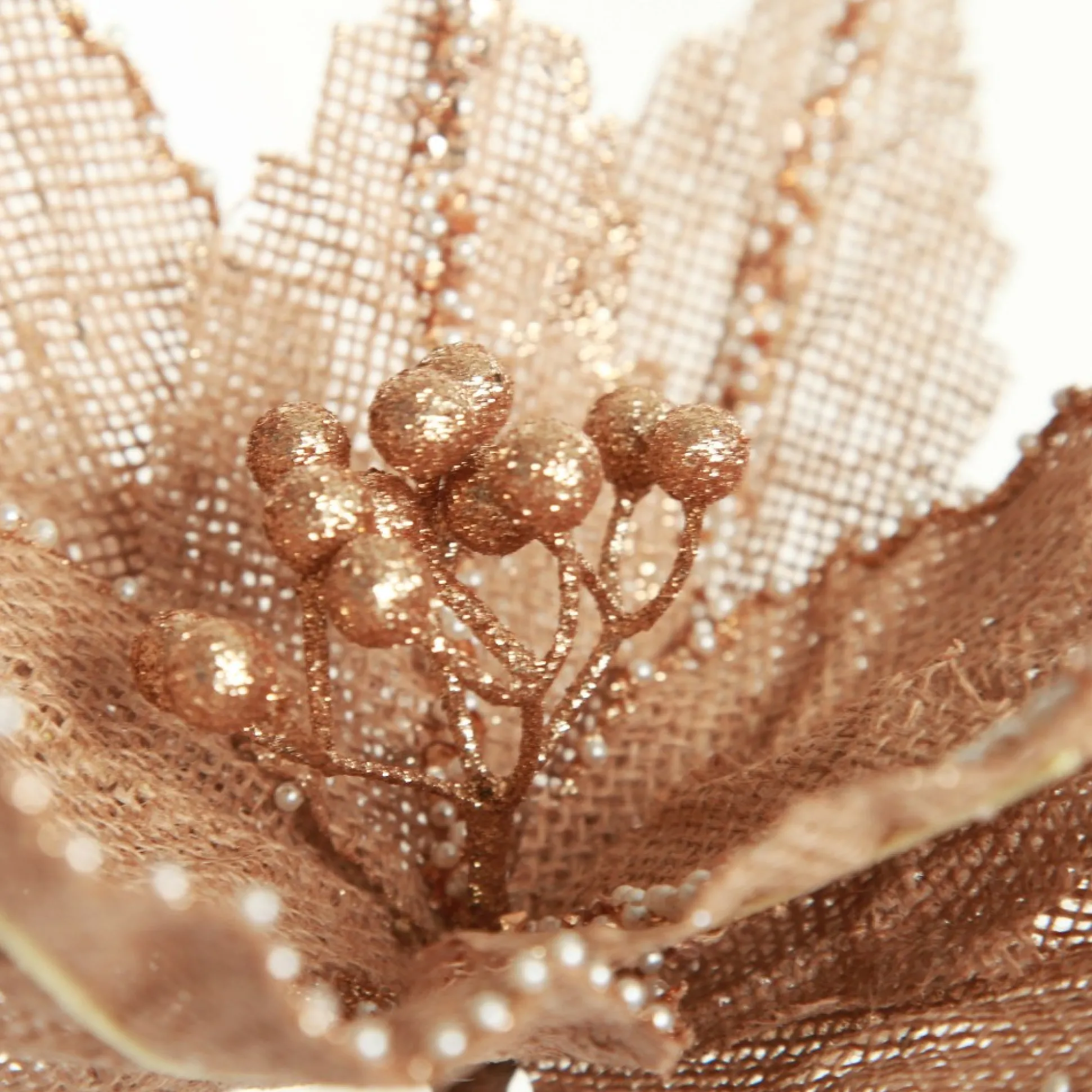 This Natural Burlap Poinsettia Flower Clip With Beads Is Perfect For Anyone Who Loves Decorating To Celebrate The Festive Season And Is Passionate About Christmas Styling. Immerse Yourself In This Rich And Earthy Hues Of Nature’s Palette, That Will Help Make Your Home Feel Warm, Cosy And Inviting. Shop Now And Get Your Natural Burlap Poinsettia Flower Clip With Beads Shipped From Australia By The Christmas Cart.