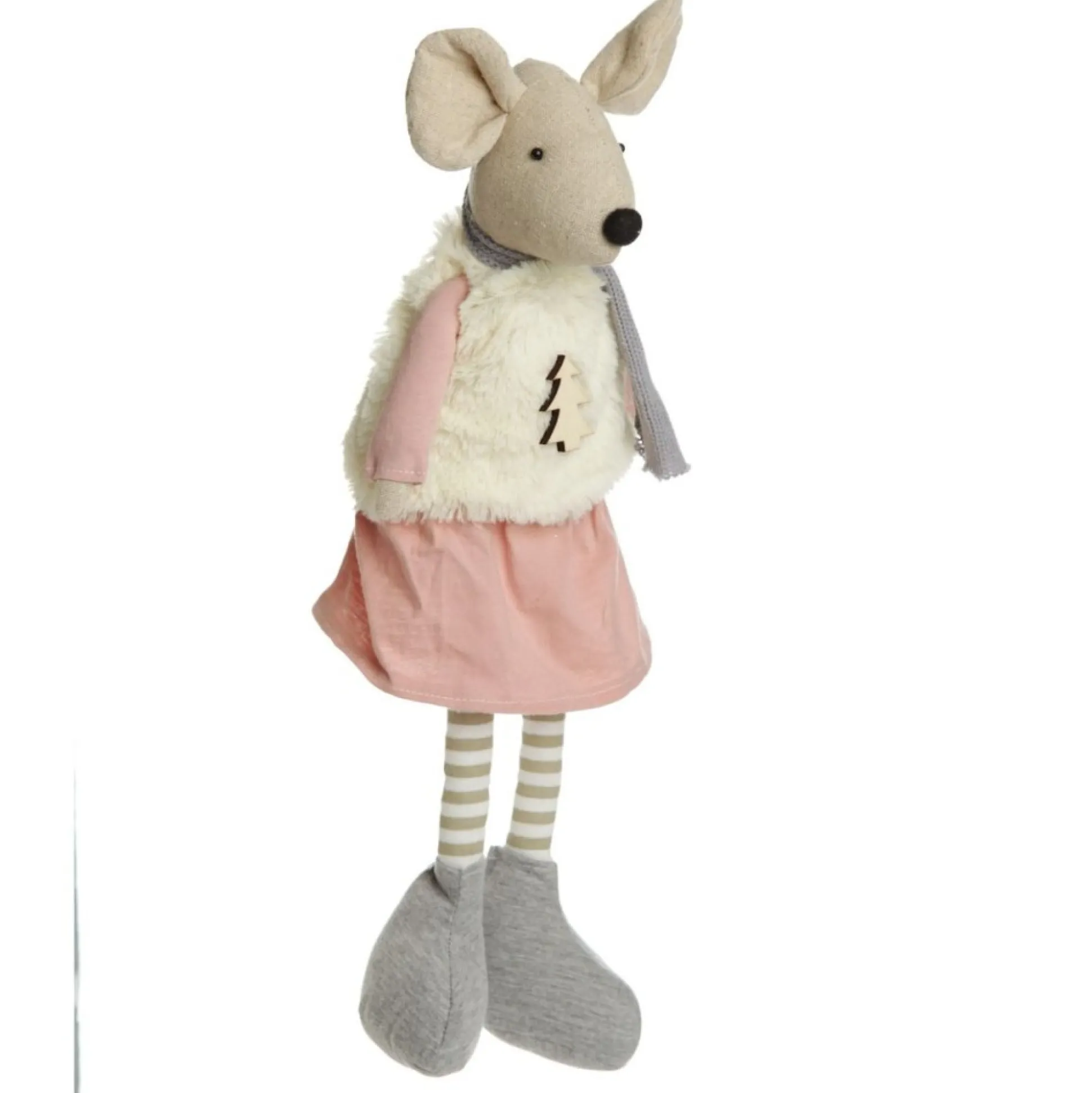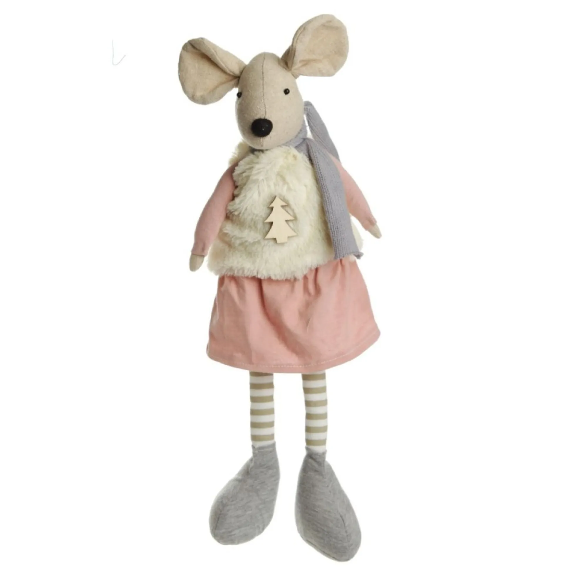 Add Adorable Woodland Charm To Your Home This Christmas With This Delightful Natural Calico Fabric Girl Mouse Grey And Pink. This Adorable Girl Mouse Is Made From Natural Calico And Is Wearing A Delightful Furry Vest Adorned With A Christmas Tree And A Dusty Pink Dress. The Body Is Slightly Weighted To Allow This Cutie To Be Sat On A Shelf Or Mantel.
