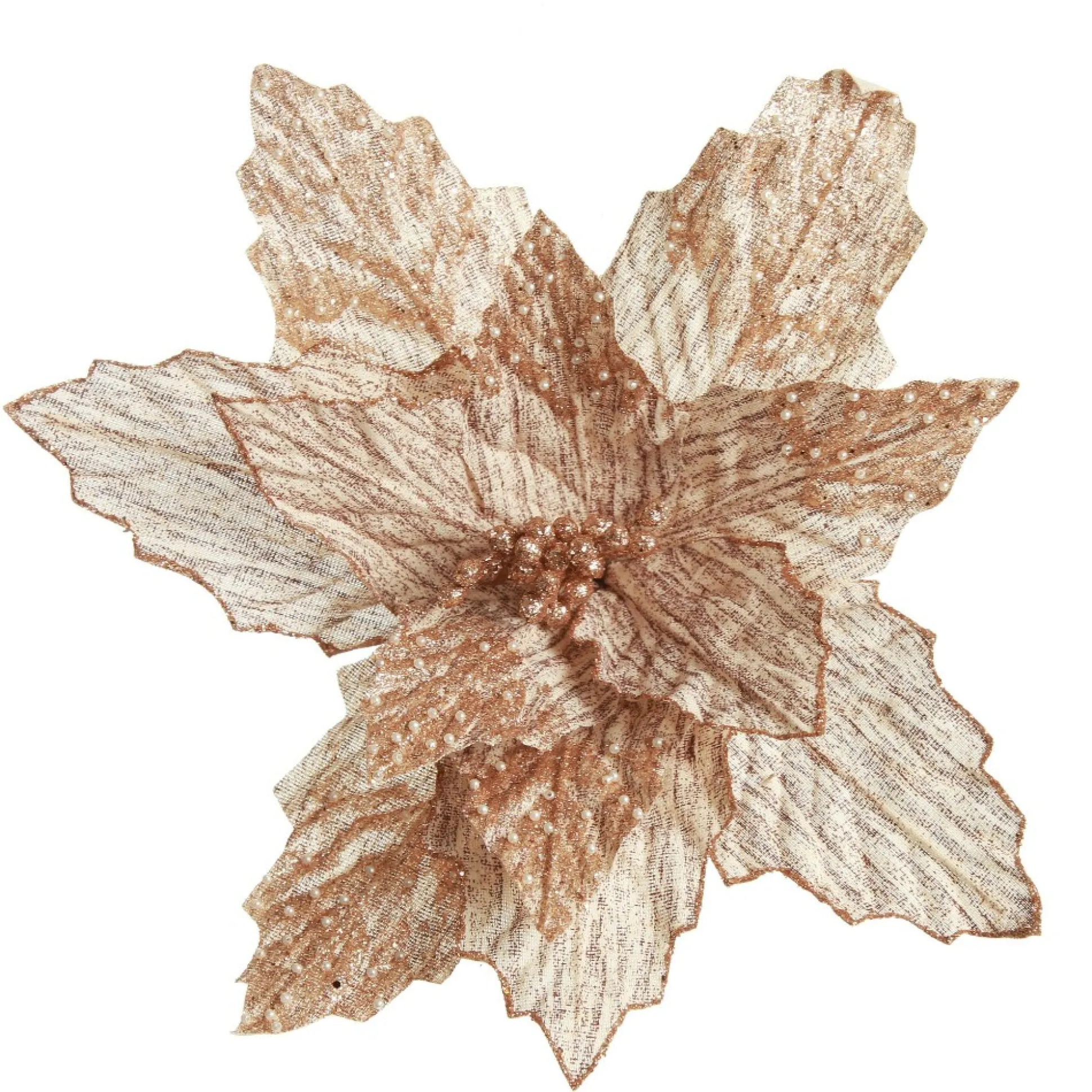 All I Want For Christmas Is This Natural Poinsettia Flower Clip With Glitter Tips, Elegantly Inspired By Rustic Farmhouse Decor. With Its Natural And Neutral Tones, This Decoration Is Crafted From A Combination Of High-Quality Cotton, Linen And Calico To Be Both Flexible And Durable. The Brownish Hues Give It That Subtle Rustic And Warm Charm We Are Craving For Our Homes And The Glitter Finish Adds A Touch Of Sparkle And Glamour.