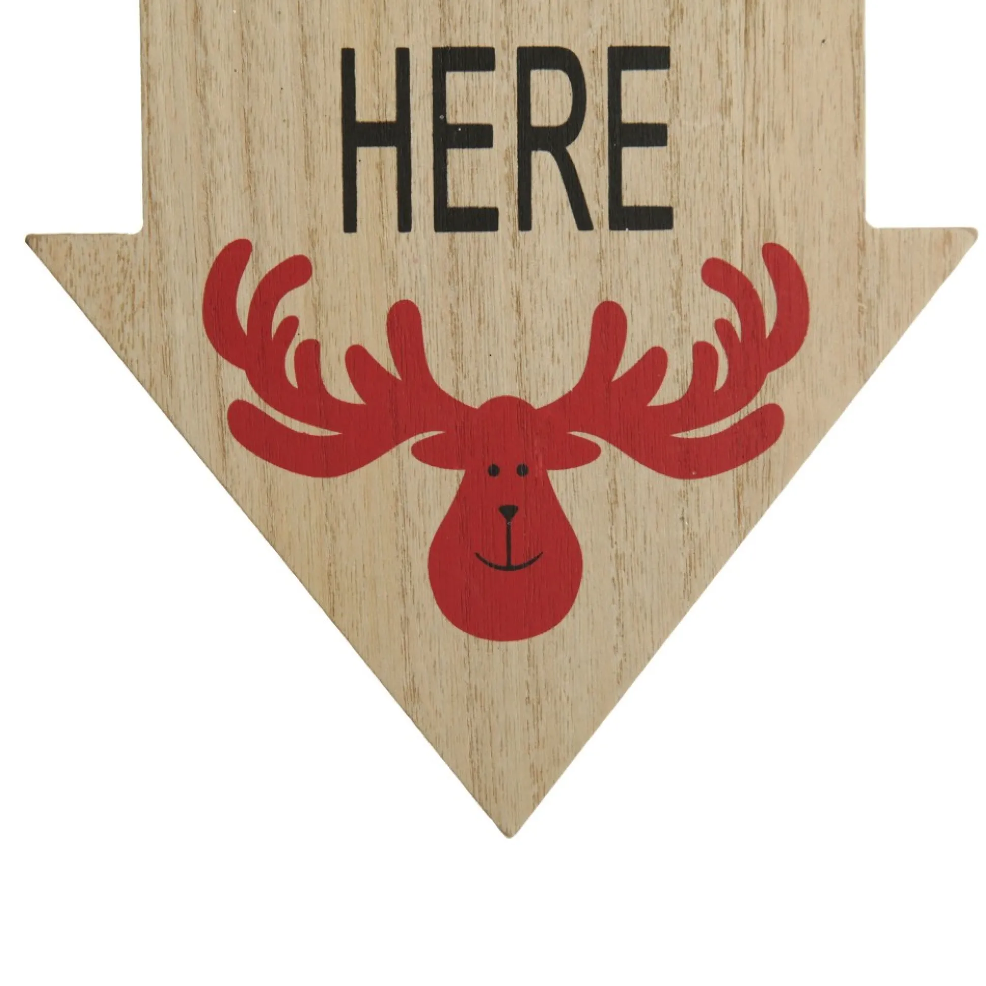 Guide Santa To The Right Spot With This Fun Natural Wood Santa Please Stop Here Arrow Sign – Red Reindeer.