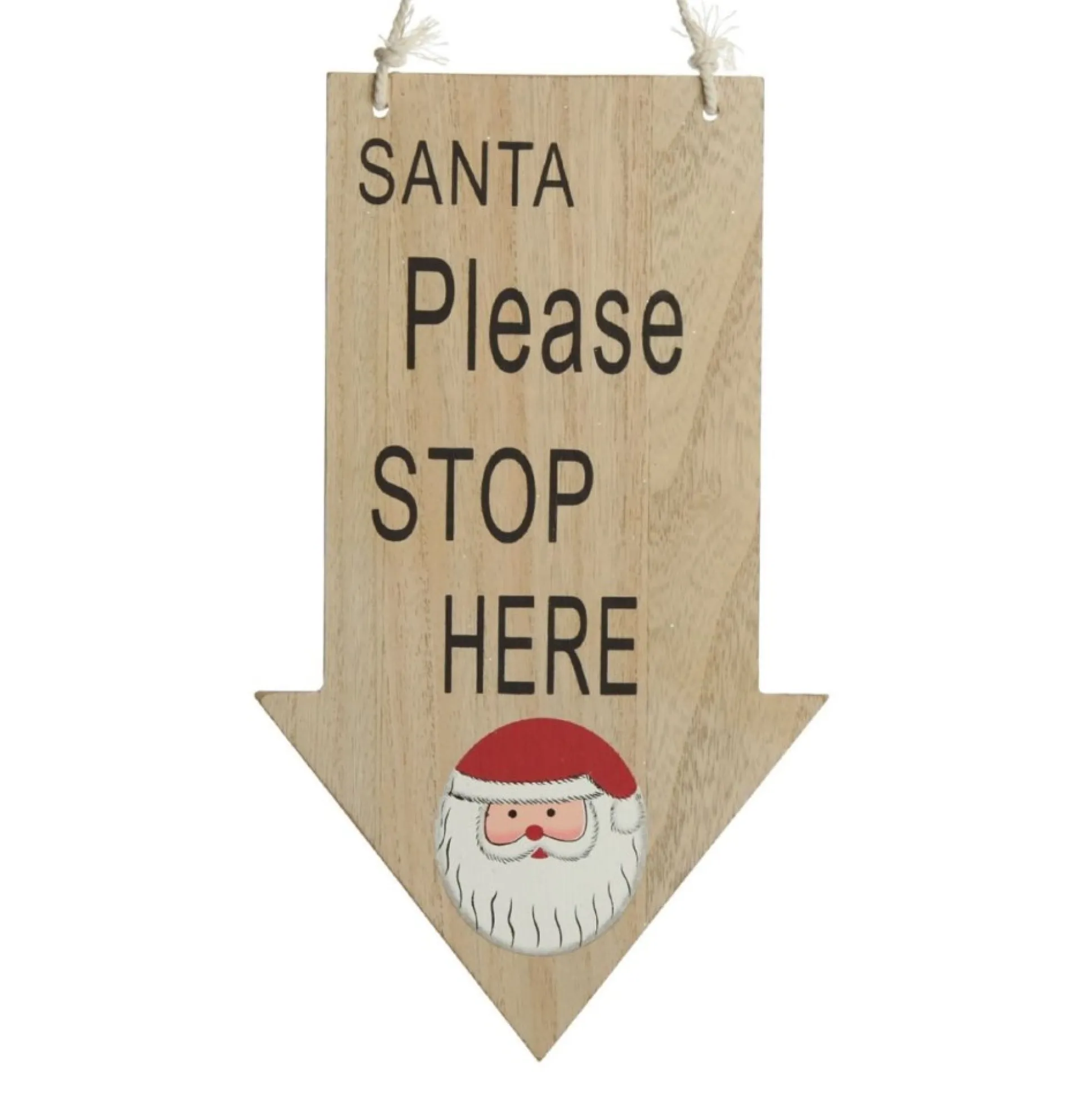 Point Santa In The Right Direction With This Delightful Natural Wood Santa Please Stop Here Arrow Sign – Santa Face.