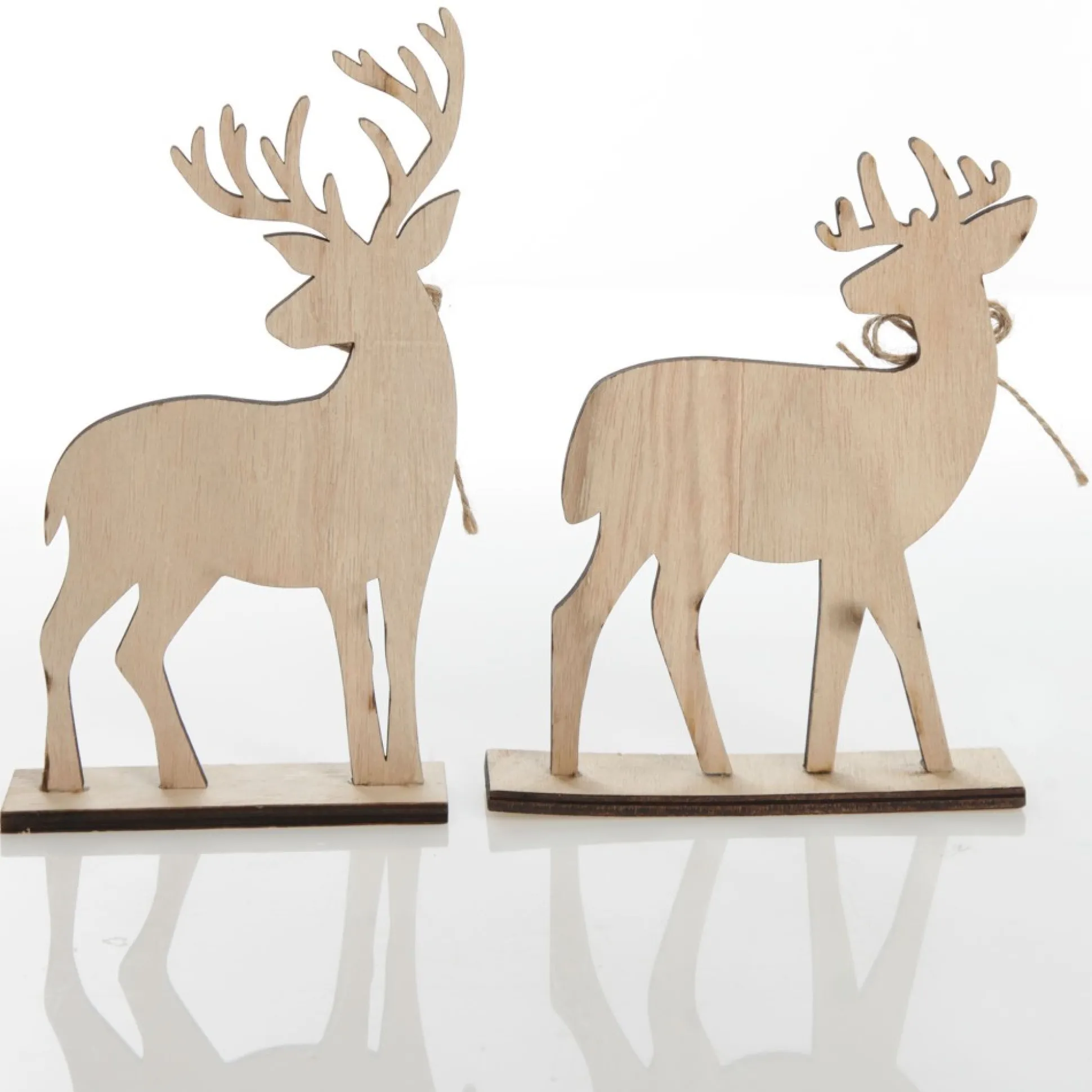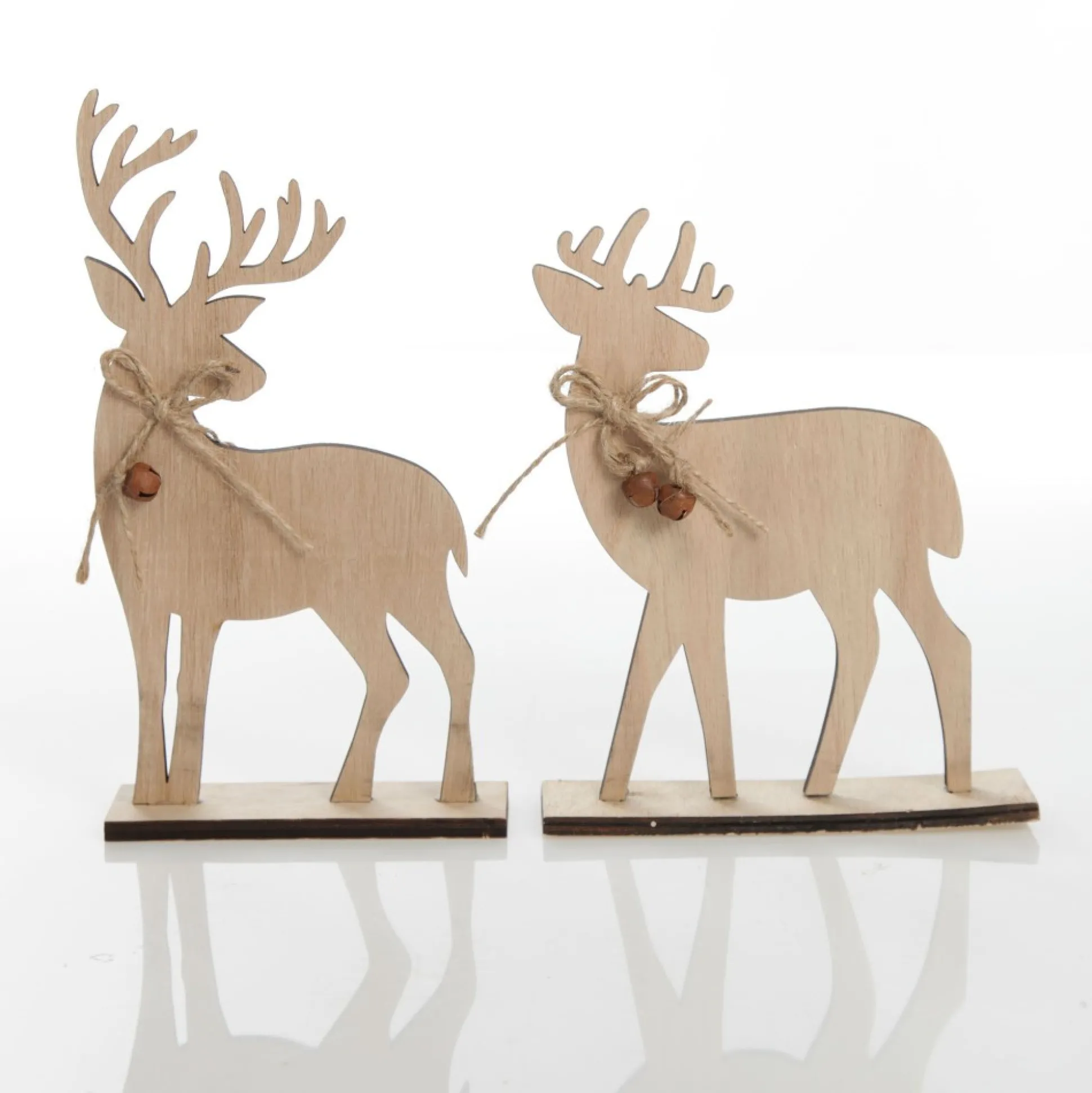 Create A Charming And Whimsical Festive Display With Our Pair Of Wooden Deer Cutout Ornament. Crafted From Lightweight And Durable Wood With A Natural Grain Finish, This Set Features Two Reindeer Cut-Outs – One Male And One Female Design, Both With A Jute String Bow And Rusted Bell Embellishments. Natural, Simplistic, And Full Of Rustic Festive Charm. The Flat Wooden Bases Make It Easy To Display The Deer Wherever You Choose. Display On Any Surface In Your Home As Part Of A Festive Vignette. Combine With Festive Foliage And Other Unique Rustic Ornaments To Create A Unique Display. These Lovely Wooden Deer Would Be Perfect For A Rustic Farmhouse Christmas Decor Theme.