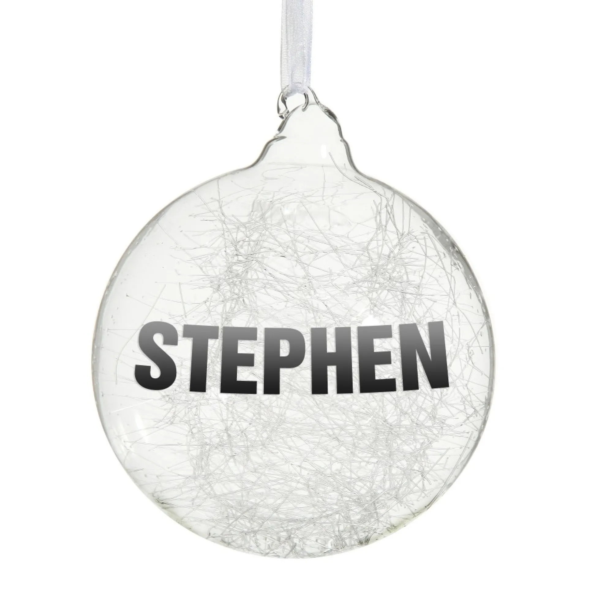 Add Something Unique To Your Christmas Tree With This Stunning Icicle Glass Personalised Christmas Bauble. Made From Seamless, High Quality, And Hand Spun Glass, This Delicate Bauble Will Add Some Sparkle To Your Home! Featuring An Elegant White Ribbon, Ready To Hang On Your Tree Or One Of Our Display Hangers, This Personalised Bauble Is An Excellent Way To Add Something Unique To Your Home This Christmas. You Will Love Using This Shining Bauble To Decorate Your Tree Each Year As It Will Reflect Your Christmas Tree Lights And Add Shimmer To Any Style You Choose! Popular For Boys And Girls Of All Ages, This Bauble Is Perfect For All Members Of The Family, Or To Give As A Precious And Memorable Gift In One Of Our Gift Boxes. Simply Add A Name And Year To Create A Personal Christmas Gift For Your Loved Ones. Create Wonderful, Lasting Memories For Years To Come By Choosing This Unique Bauble For Your Collection.