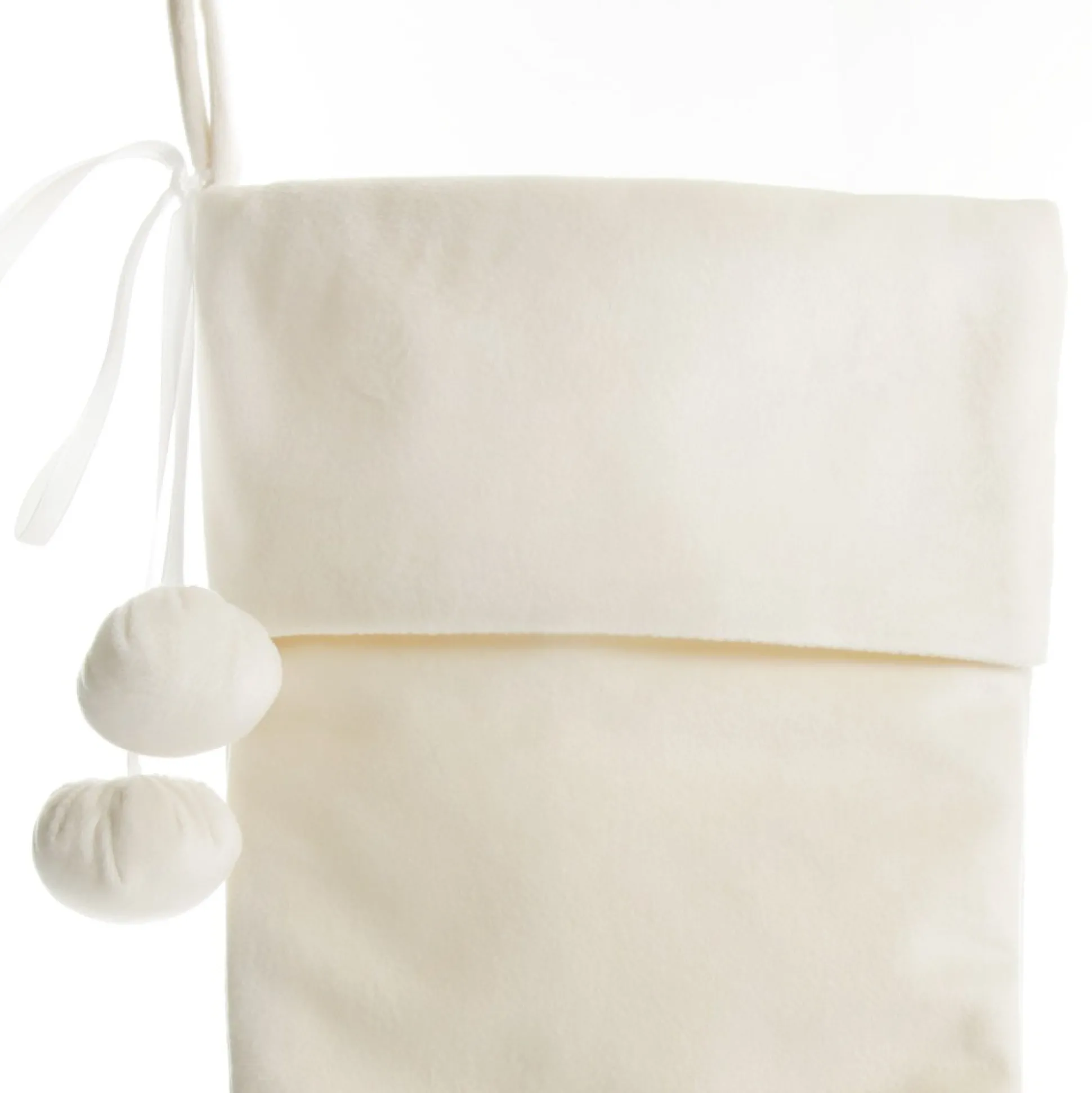 Crafted From High-Quality, Soft Ivory Velvet With Ribbon And Velvet Ball Embellishments. The Stocking Can Be Personalised On The Cuff With The Name Of Your Choice. Price Includes Personalisation. Simply Choose A Text Style And Colour And Add The Name Of Your Choice.
