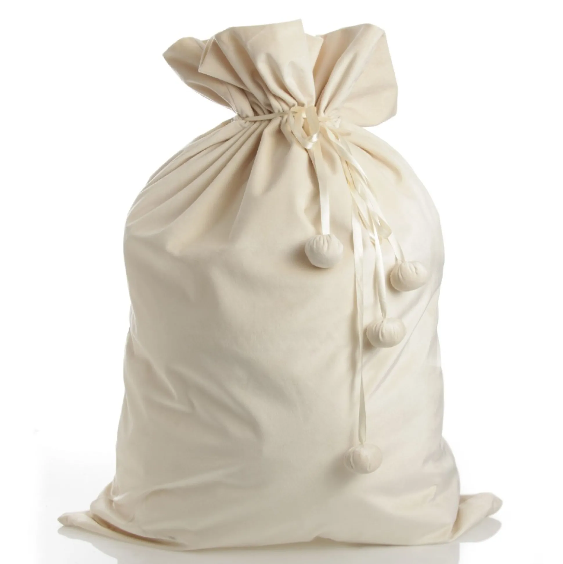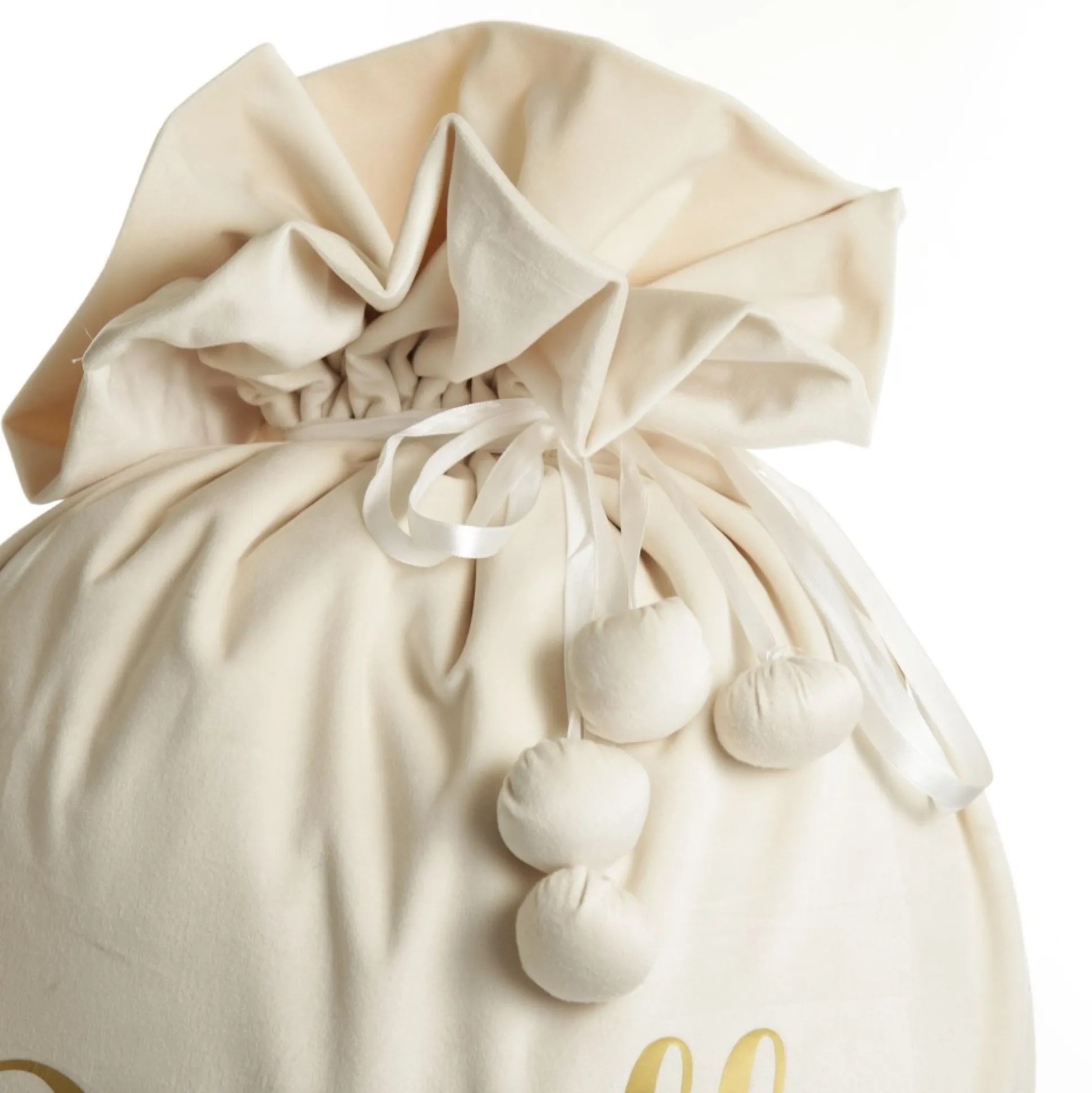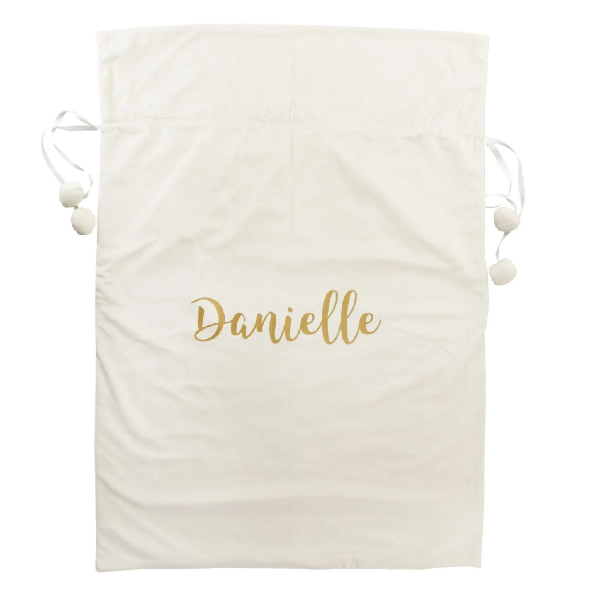 Our Personalised Ivory Velvet Santa Sack Is The Perfect Festive Keepsake For Your Loved Ones. Crafted From Stunning, Soft, Ivory Velvet With A Satin Tie And Pom Pom Details, This Santa Sack Is Personalised With The Name Of Your Choice With Heat Transfer Vinyl In A Delightful Cursive Script. Add A Name And Choose A Personalisation Colour To Create A One-Of-A-Kind Christmas Keepsake.