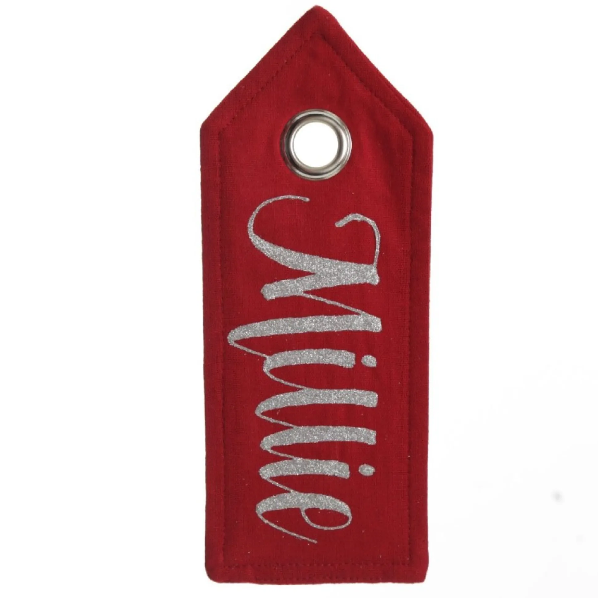 Crafted From Red Linen With A Silver Metal Loop, This Tag Features Gorgeous Personalisation By Our Talented Calligraphers With The Name Of Your Choice.