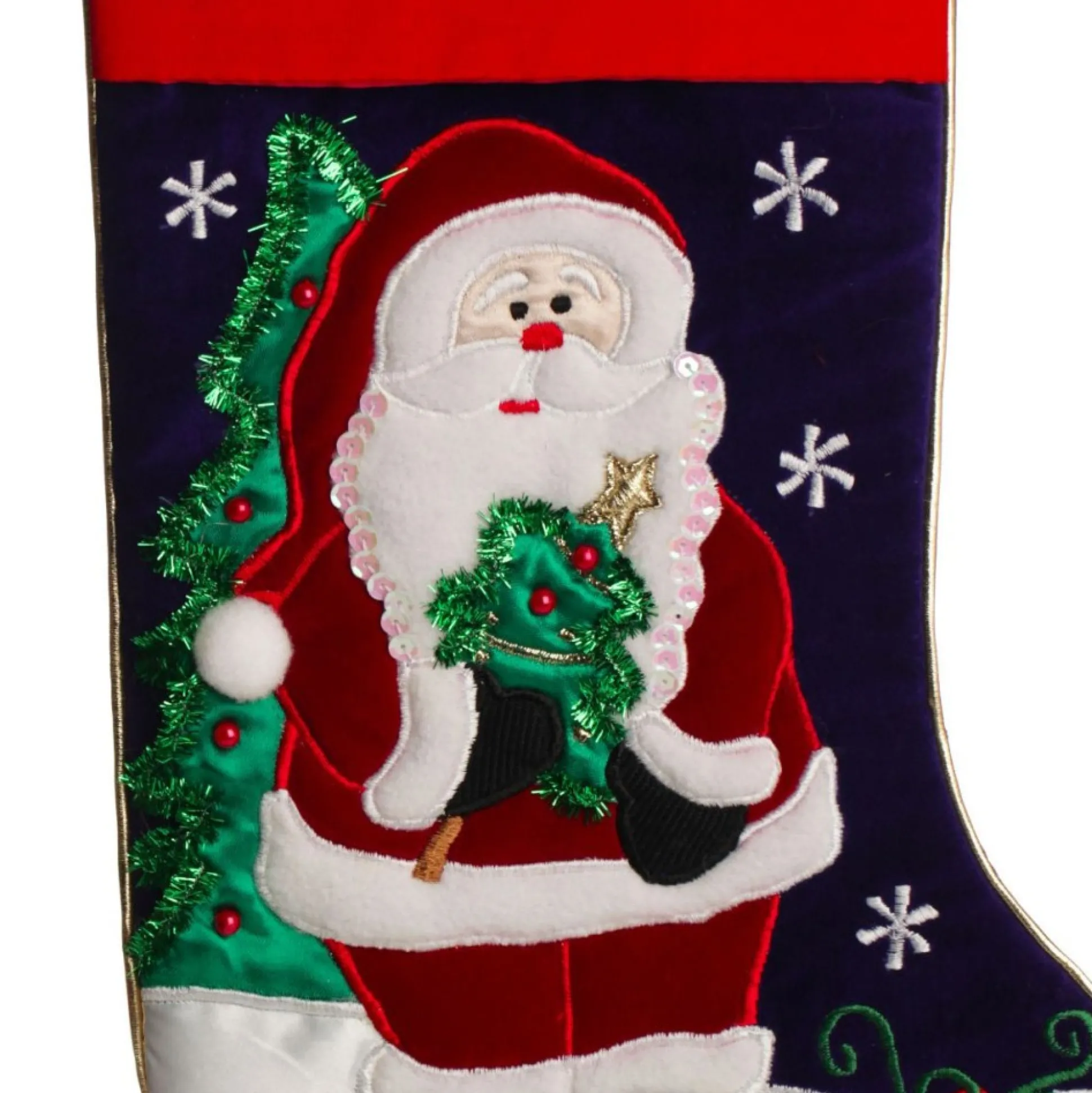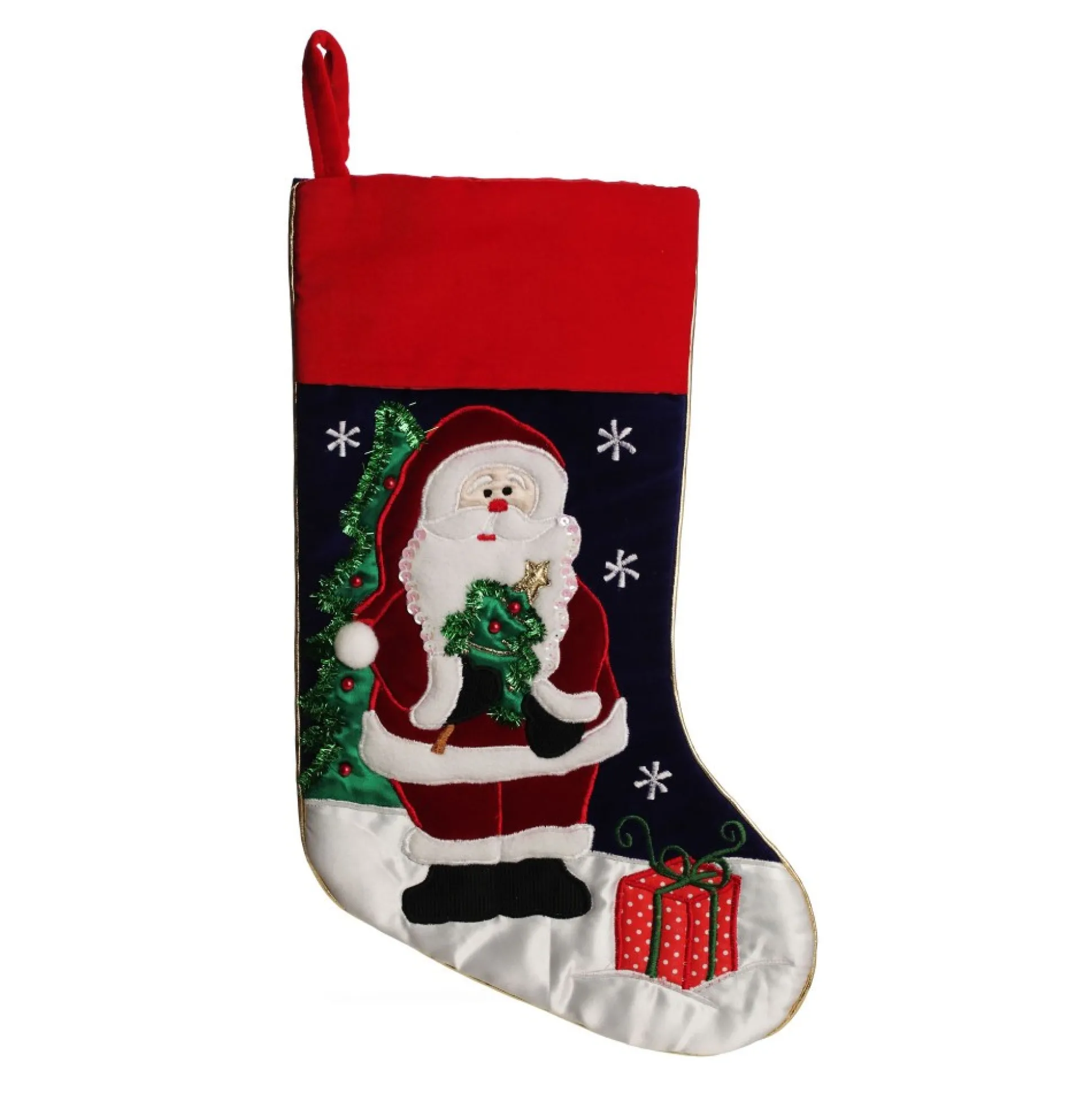 Create Wonderful Memories This Christmas With This Personalised Santa Christmas Stocking. Made From A Combination Of Lush Velvet, Satin And Fluffy Fabrics This Stocking Features An Appliqued Santa Design With Tinsel And Sequins. Popular For Children Of All Ages Or As A Part Of A Set For The Whole Family With Our Other Traditional Designs; Reindeer, Teddy Bear, Snowman, Dog And Cat. Personalised Stockings Are A Great Way To Add Something Personal And Unique To Your Home And Make Excellent And Memorable Gifts For Friends And Family! Display Stockings In Your Home Each Year To Dress Up Your Mantel Using Our Stocking Hangers. This Stocking Is Perfect For A Magical Christmas Morning, Or Traditional Christmas Theme With Red, Green, Gold, And Silver Tones. Create A Gorgeous And Fun Display With This Traditional Santa Stocking.