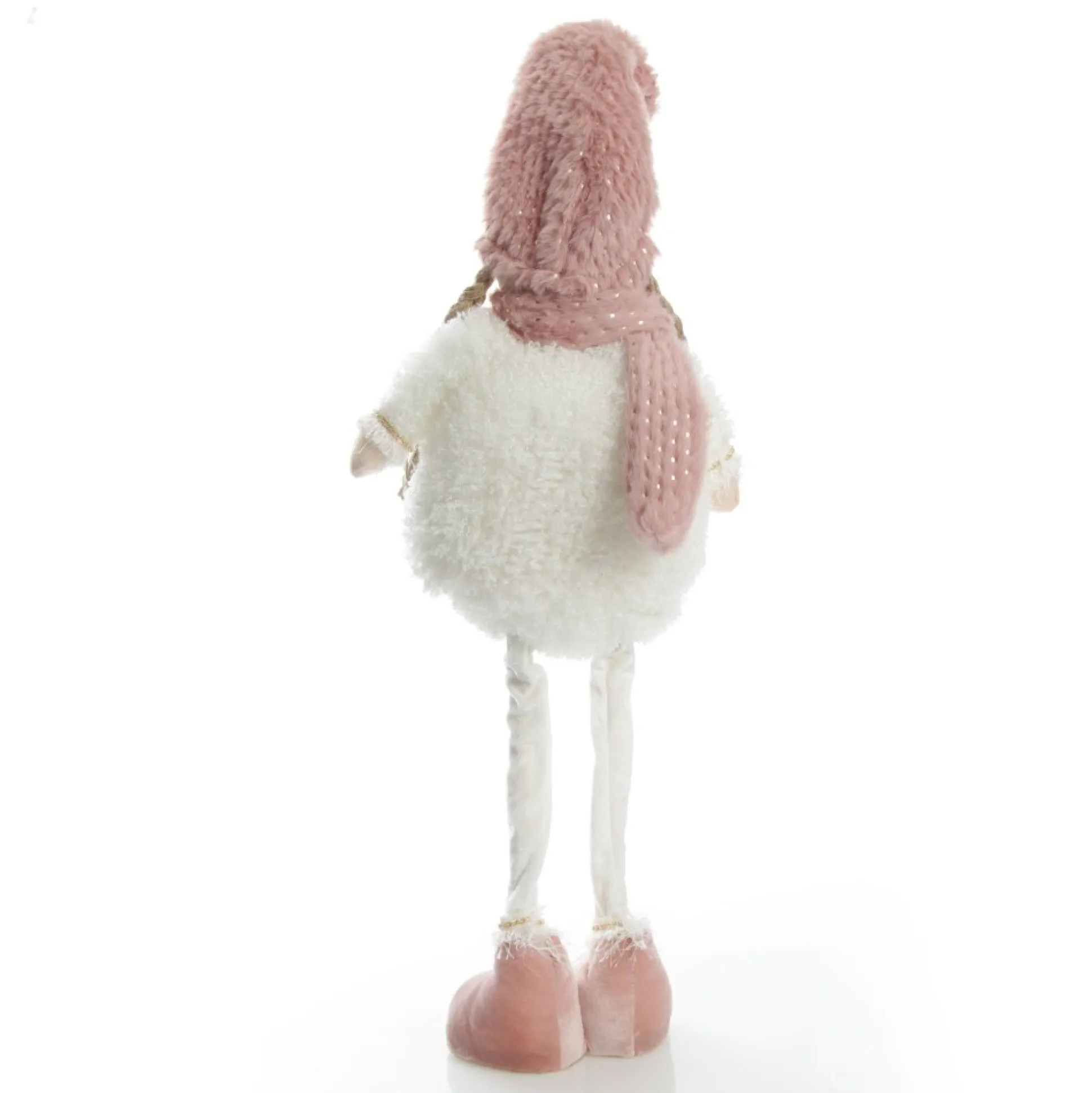 Crafted From Soft Materials, This Charming Girl Character Features Cute, Plaited Hair, A Fluffy White Outfit And Fluffy Pink Scarf, Hat, And Velvet Boots. A Wooden Love Heart Shaped Plaque Features The Name Of Your Choice In Our Unique Style Of Glitter Calligraphy. Two Sturdy Legs Allow This Adorable Character To Stand On Its Own. Perfect For Placing Next To The Christmas Tree Or Displayed On A Bookshelf Or Mantel.