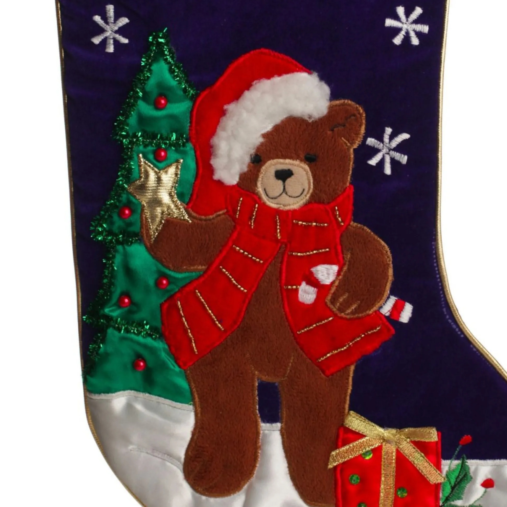 Make Fun And Magical Memories This Year With A Personalised Teddy Bear Christmas Stocking. Made From A Combination Of Lush Velvet, Satin And Fluffy Fabrics, This Stocking Features An Appliqued Teddy Bear With Tinsel And Sequins And Comes Ready To Hang On Your Mantel. Simply Use One Of Our Weighted Stocking Hangers To Display In Your Home. Popular For Children Of All Ages Or As Part Of A Set For The Whole Family Using Our Other Traditional Velvet Stocking Designs. Available In Santa, Reindeer, Snowman, Dog, Cat Designs. Create A Gorgeous Matching Set For Your Family! Personalised Stockings Add A Unique And Personal Touch To Your Home And Make Excellent Gifts For Friends And Family! Add Them To Your Mantel Each Christmas To Create A Gorgeous Traditional Display And Even Fill Them With Little Treats And Gifts As A Surprise On Christmas Morning! This Teddy Bear Stocking Is Perfect For A Magical Christmas Morning, Or Traditional Christmas Theme With Red, Green, Gold, And Silver Tones. Bring Christmas Cheer To Your Home Of Spread Love To Friends And Family With This Personalised Teddy Bear Christmas Stocking.