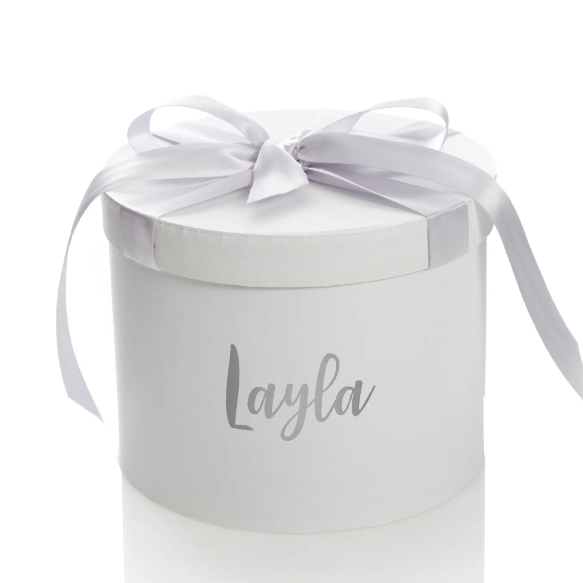 Stray From The Conventional Single-Use Gift Wrapping By Choosing A Splendid Personalised White Round Gift Box With Silver Ribbon Bow. This Gift Box Is One To Be Desired – Finished With A Silky-Smooth Silver Ribbon And An Elegantly Designed Name, Your Chosen Special Recipient Will Fall In Love With Their Gift From The First Glance.