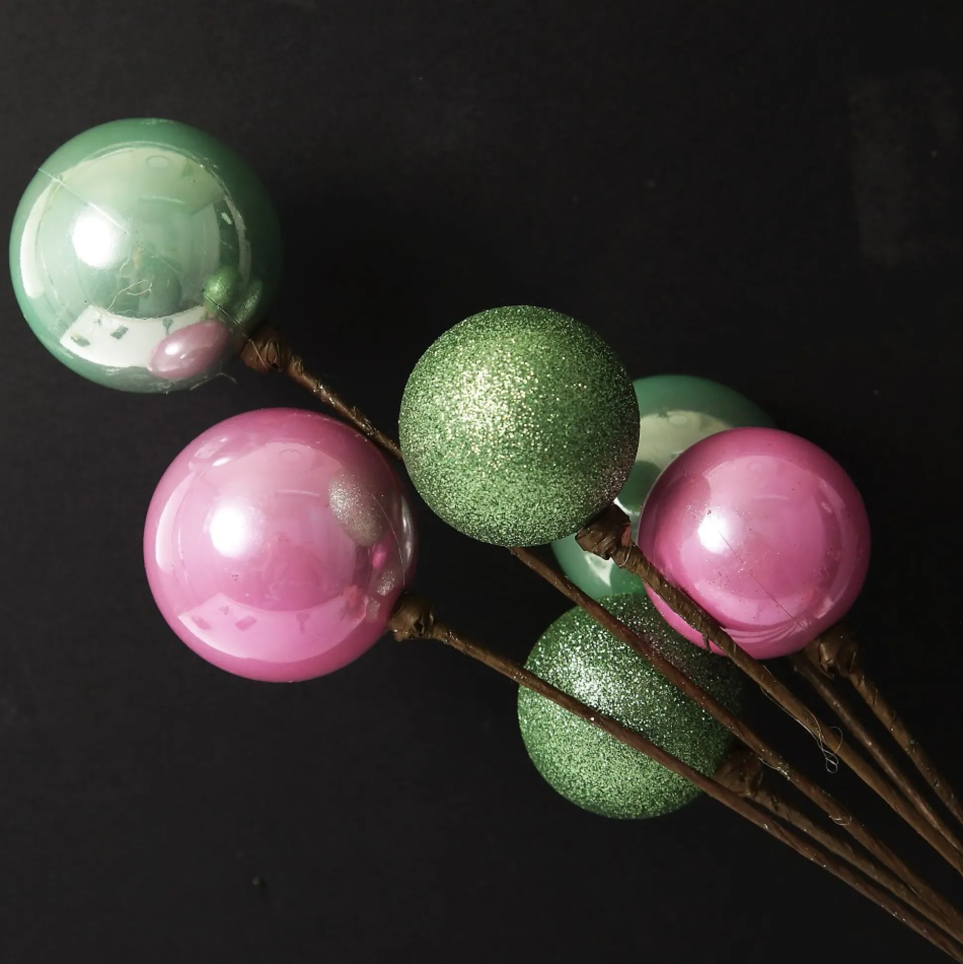 This Unique Pink And Mint Christmas Bauble Cluster Pick Will Enhance Your Festive Displays. Featuring A Collection Of Pink And Mint Green Assorted Baubles In Gloss And Glitter Finishes. Each Bauble Attaches To A Durable And Flexible Stem Making It Easy To Place And Arrange When Decorating.