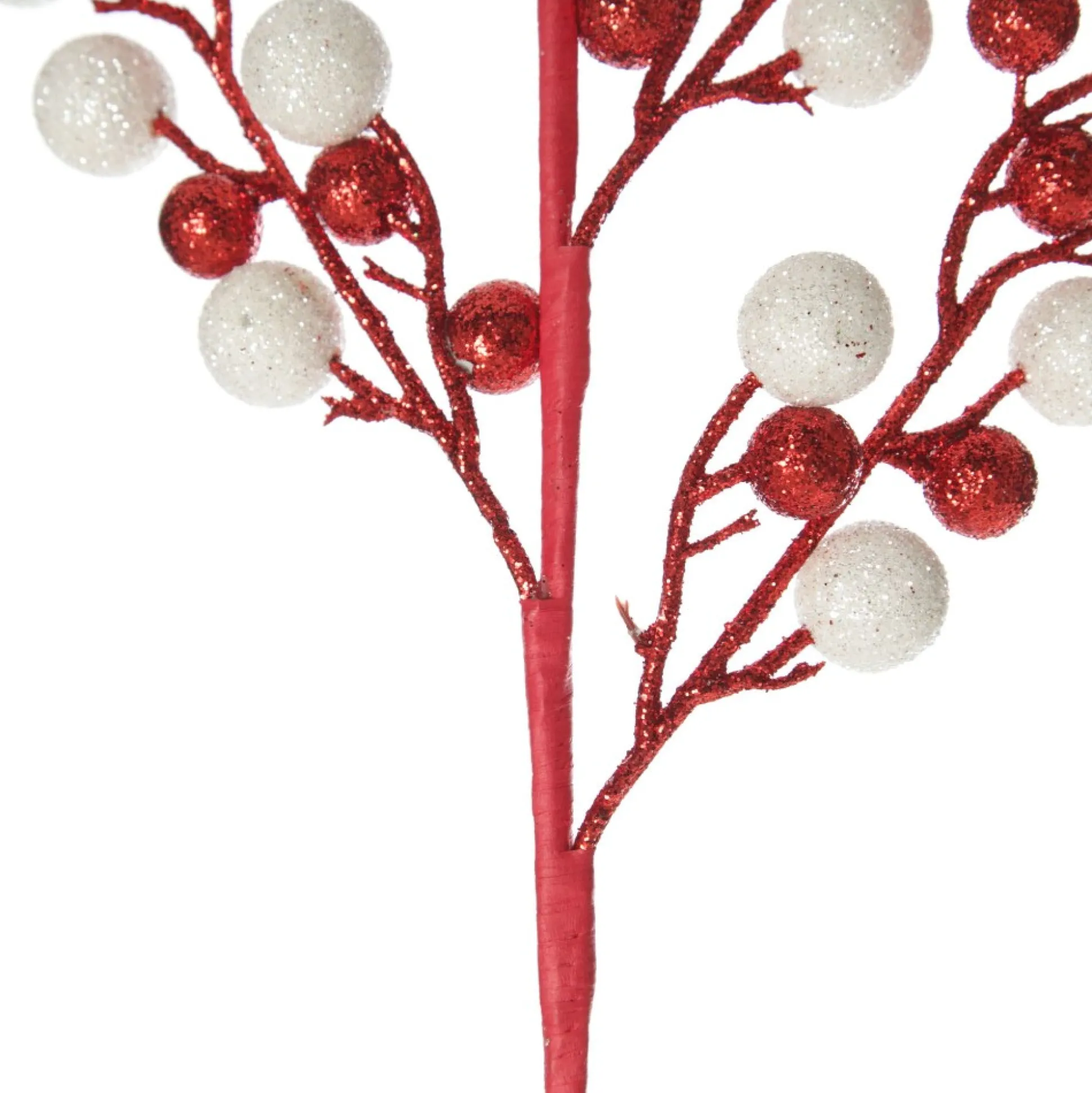 This Whimsical Red And White Glitter Ball Christmas Pick Will Infuse Your Home With Exciting Festive Charm. Crafted With A Durable And Flexible Stem, This Pick Features Collections Of Red And White Glitter Balls On Branches.