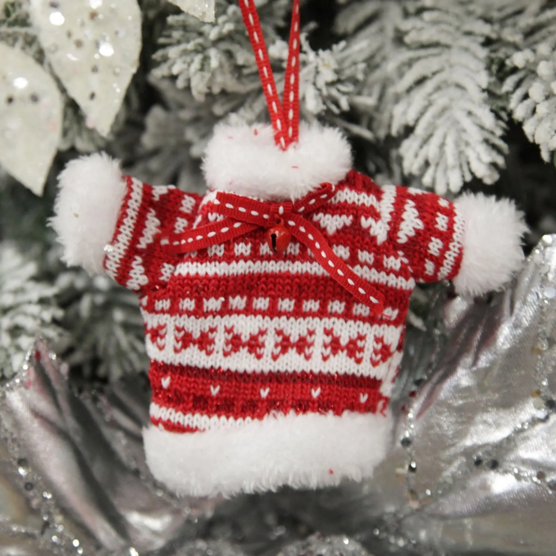 Add Adorable And Unique Embellishments To Your Christmas Tree With This Red And White Knitted Christmas Tree Decorations – Set Of 3. This Set Includes A Small Jumper, Stocking And Mitten Crafted From Soft Knitted Fabric And Featuring A Festive Red And White Nordic Pattern.