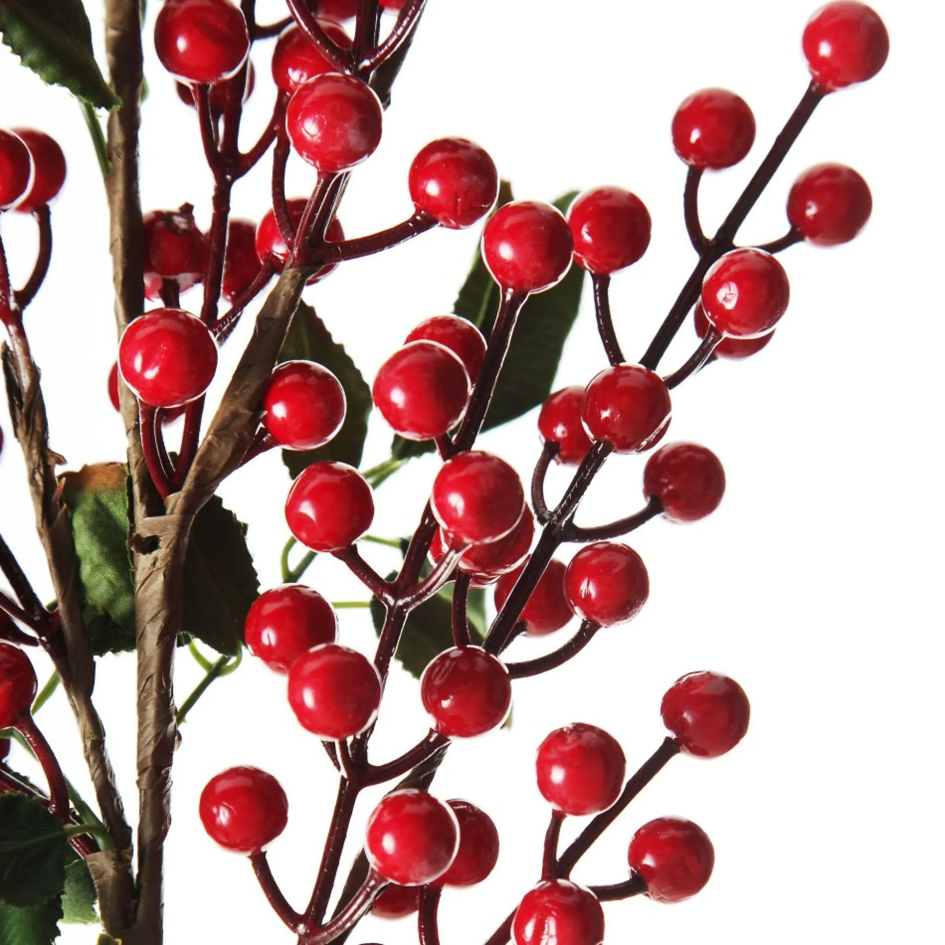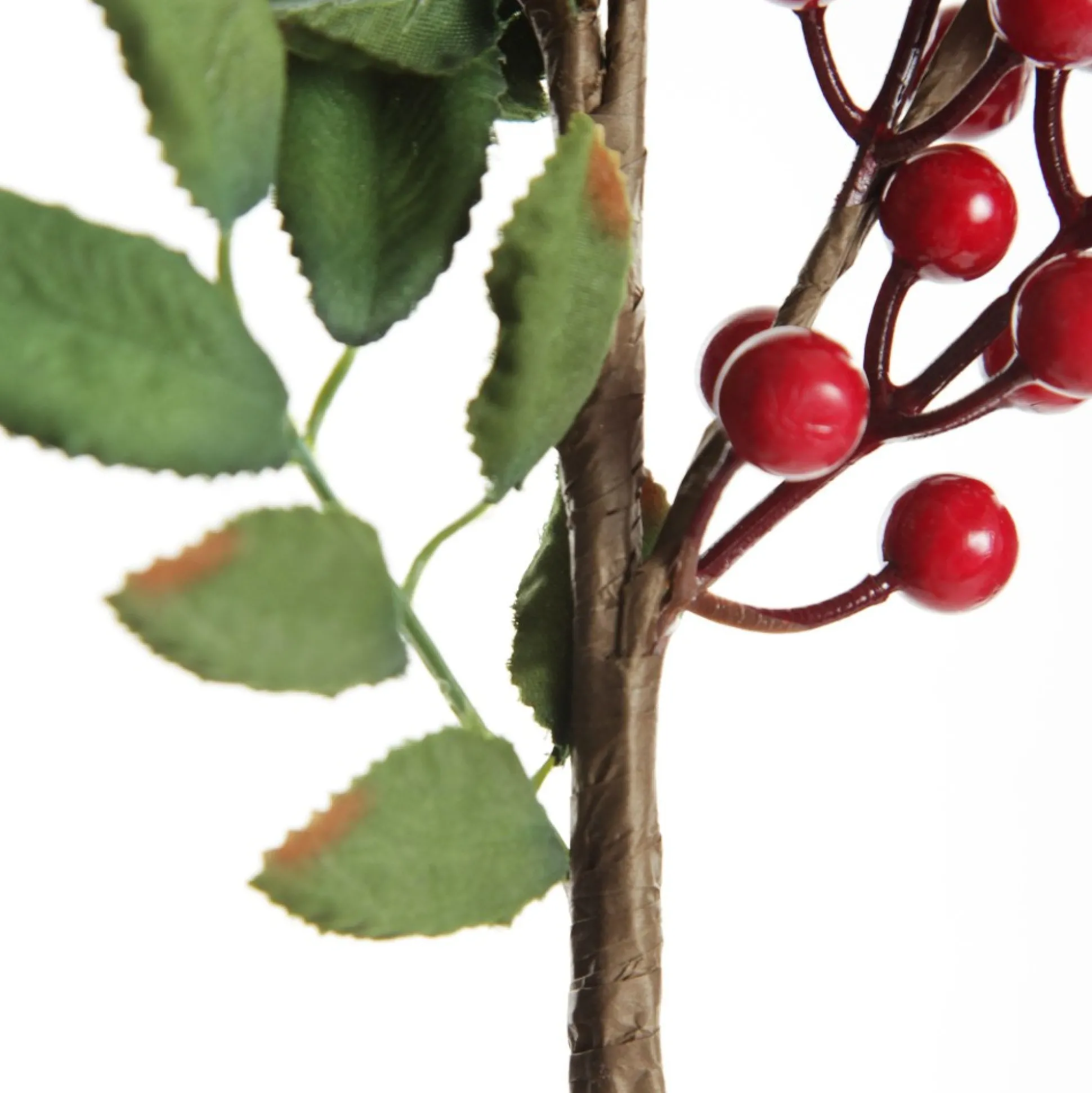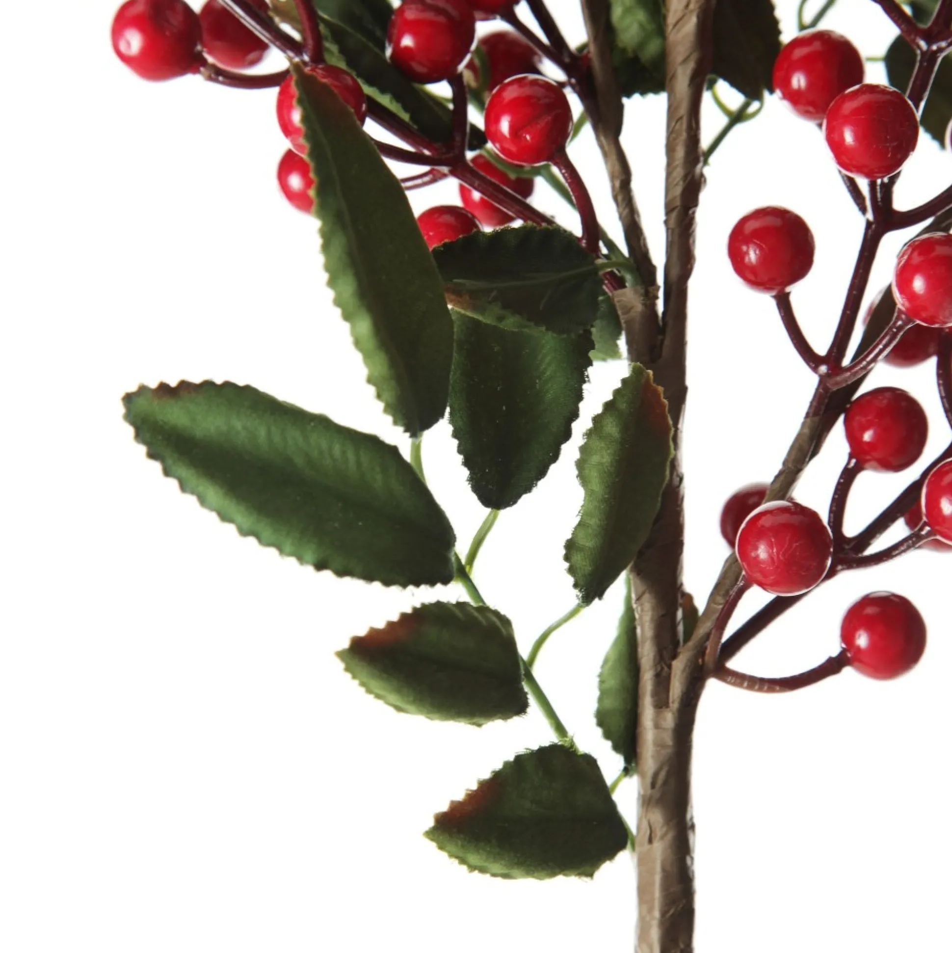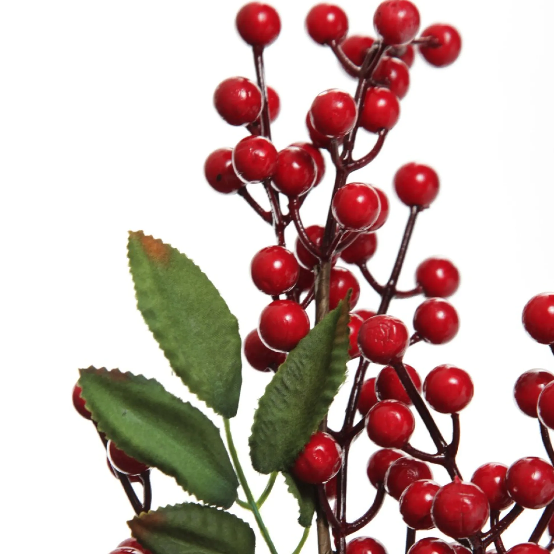 Featuring A Collection Of Vibrant Red Berries On Stems With Green Leaf Details Throughout. The Flexible And Durable Stem Makes It Easy To Place And Arrange For All Your Crafting And Decor Endeavours. Enhance Any Festive Floral Display In Your Home Such As Arrangements In A Vase, Garlands, Centrepieces And More! Combine With Floral, Foliage, And Glitter Sprays.