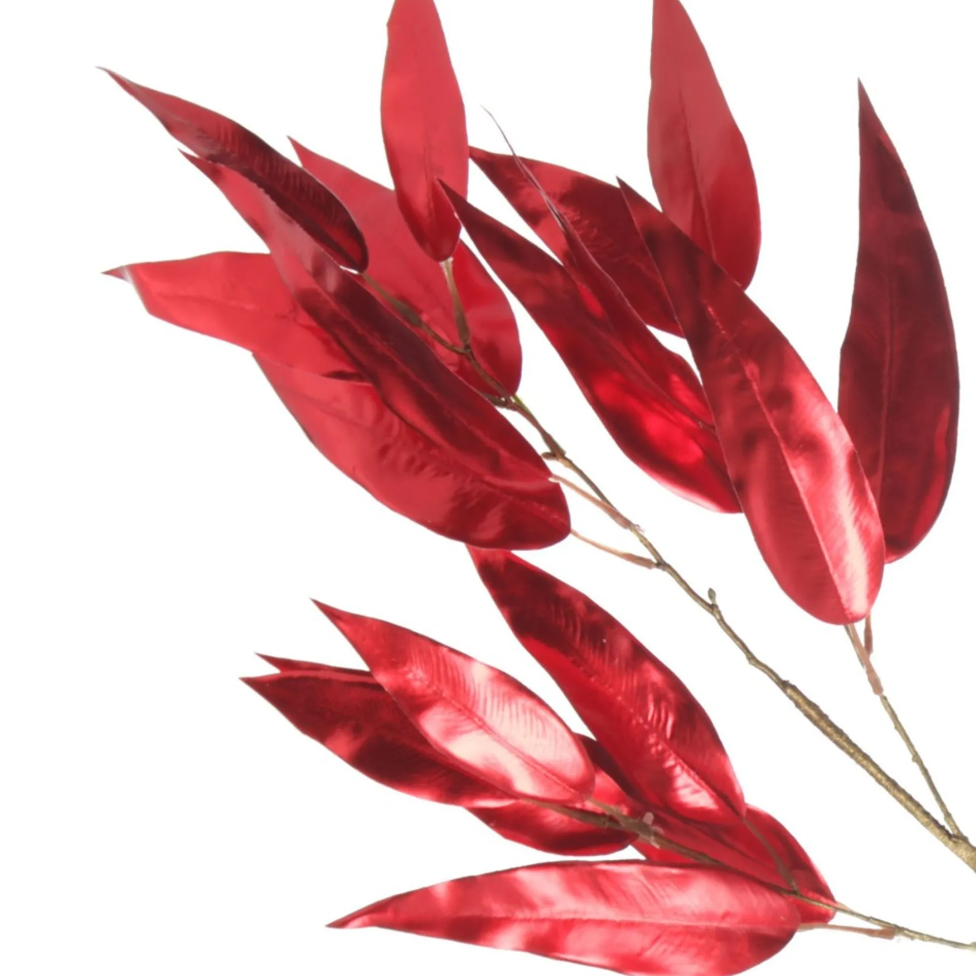 Create Sophisticated Christmas Floral Arrangements With A Native Accent Using Our Red Eucalyptus Leaf Branch Spray. Crafted With A Durable And Flexible Stem For Easy Placement, This Spray Features A Collection Of Metallic Red Eucalyptus Leaves With A Gorgeous Shiny Finish. Each Leaf Is Textured For A Realistic Effect. Combine With Other Native Floral Elements To Create A Unique Christmas Arrangement. Timeless And Durable, Faux Florals, Foliage And Unique Sprays Are Becoming Popular For Those Who Love To Create Their Own Unique Displays. Reuse Them Again And Again And Create Multiple Different Displays For Any Season. Use Them To Embellish Your Christmas Tree, Create Your Own Garlands Or Wreaths, Or Create Exciting Floral Arrangements In A Vase For The Festive Season. The Vibrant Red Tone Makes This Spray The Perfect Match For Any Traditional Christmas Theme. It Could Also Be Used As Part Of An Australian Bush Christmas Display Incorporating A Range Of Our Gorgeous Native Flora. Celebrate In Style This Christmas And Create A Beautiful Display In Your Home.