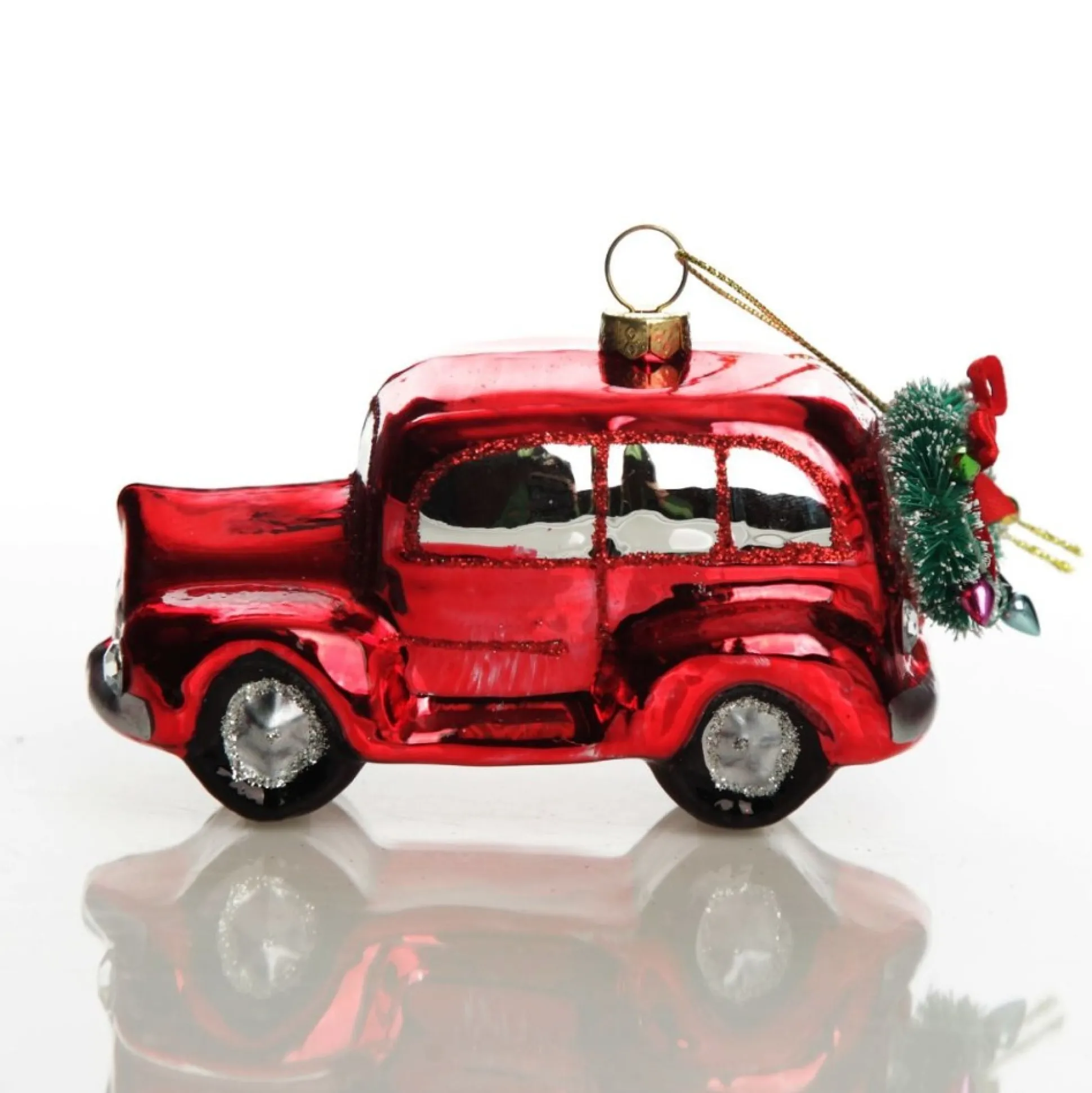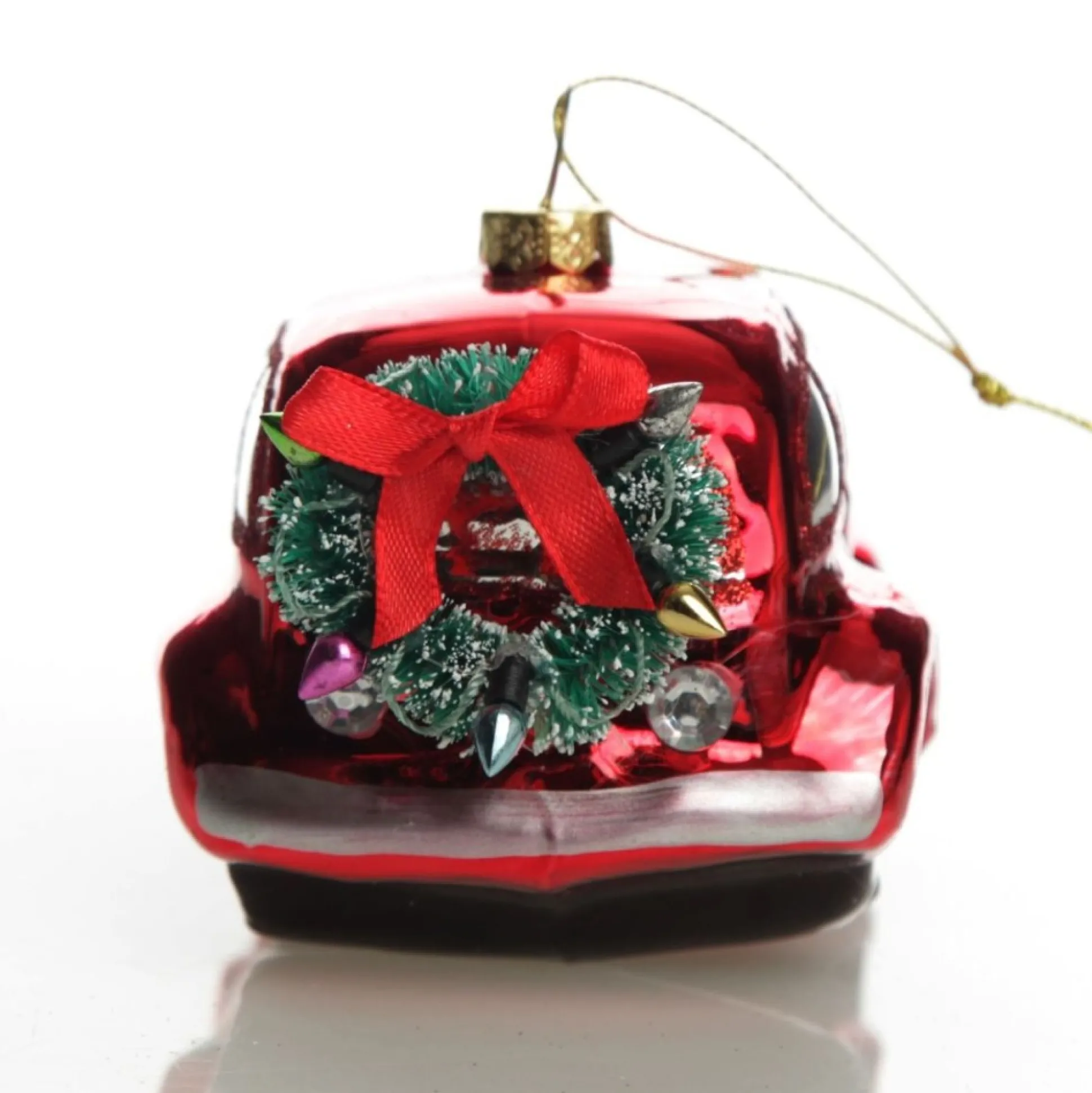 Red Glass Car with Christmas Wreath Tree Decoration Christmas Tree Decorations|