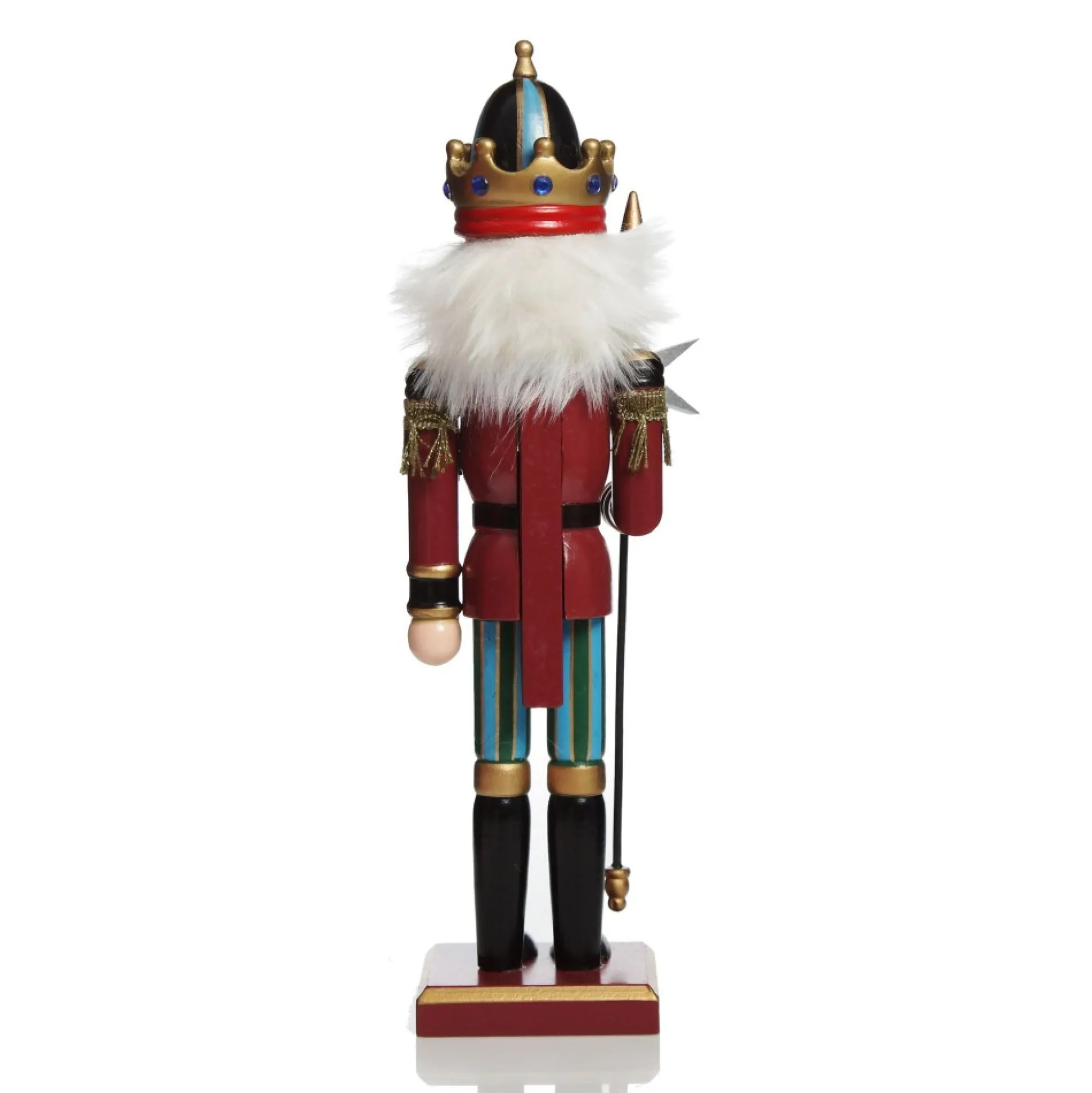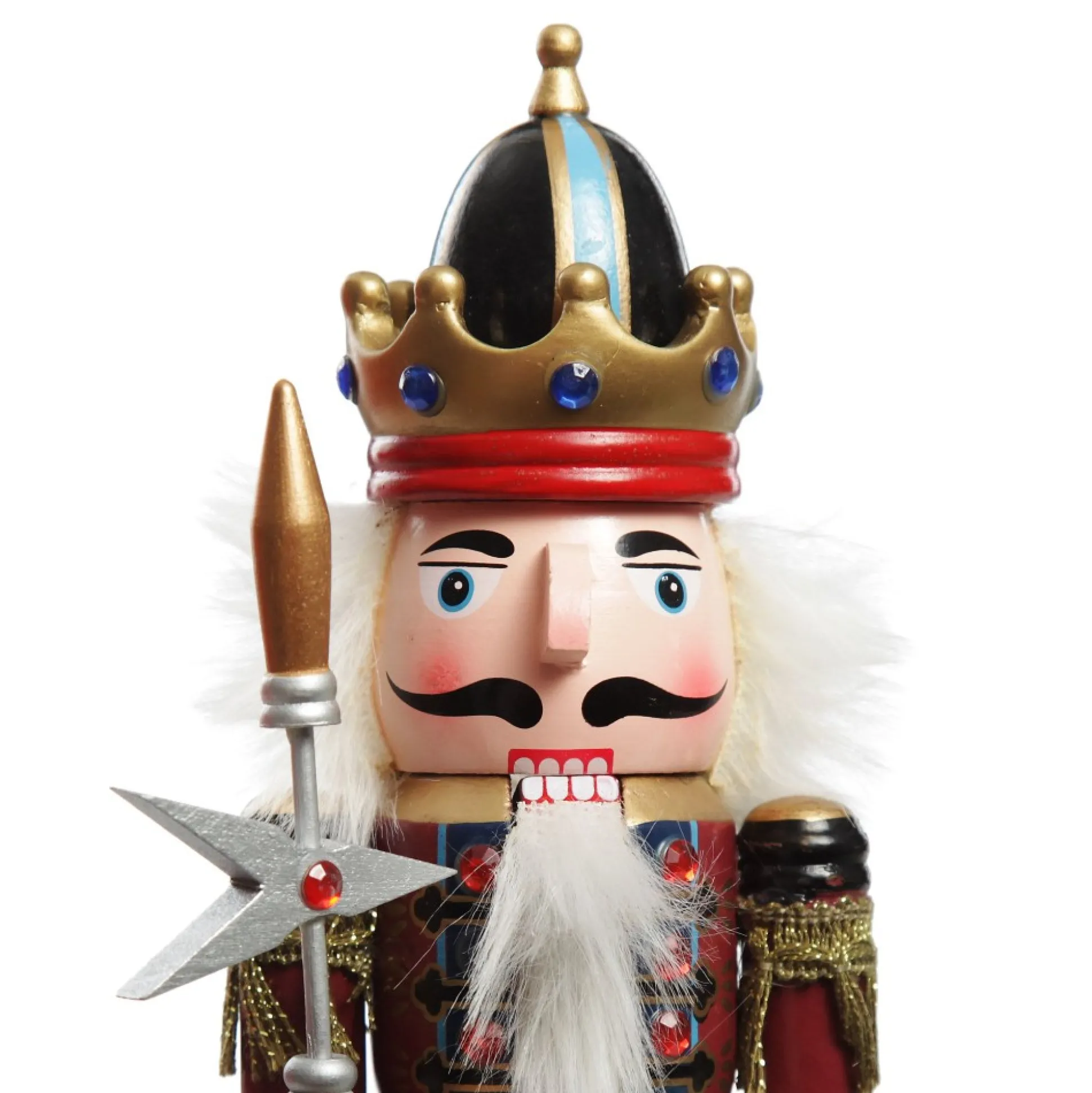 This Red Nutcracker With Staff Christmas Ornament Is Part Of An Iconic Christmas Tradition Dating Back To The Late 17Th Century. Beautifully Crafted From Wood, Wearing A Gold Crown And Intricately Painted With Vibrant Colours And Ornate Patterns, White Fluffy Hair, Spearhead Staff And Feature An Array Of Small Red And Blue Gems And Gold Trim. Christmas Nutcracker Soldiers Are Decorative Nutcracker Statues Most Commonly Made To Resemble A Toy Soldier. It Was Said That In German Tradition, The Nutcrackers Are Symbols Of Good Luck, Frightening Away Malevolent Spirits And Protecting Your Home. While Originally They Were Used To Crack Nuts, Nowadays They Are Just Used Decoratively Even Though They Have A Moving Nutcracking Mouthpiece. They Are Perfect For Traditional Christmas Decorating When Using The Christmas Colours Of Red, Green, Gold, Silver With Occasional Blue Highlights. Use As A Stand-Alone Piece Or Surrounded By Other Yuletide Decor. This Nutcracker Is Perfect For The Mantle, Table Decor, A Welcoming Hallway Table Or Even As A Christmas Decoration In The Children’s Bedrooms.