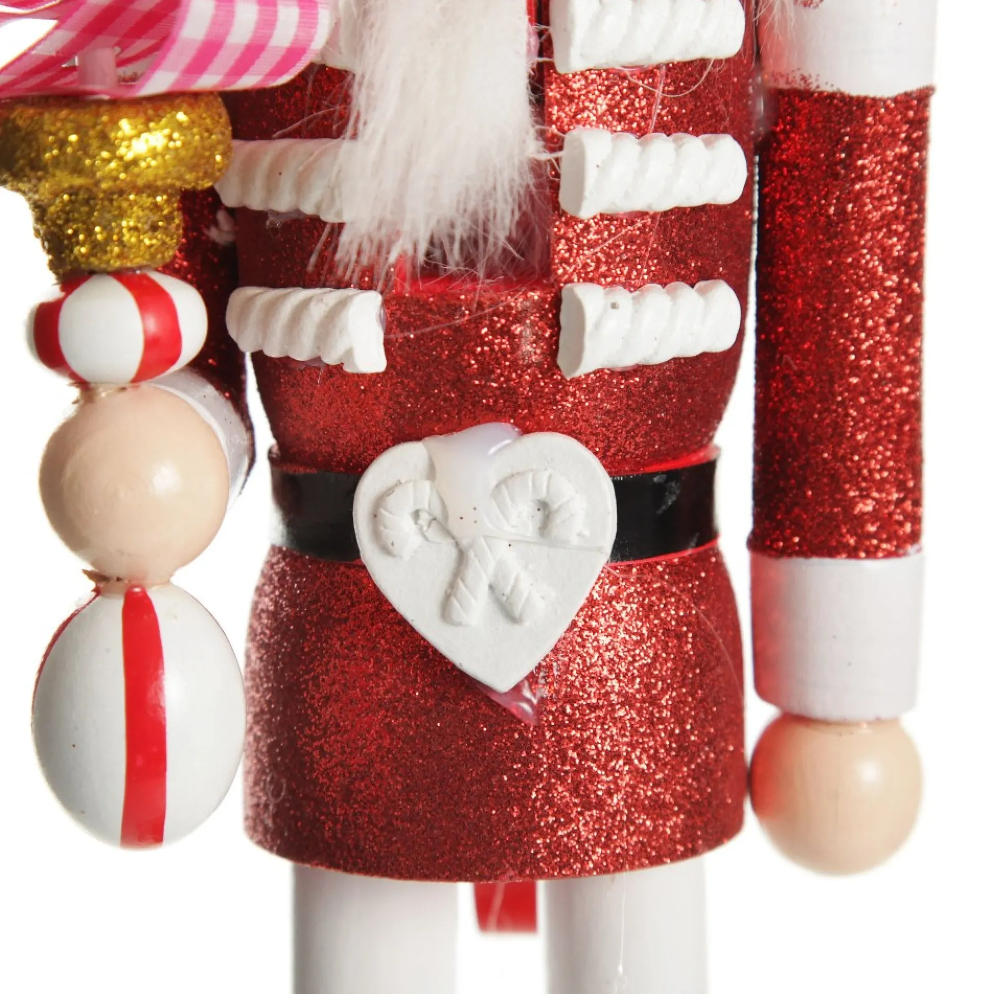 This Wooden Nutcracker Features A Twist On The Traditional Uniform With Vibrant Red Glitter Jacket, Boots, And Candy Embellishments. The Perfect Ornament To Decorate For Christmas And Bring The Festive Spirit To Any Space In Your Home.