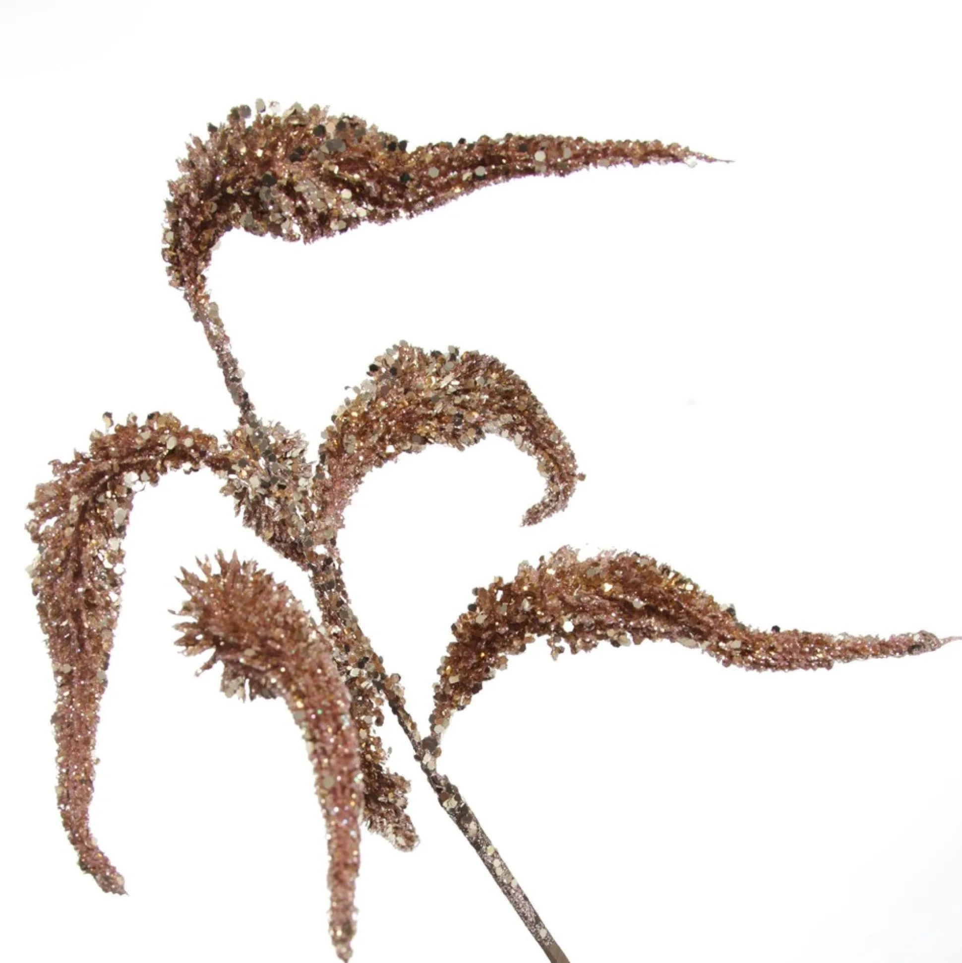 This Rose Gold Sequin Spikey Leaf Spray Will Infuse Your Christmas Display With Unique Sparkle And Glamour. With A Flexible And Durable Stem For Easy Placement, This Spray Features A Collection Of Intricate Curved Spikey Leaves With A Gorgeous Textured Coating Of Rose Gold Glitter And Sequins. A Stylish Statement Piece To Add To Any Floral Arrangement. Unique Sprays Are An Inexpensive And Versatile Option To Use For A Variety Of Crafting And Decorating Endeavours. Use To Embellish Your Christmas Tree, Decorate Your Own Garland And Wreaths, Or Combine With Other Sprays And Foliage To Create Your Own Floral Arrangement In A Vase. You Could Even Create An Extravagant Tree Topper With This Spray. The Luxe Rose Gold-Tone Is Perfect For A Feminine And Pastel Sugar Plum Or Boho Glam Christmas Decor Theme Combining Neutral Tones, Pinks And Rose Gold With Glitter And Glass To Create A Unique, Luxurious Display.