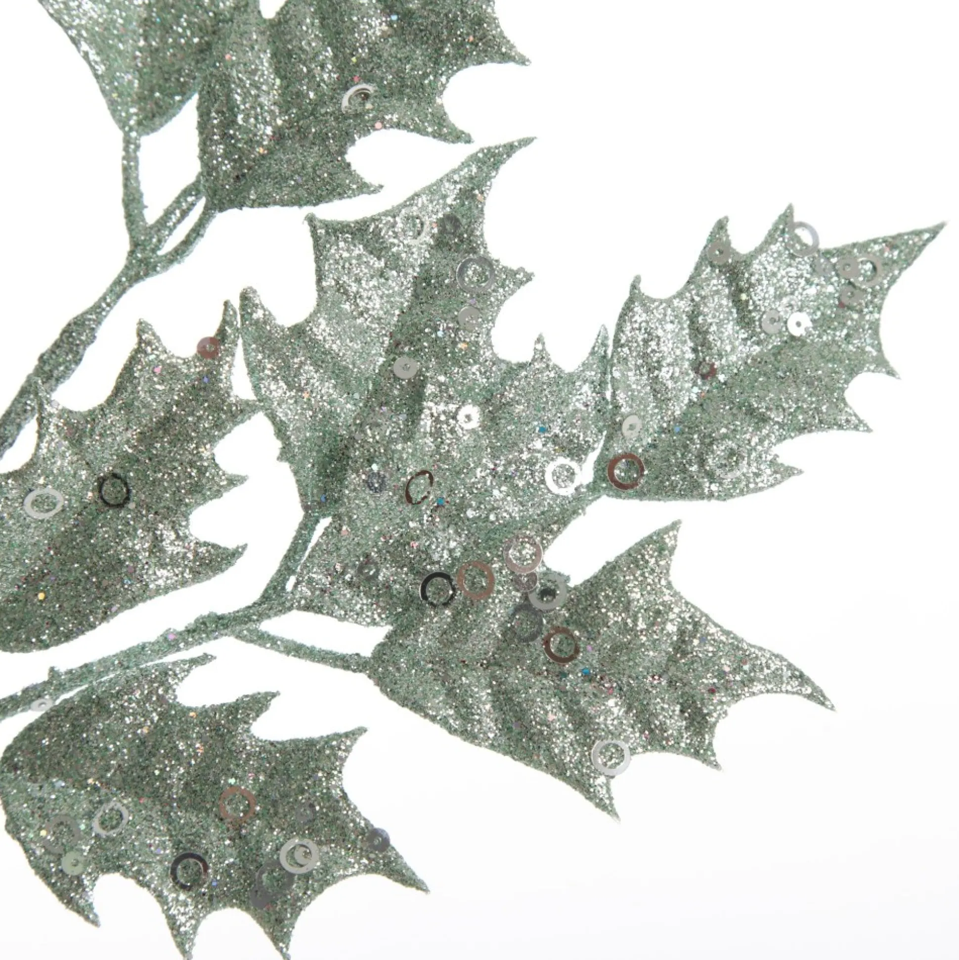 Enhance Your Christmas Floral Displays And Decor With This Sage Glitter Holly Leaf Spray. This Pick Has A Flexible And Durable Stem For Easy Placement And Features A Collection Of Gorgeous Sage Green Glittered Holly Leaves Embellished With Silver Sequins. A Stunning Twist On The Traditional Holly Plant That Would Make An Excellent Accent For Any Christmas Floral Arrangement. Sprays Are An Inexpensive And Versatile Option To Use For A Variety Of Crafting And Decorating Endeavours. Use To Embellish Your Christmas Tree, Decorate Your Own Garland, Combine With Other Sprays And Foliage To Design, And Create Your Own Floral Arrangement And So Much More! Use The Sprays As A Whole Or Cut Them Down As Needed. A Great Option For A Modern And Sleek Silver And Sage Christmas Theme Paired With Silver, White, Sparkling Decor, And Unique Elements. Create Wonderful Festive Displays To Celebrate The Most Magical Time Of The Year With This Beautiful Sage Glitter Holly Spray.