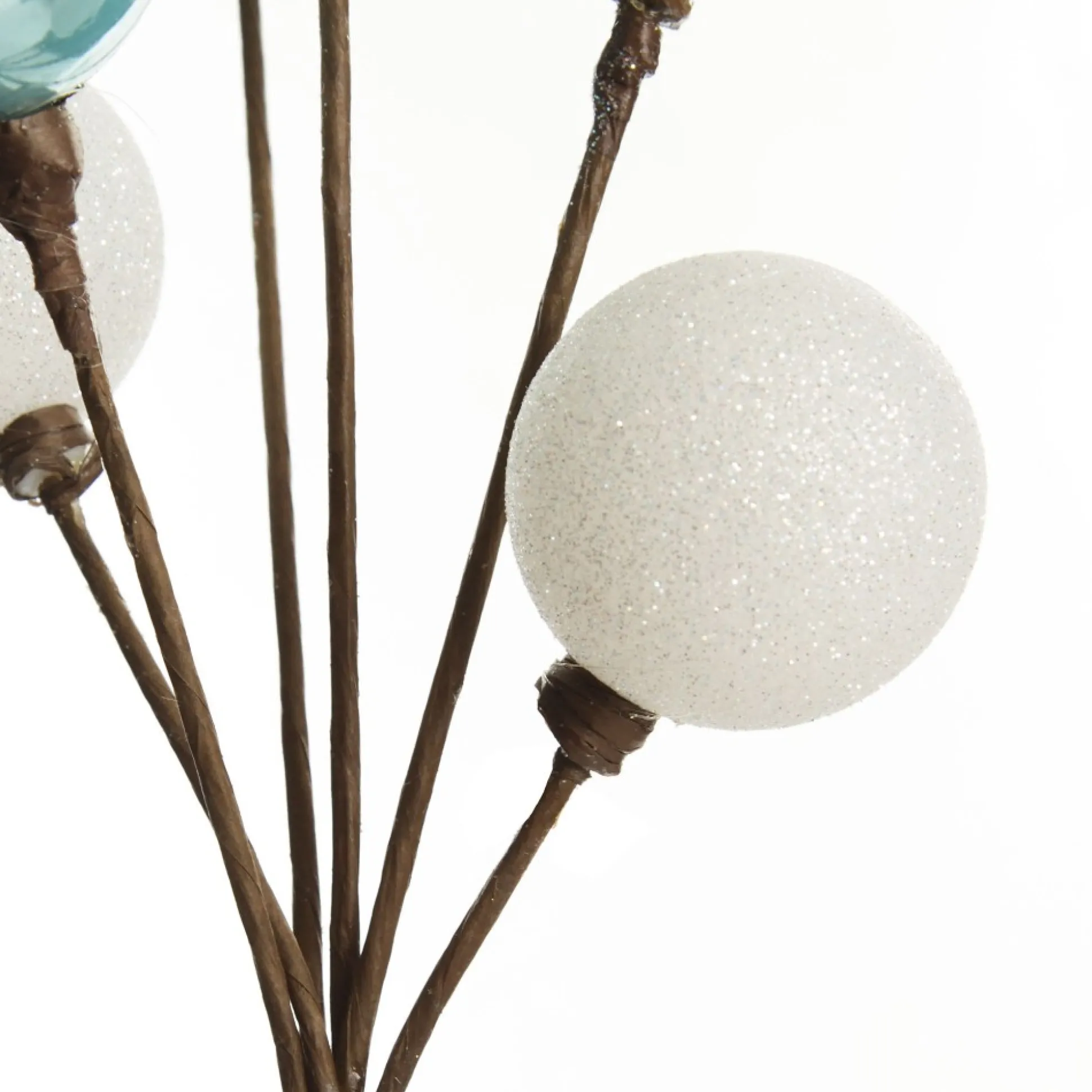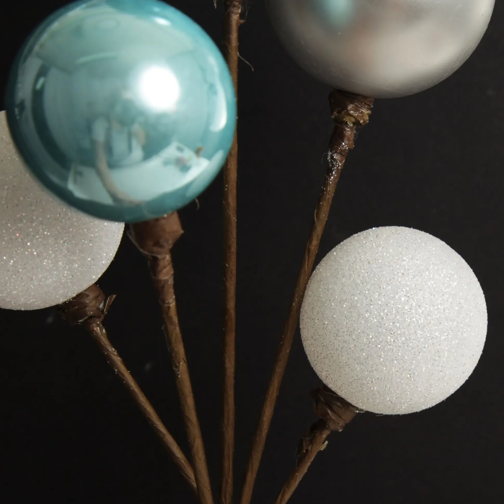 Create Exciting Festive Displays With This Silver And Blue Christmas Bauble Cluster Pick. Featuring A Collection Of Blue, White, And Silver Baubles In Assorted Gloss, Glitter, And Matte Finishes. Each Bauble Attaches To A Flexible And Durable Stem For Easy Placement When Decorating.