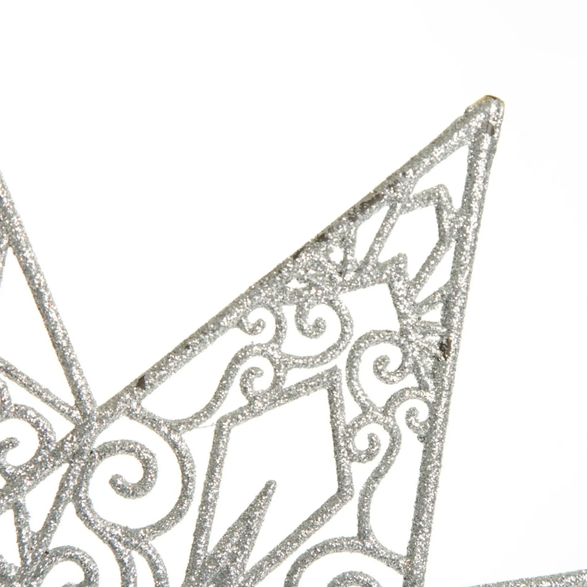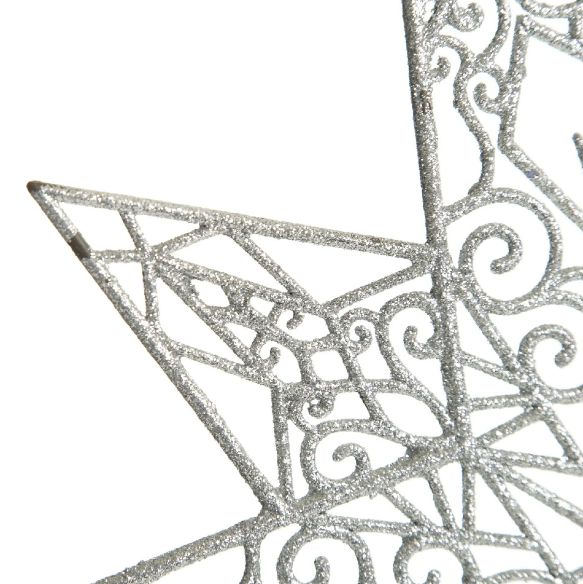 Add Something Unique To Your Festive Decor With This Silver Glitter Hanging Christmas Star. The Star Features An Intricately Cut Pattern Of Swirls And Stars And A Coating Of Sparkling White Glitter. The Perfect Decorative Element To Instantly Bring Festive Charm To Any Space In Your Home.