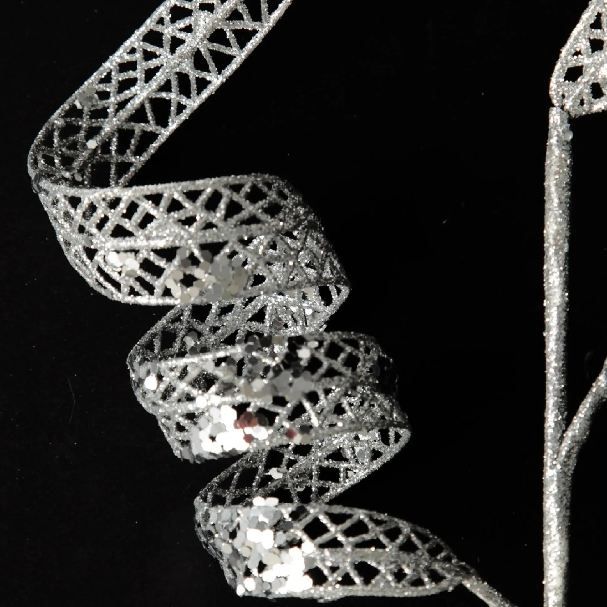 Add Something Unique To Your Christmas Displays With This Silver Glitter Swirl Christmas Pick. Featuring A Collection Of Mesh Patterns Swirls In Stunning Silver Glitter With Large Glitter Chunks For Extra Sparkle. The Flexible And Durable Stem Makes It Easy To Place And Arrange When Decorating.