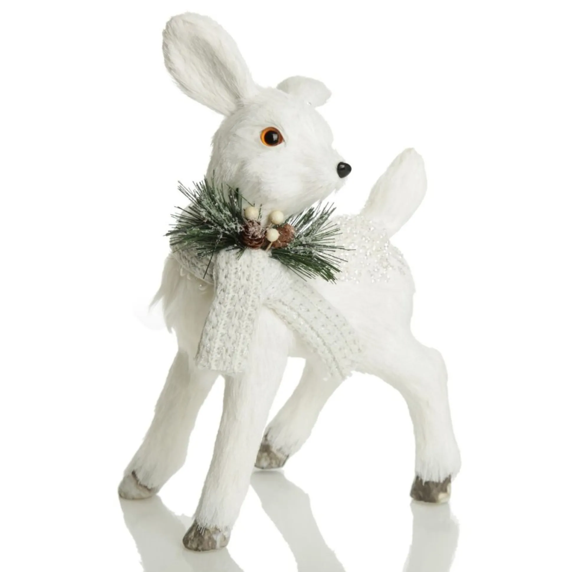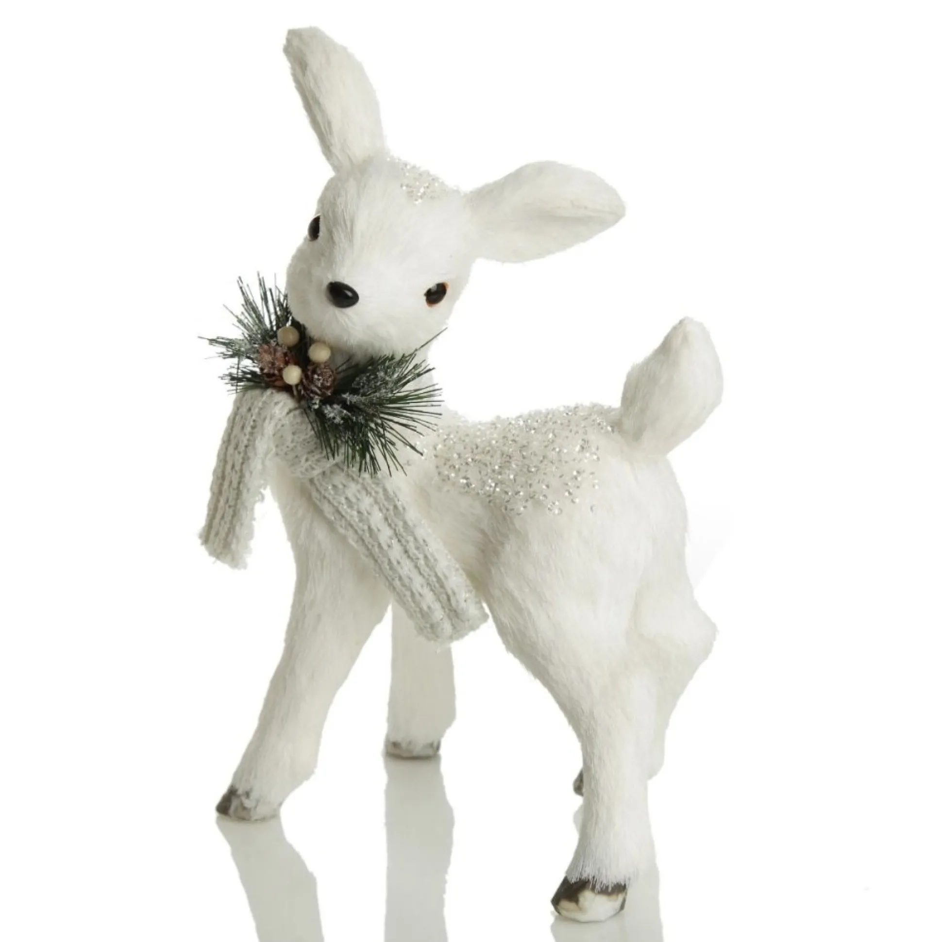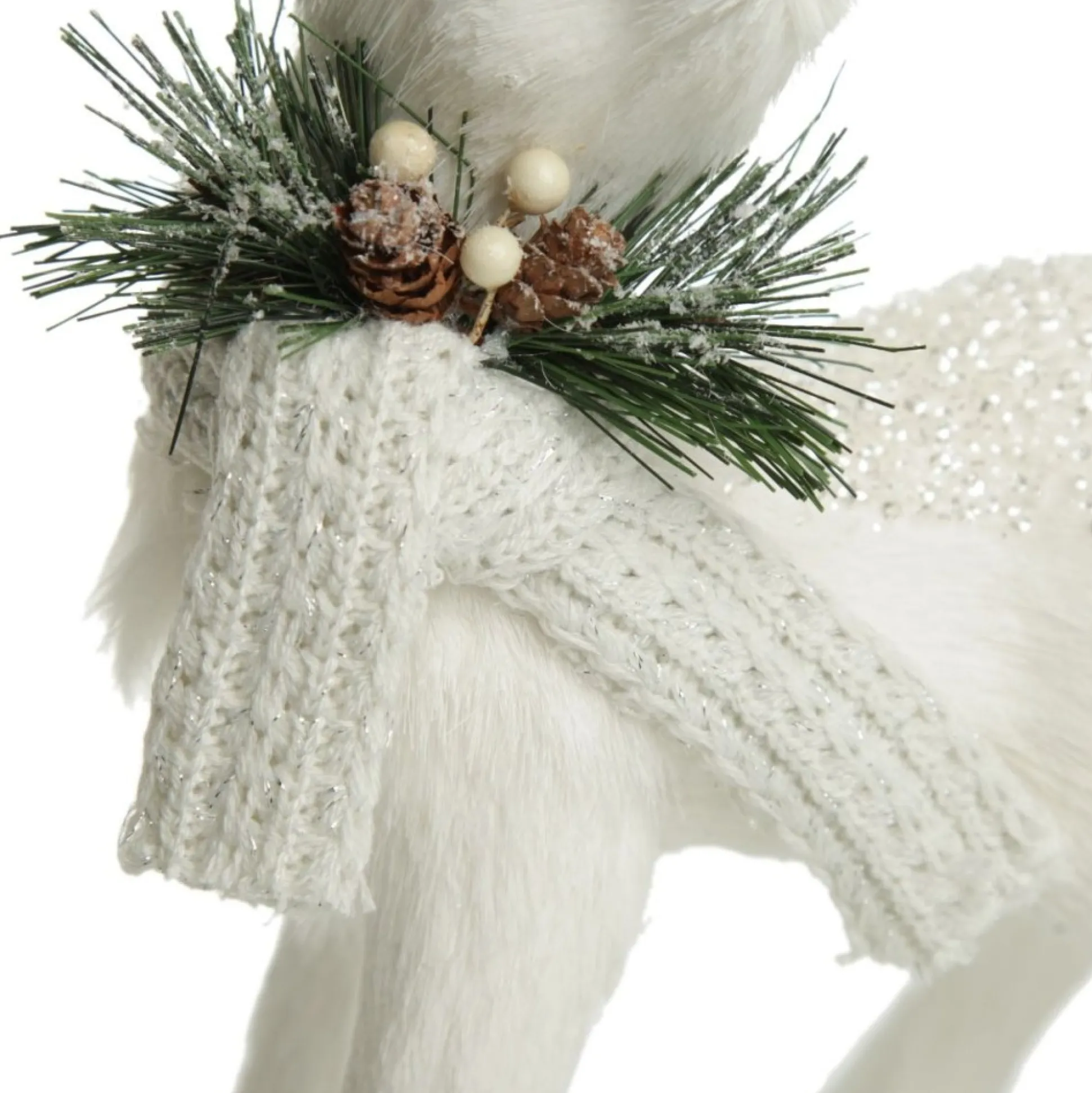 Crafted From Lightweight Material, With Sisal Covered Exterior, This Deer Features A Soft Scarf With Pinecone And Berry Details Around Its Neck And A Dazzling Dusting Of White Sequins And Glitter.
