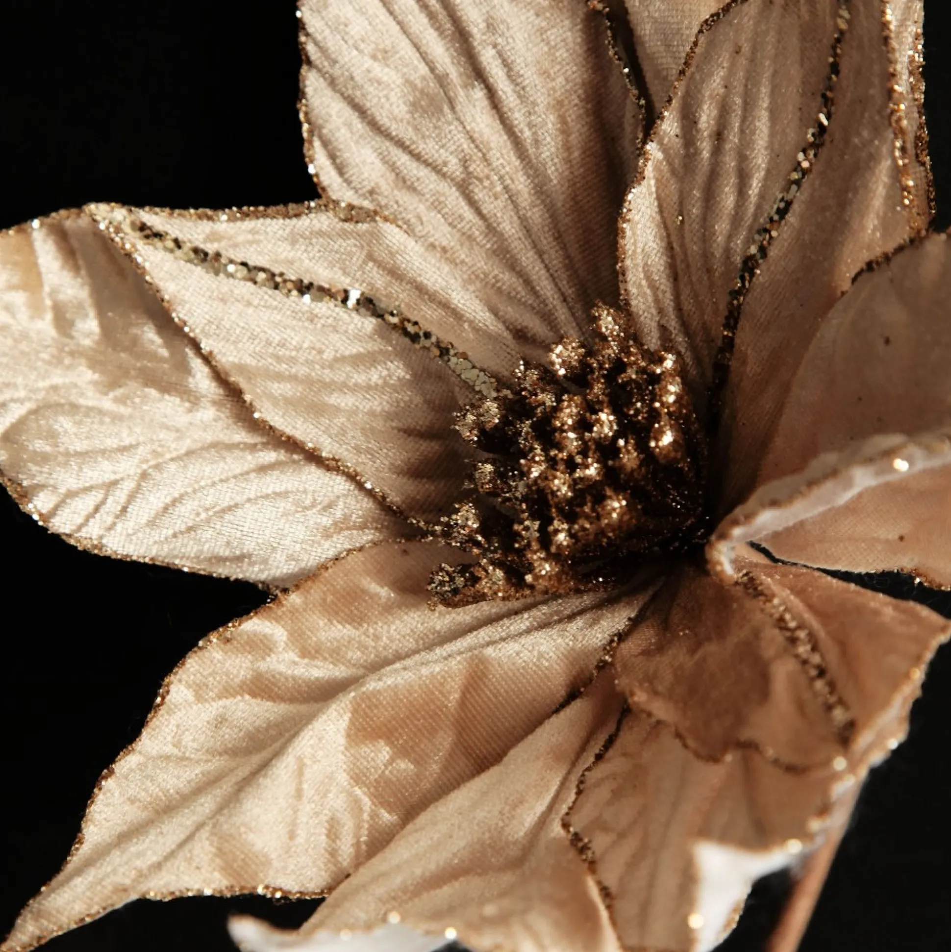 Step Into A World Where Elegance Is Redefined With Our Taupe Flower Stem Glitter Ball Centre! Delicately Crafted From A Combination Of Velour, Velvet And Satin Materials In A Stunning Rose Gold Colour And Finished With A Sparkling Glitter Ball Centre, This Flower Stem Will Bring A Formal And Refined Look To Your Home This Christmas.