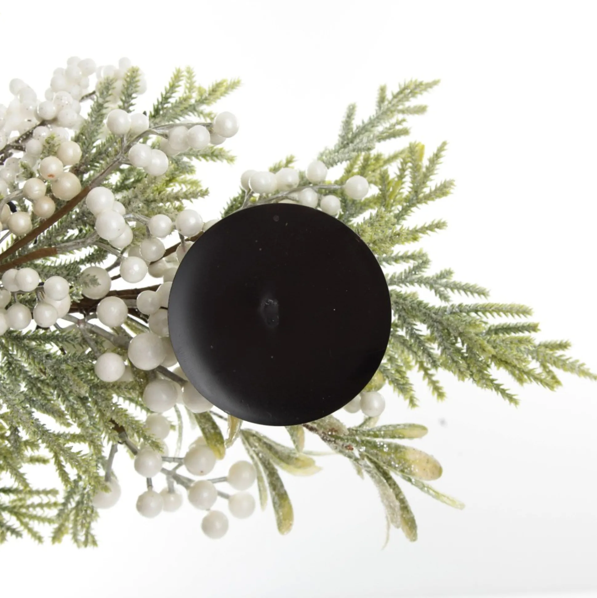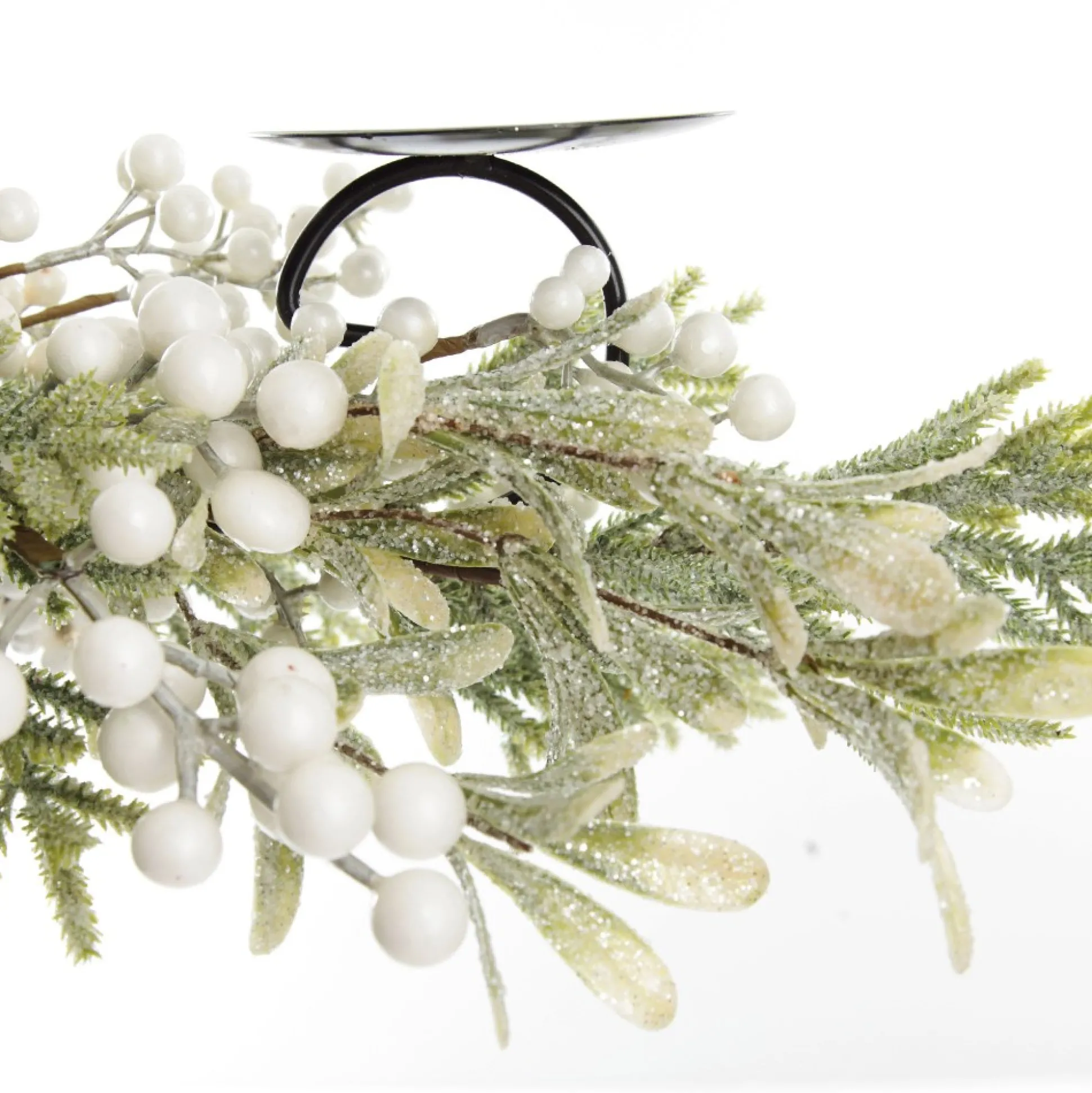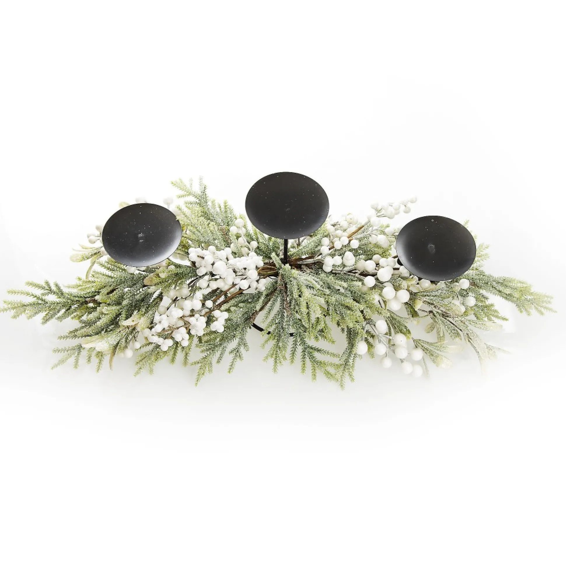 Make A Statement And Celebrate In Style With This White Berry And Frosted Leaf Christmas Table Centrepiece Candle Holder. Crafted With A Durable Metal Base Covered In Lush Green Frosted Foliage, This Centrepiece Features Delightful White Berry Cluster Embellishments And Three-Tiered Metal Candleholders Extending From The Metal Base.