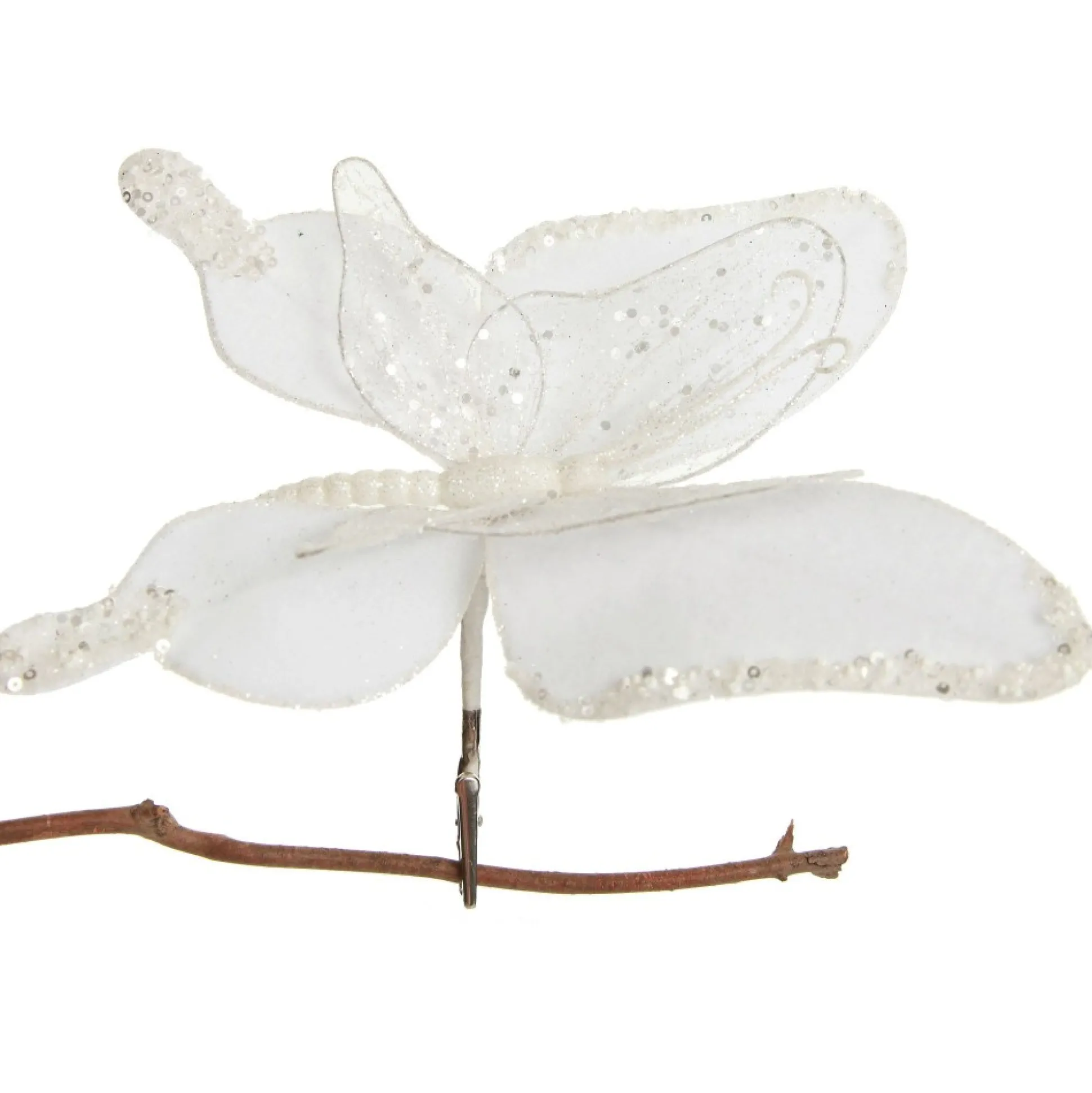 Welcome A Little Sparkle And Festive Cheer Into Your Home This Christmas With Our White Mesh Double Wing Butterfly Clip. Featuring A Stunning Butterfly That Captures The Essence Of Winter’s Embrace In A White Colour That Radiates Serenity. With Lightweight Materials, This Is An Easy-To-Use Clip That Will Be The Perfect Decoration To Adorn Your Home. Its Shimmering Glitter And Sequin Finish, And Layered Wings Seamlessly Blends Modern Trends With Timeless Sophistication, Creating A Festive Atmosphere That’s Nothing Short Of Enchanting.