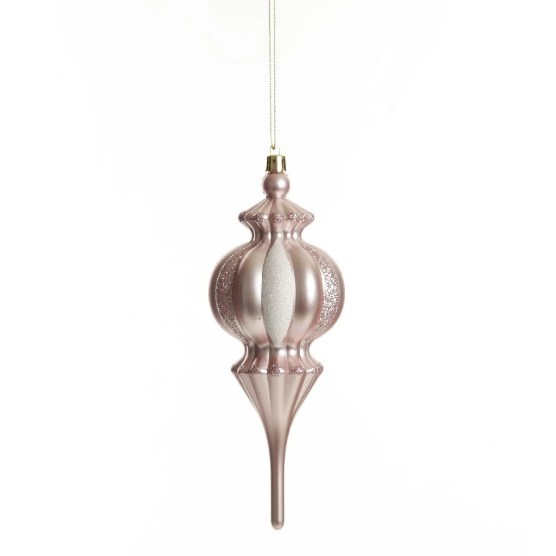 This Baby Pink Christmas Finial Decoration Is The Perfect Unique Addition To A Festive Tree Display. Featuring An Intricate Finial Shape With Unique Textured Details Adorned With White And Pink Glitter Highlights. The Lightweight Acrylic Makes It Easy To Hang And The Bauble Comes Ready With A String Attached.