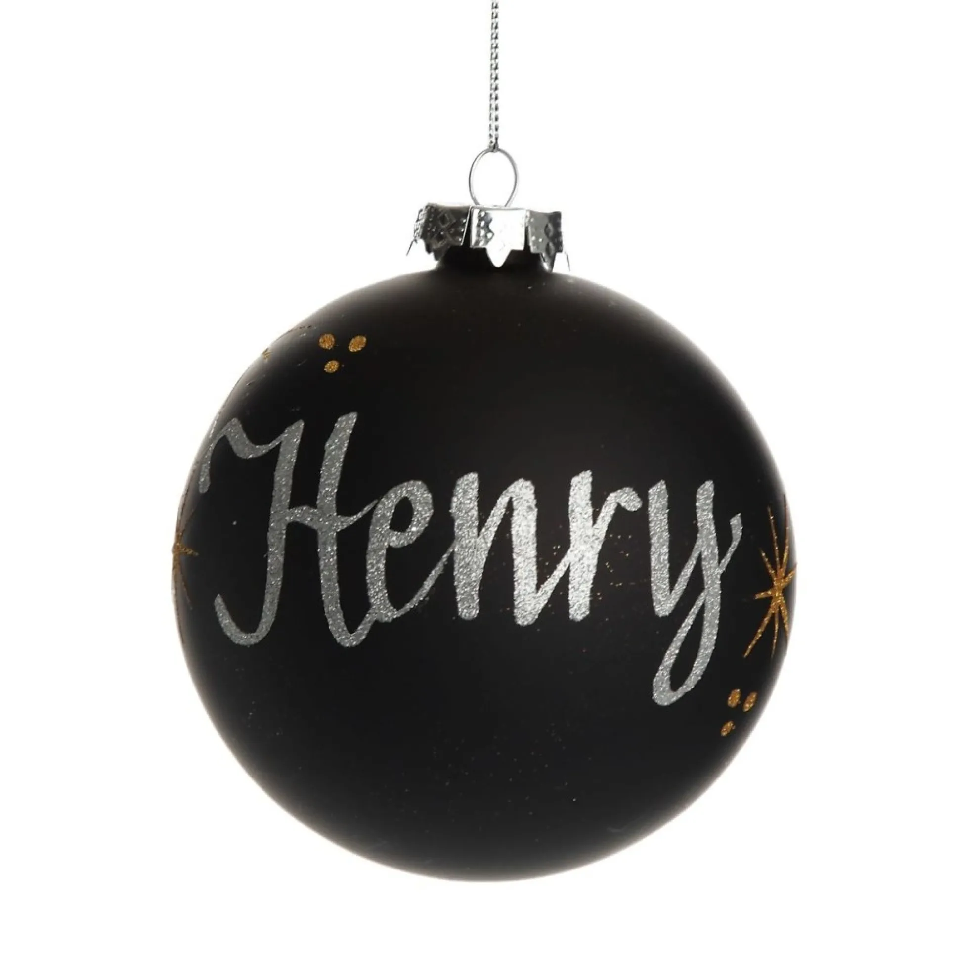 Add Luxury To Your Home With This Stylish Black Glass Personalised Christmas Bauble. Made From Seamless, High Quality Glass And With Crisp Lines Created By A Smooth Matt Black Finish, This Bauble Is Sure To Create An Element Of Refined Style. With A Silver Metal Top And Metallic Thread, Your Bauble Arrives Ready To Hang. Add A Touch Of Noir To Your Christmas Tree Or Impress Your Loved Ones With A Unique And Personalised Gift, A Wonderful Way To Show Your Love To Friends And Family Or Create Traditions. This Neutral Colour Can Be Complimented By Any Glitter Colour Of Your Choosing. Suitable For Boys, Girls, Men And Women Of All Ages. Crisp, Smooth, Neutral Finish Is Perfect For A Stylish Display. Pair With Silver Tones For A Modern Look Or With Red, Green And Gold For A Spin On A Traditional Christmas Palette To Create An Unforgettable And Stylish Display This Christmas.